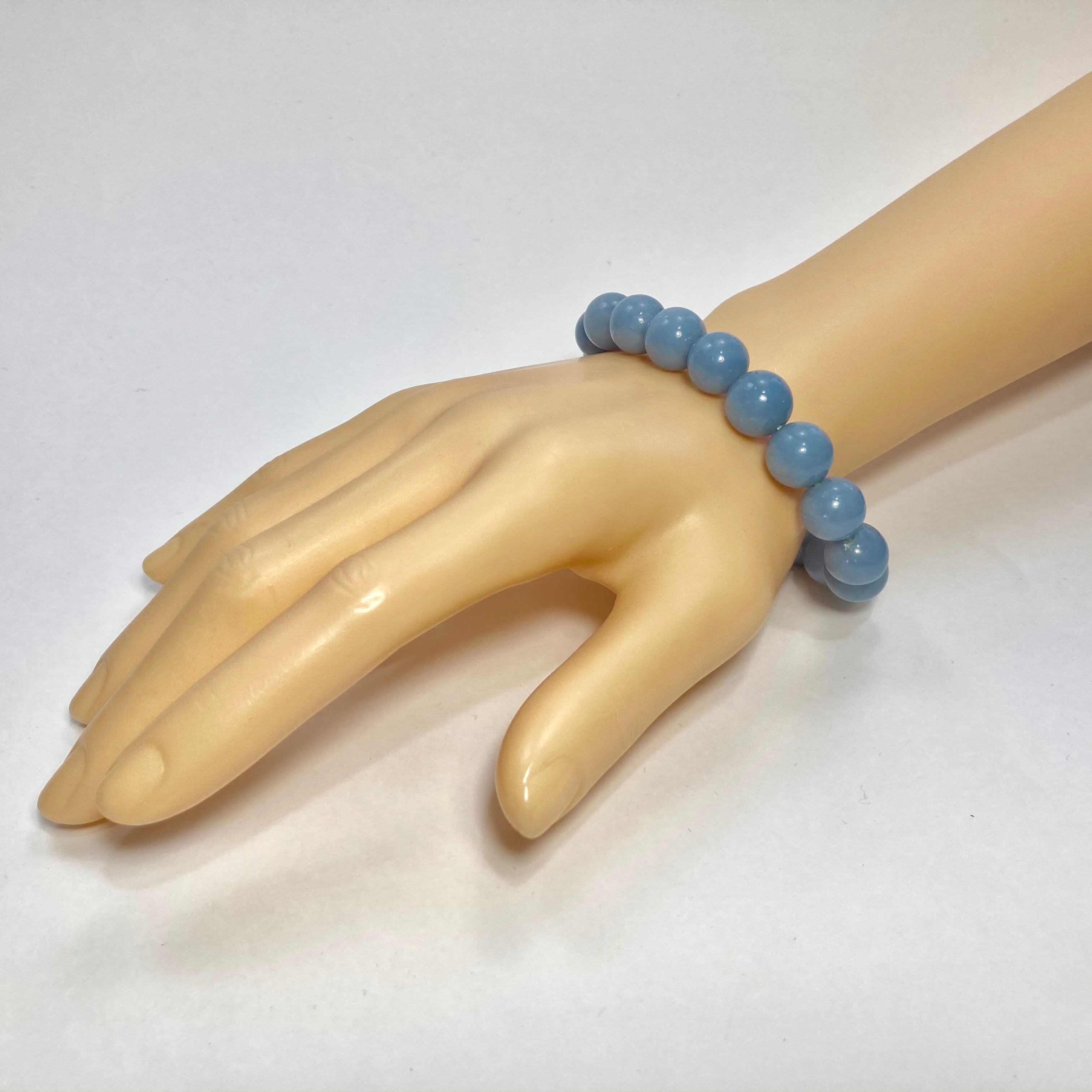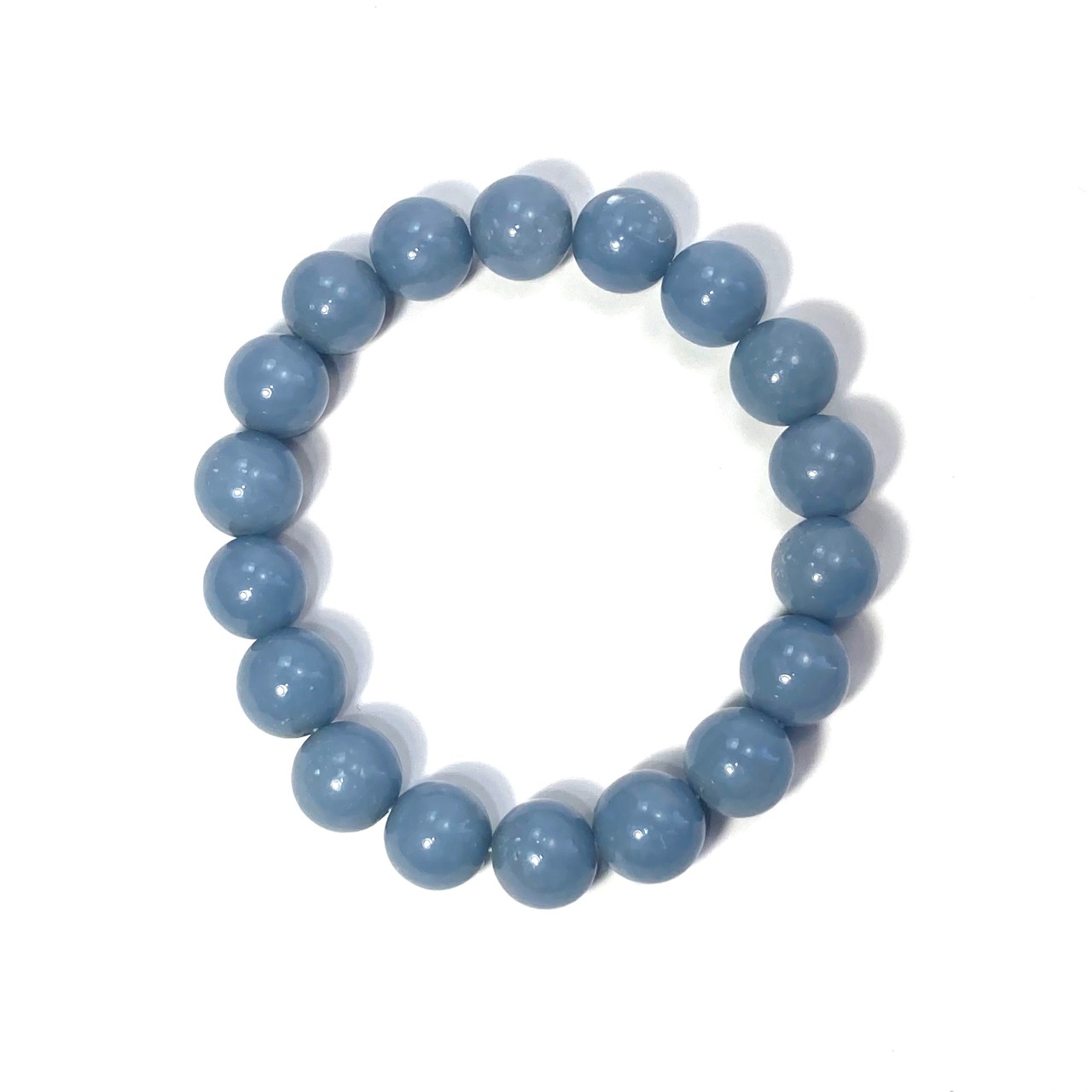 こちらは、12mm玉のエンジェライトを使用した天然石ブレスレットです。シンプルなデザインですのでどんなコーディネートとも合わせ易いブレスレットです。石大きさは12mm玉です。内周約17cmです。気になる方は是非この機会にどうぞ。