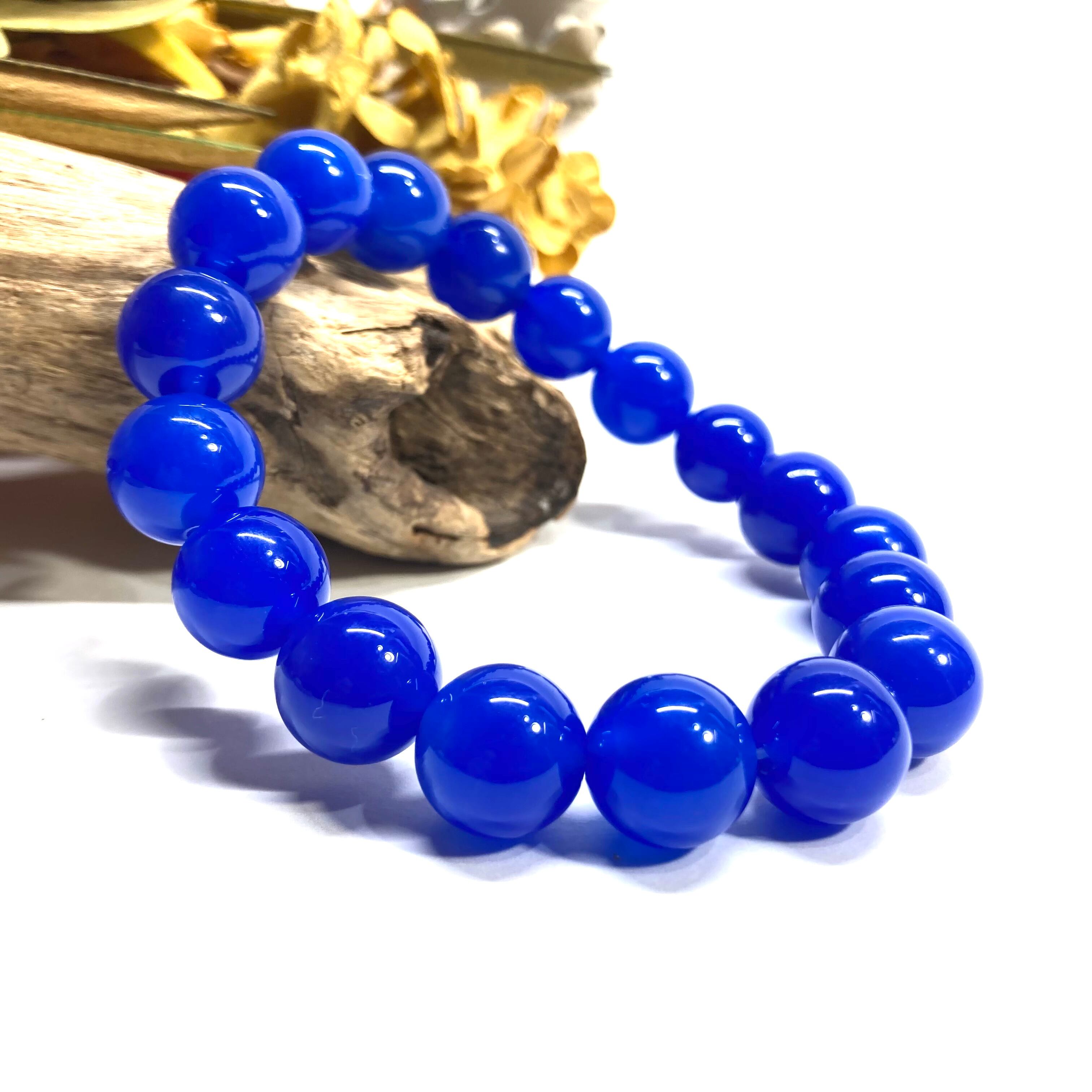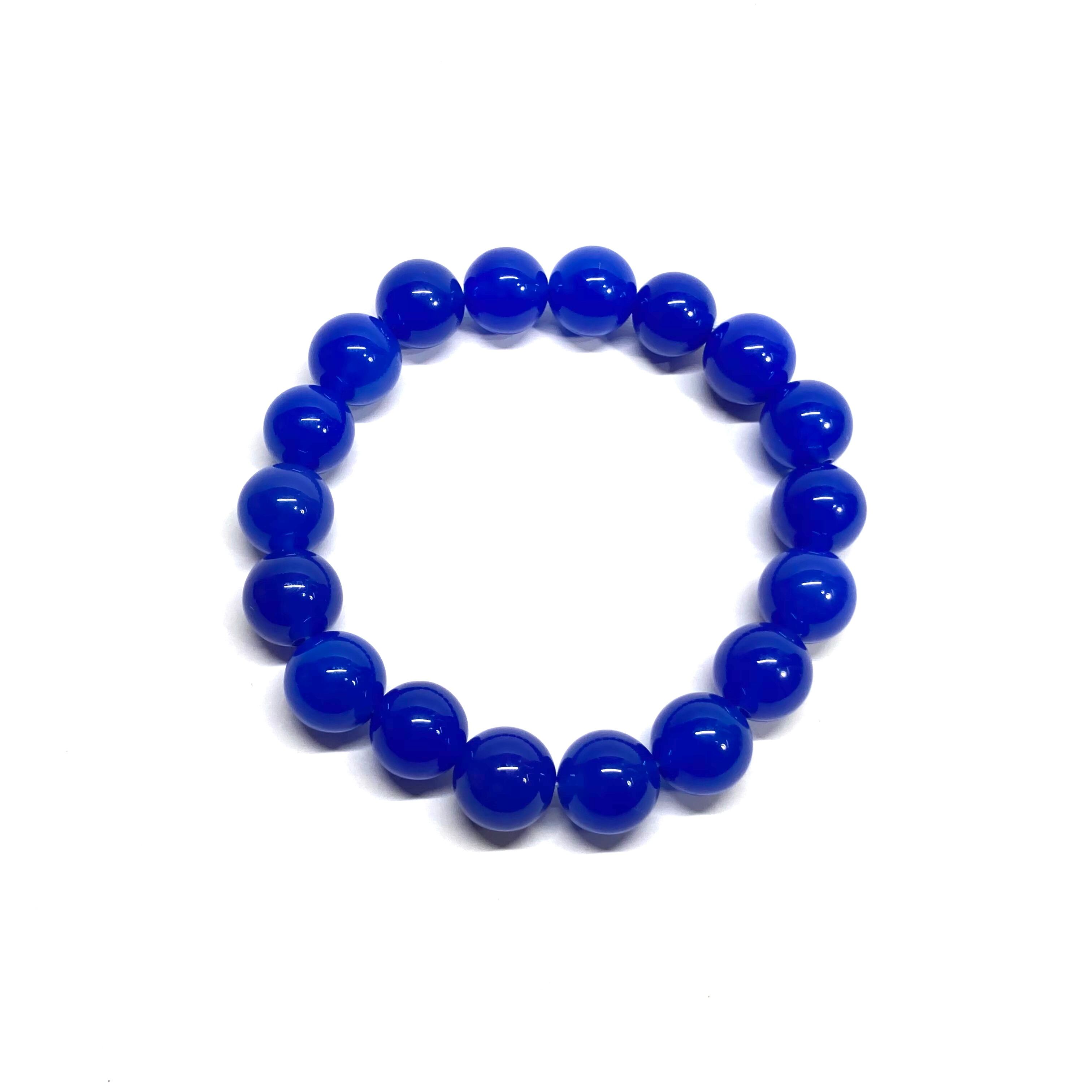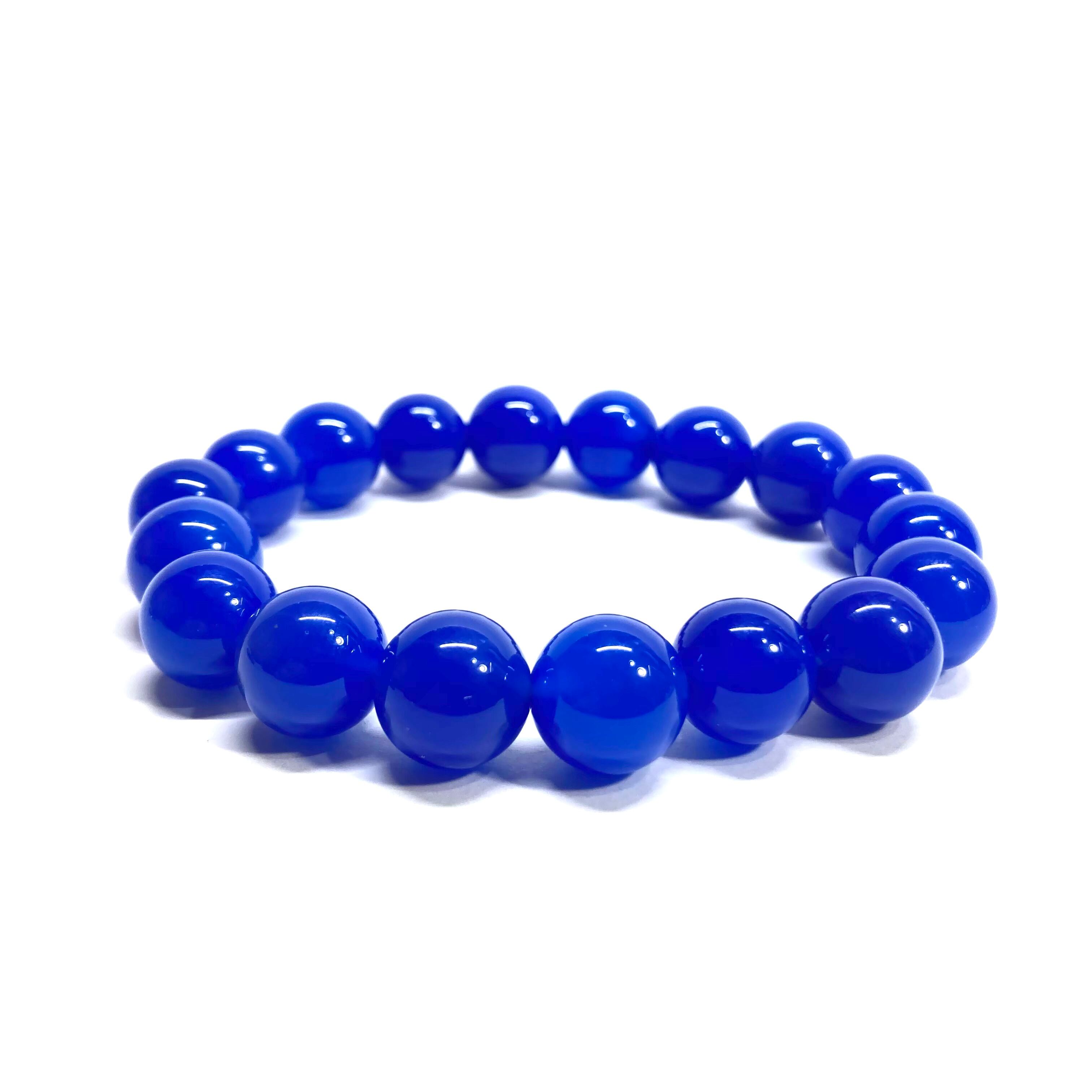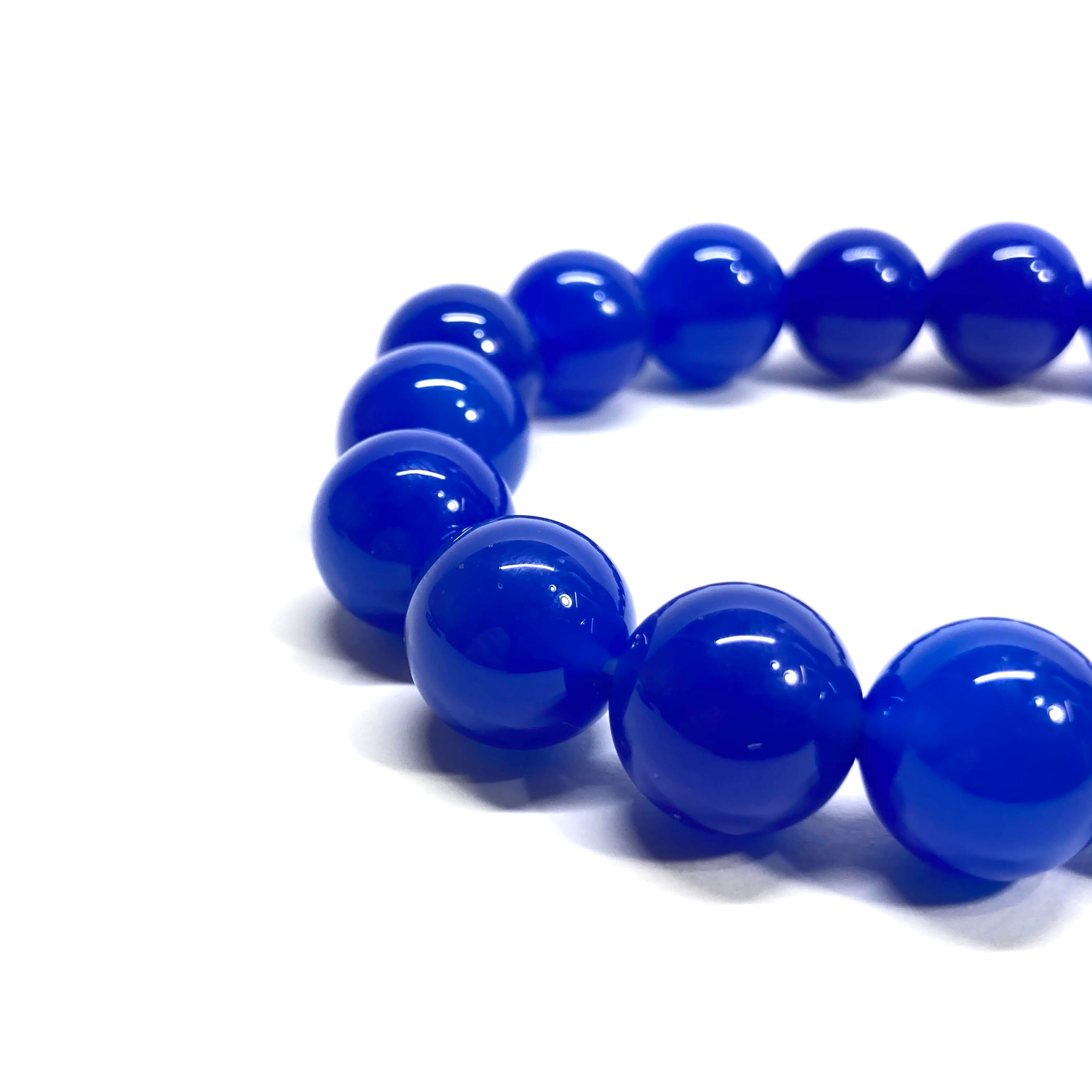 こちらは、12mm玉の青瑪瑙を使用したパワーストーンブレスレットです。シンプルなデザインは、男女問わずどんなコーディネートとも合わせ易いブレスレットです。サイズは内周約17cmです。 数に限りがございますので気になる方はお早めにどうぞ。