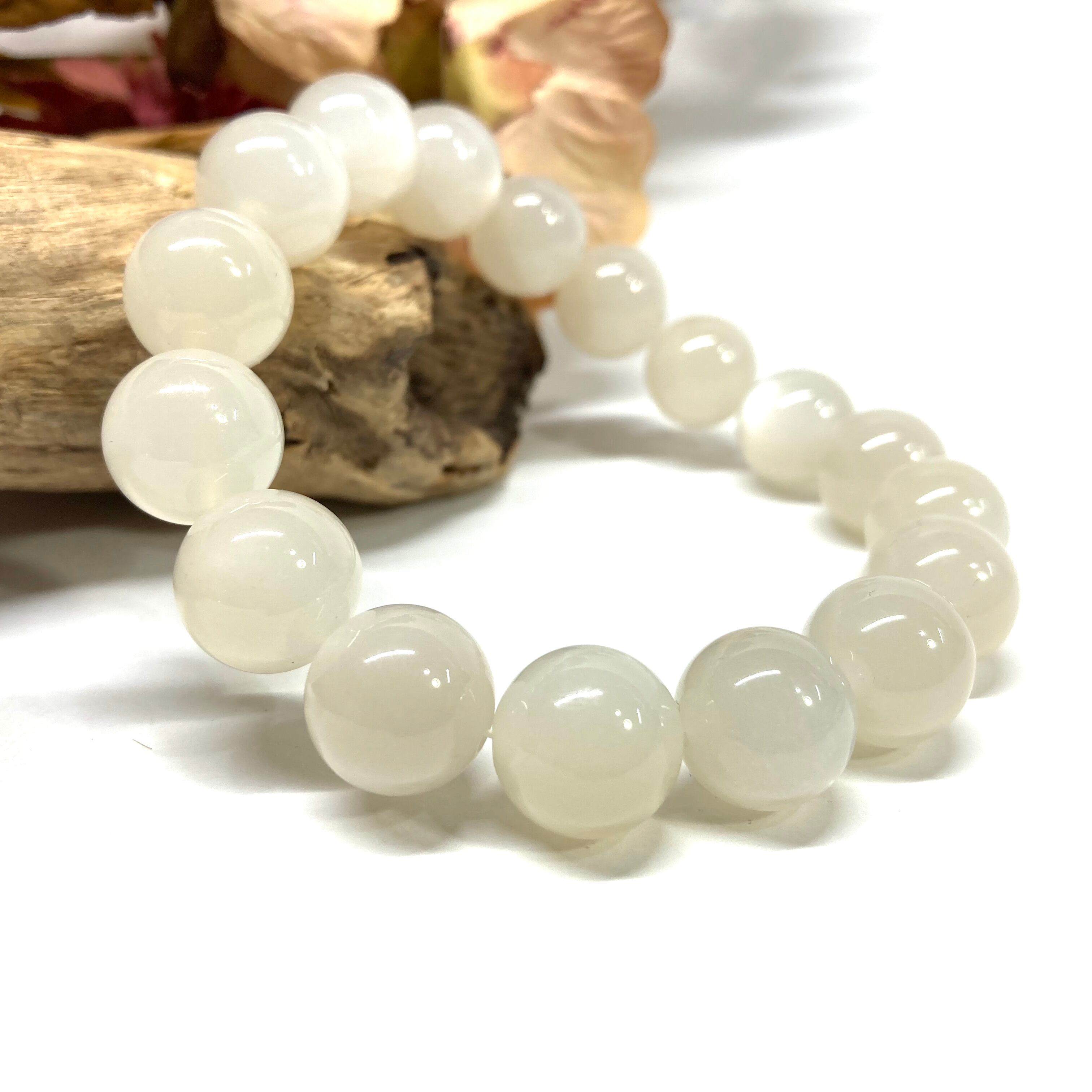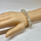 こちらは、12mm玉のムーンストーンを使用したパワーストーンブレスレットです。シンプルなデザインは、男女問わずどんなコーディネートとも合わせ易いブレスレットです。サイズは内周約17cmです。数に限りがございますので気になる方はお早めにどうぞ。