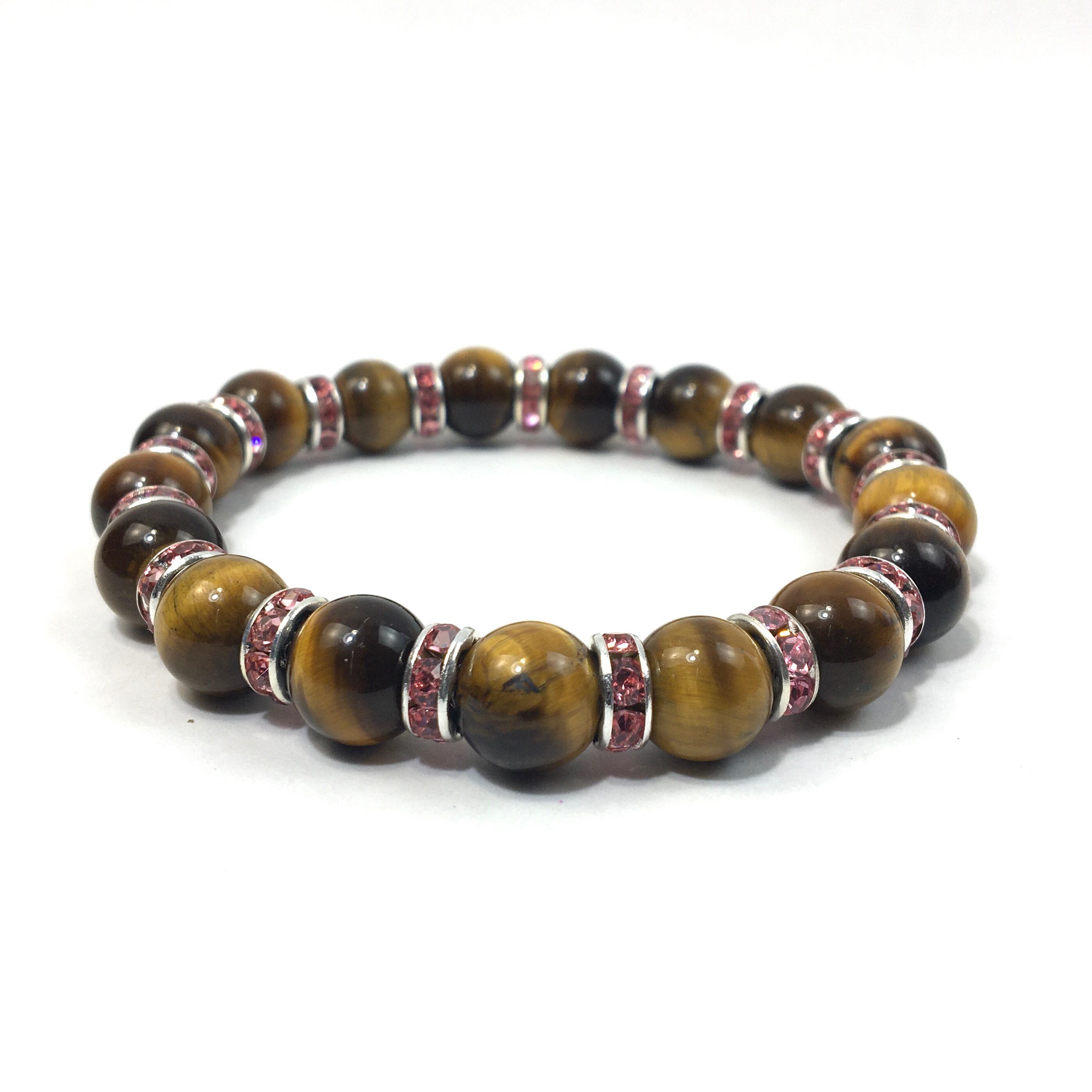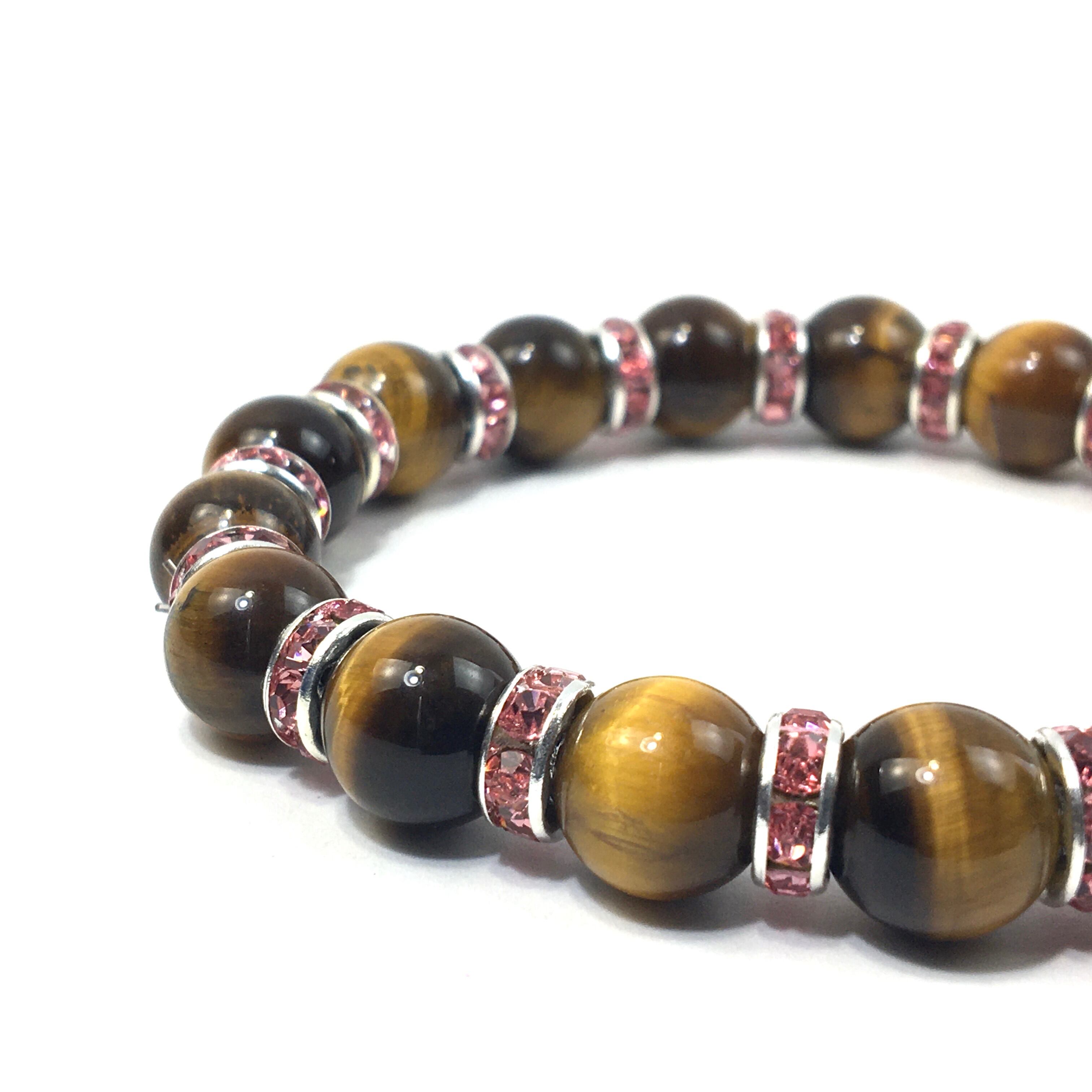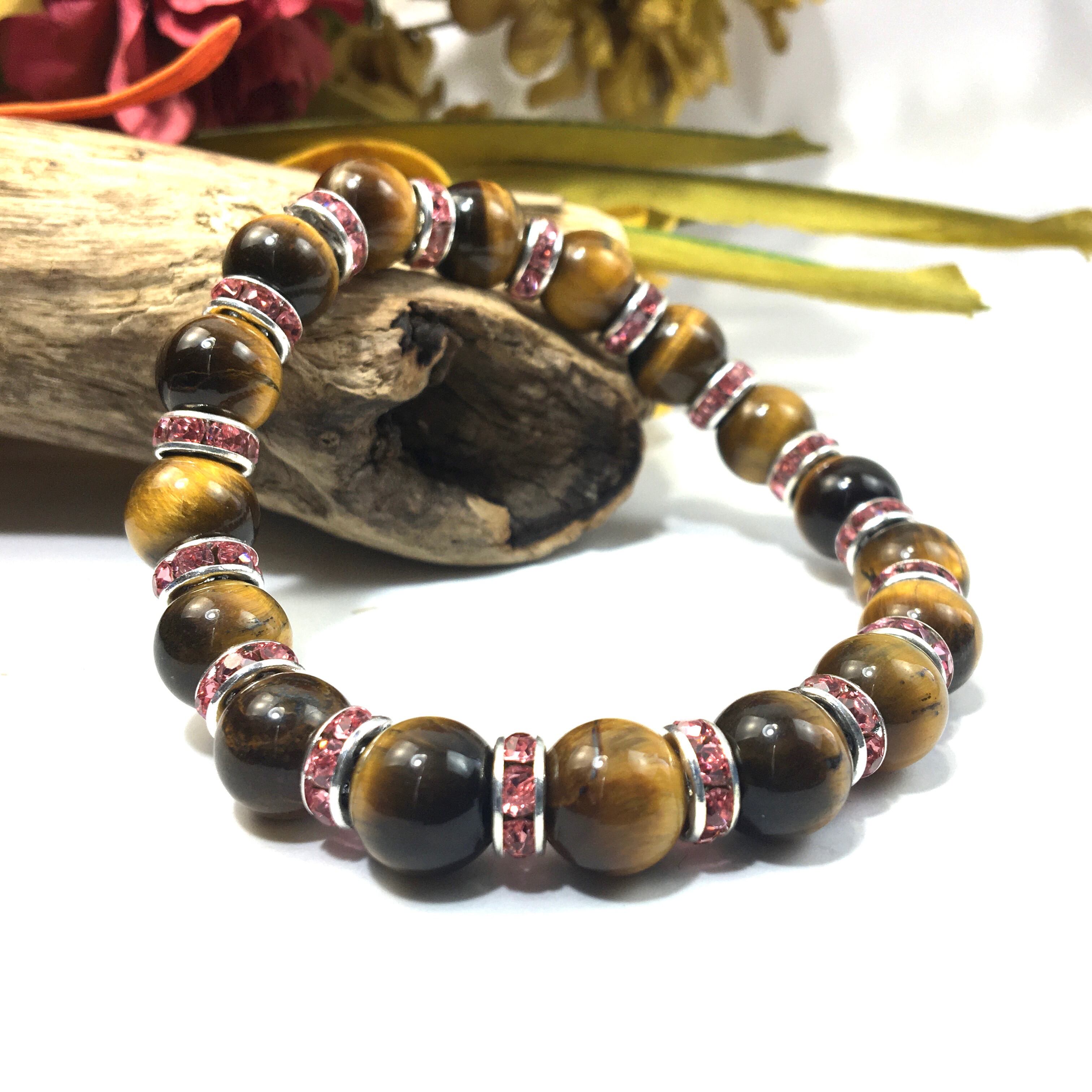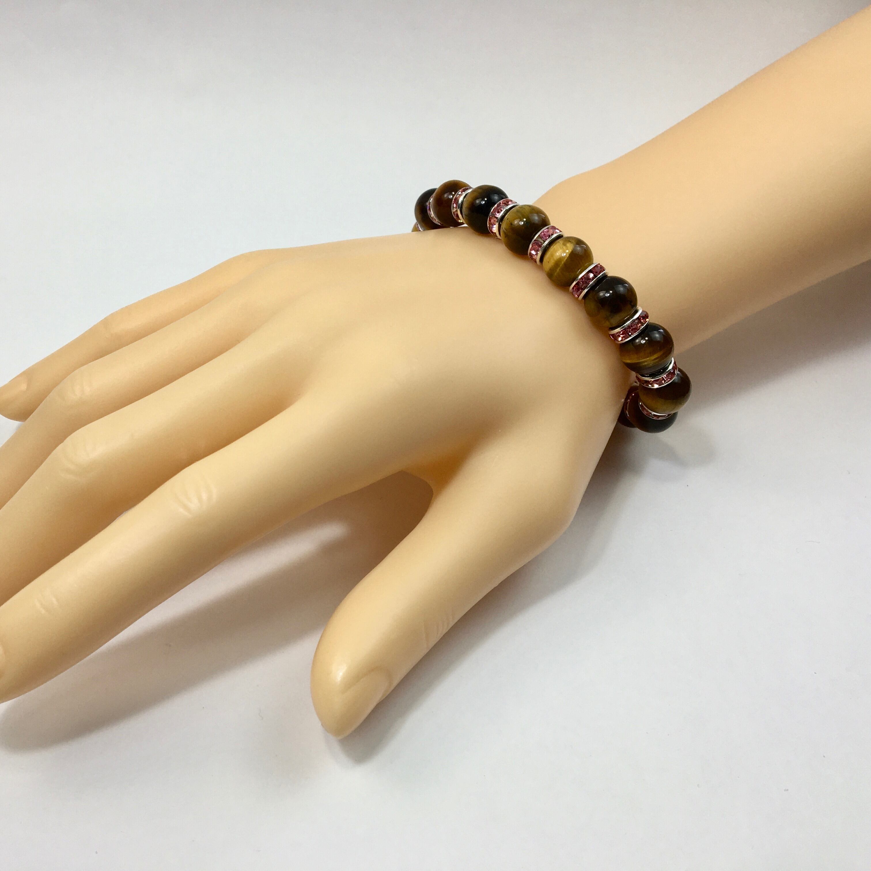 タイガーアイ パワーストーン ブレスレット 天然石 10mm (ピンク)メンズ・レディース 男性・女性 数珠ブレス  開運 ☆