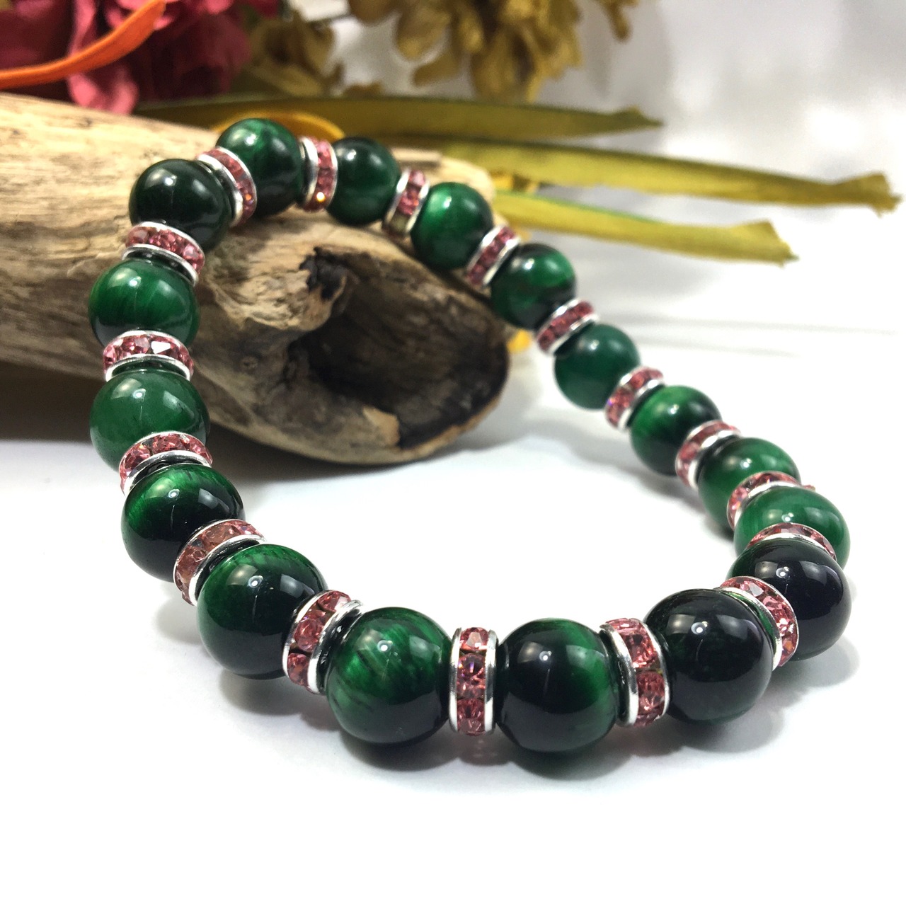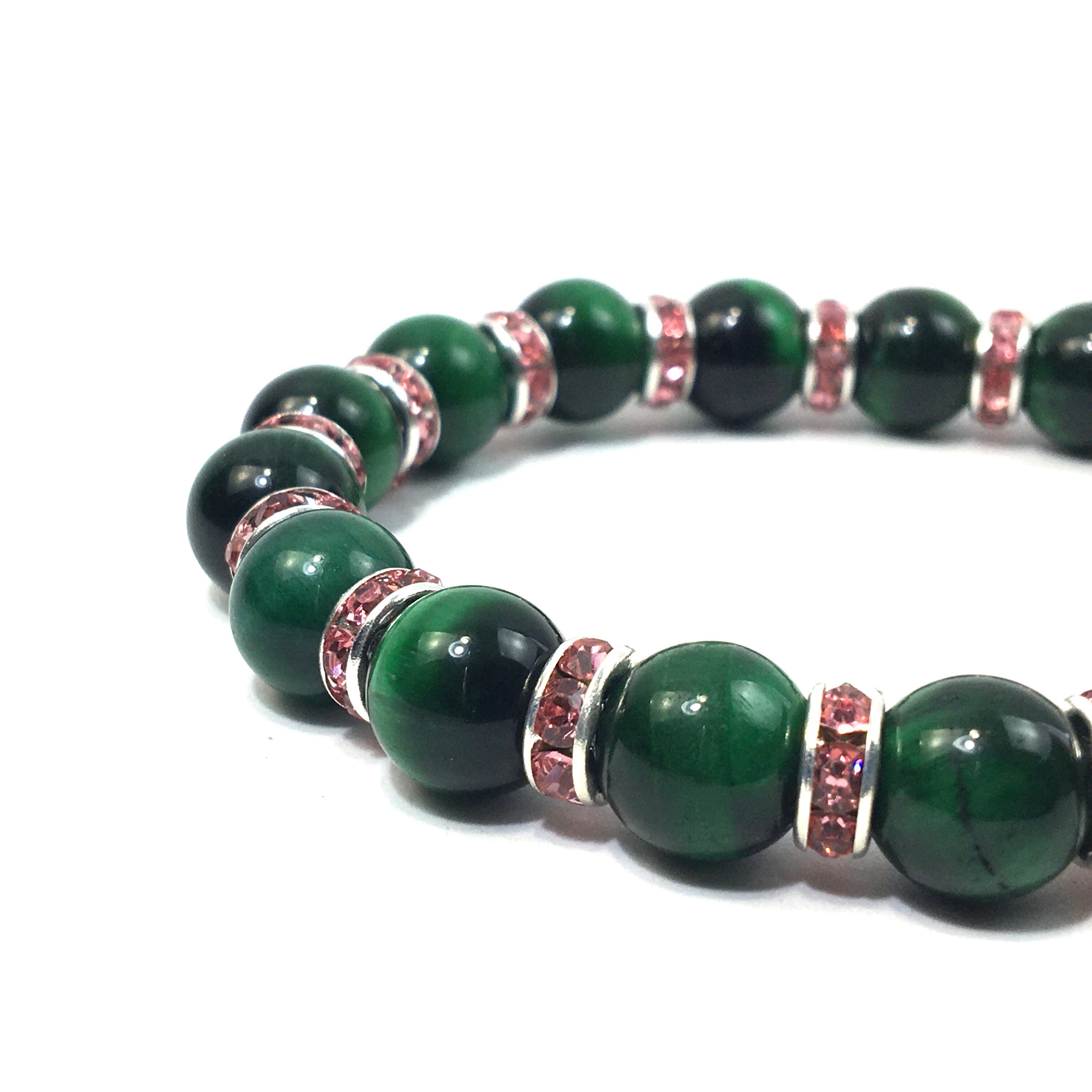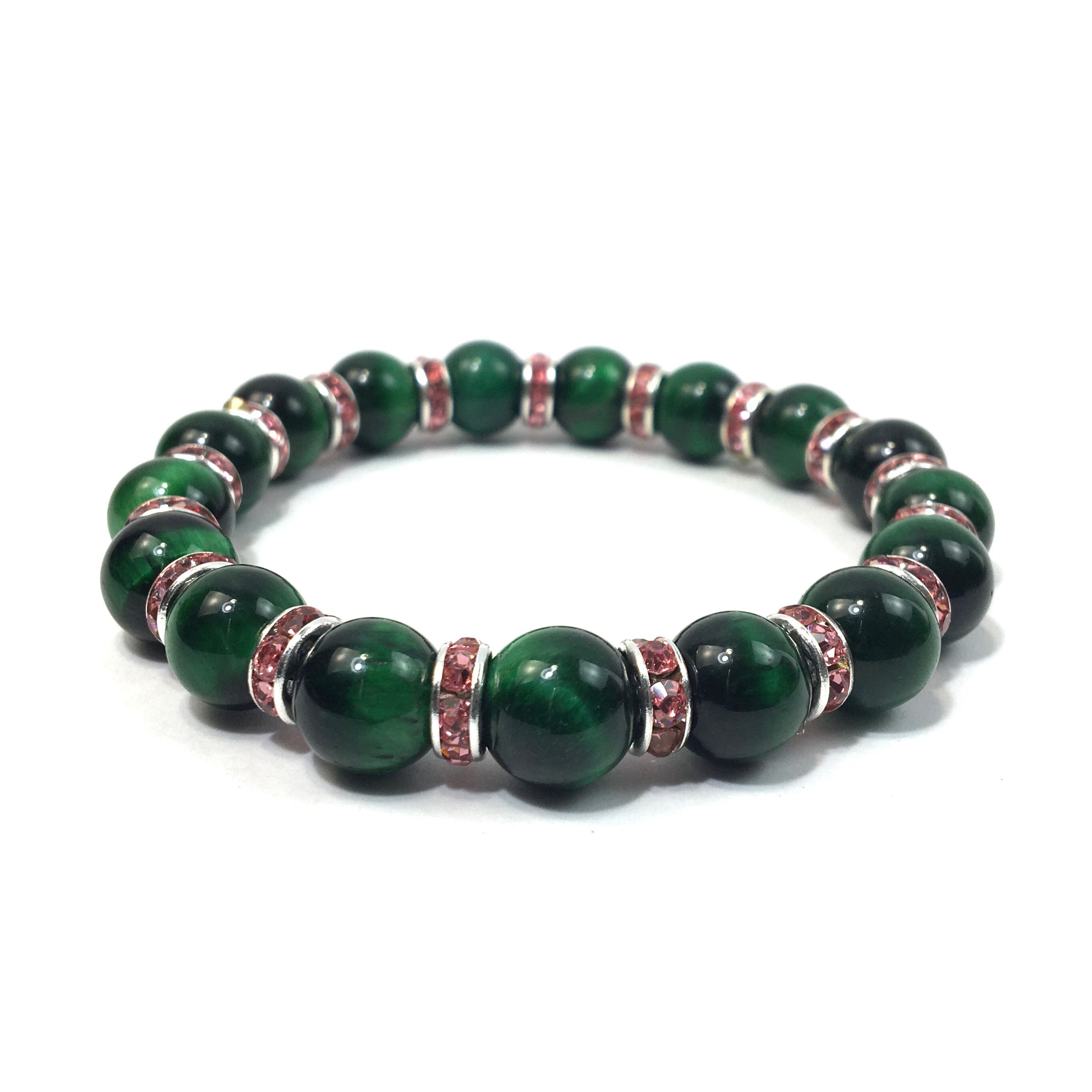 グリーンタイガーアイ パワーストーン ブレスレット 10mm (ピンク)メンズ・レディース 男性・女性 数珠ブレス  開運 ☆