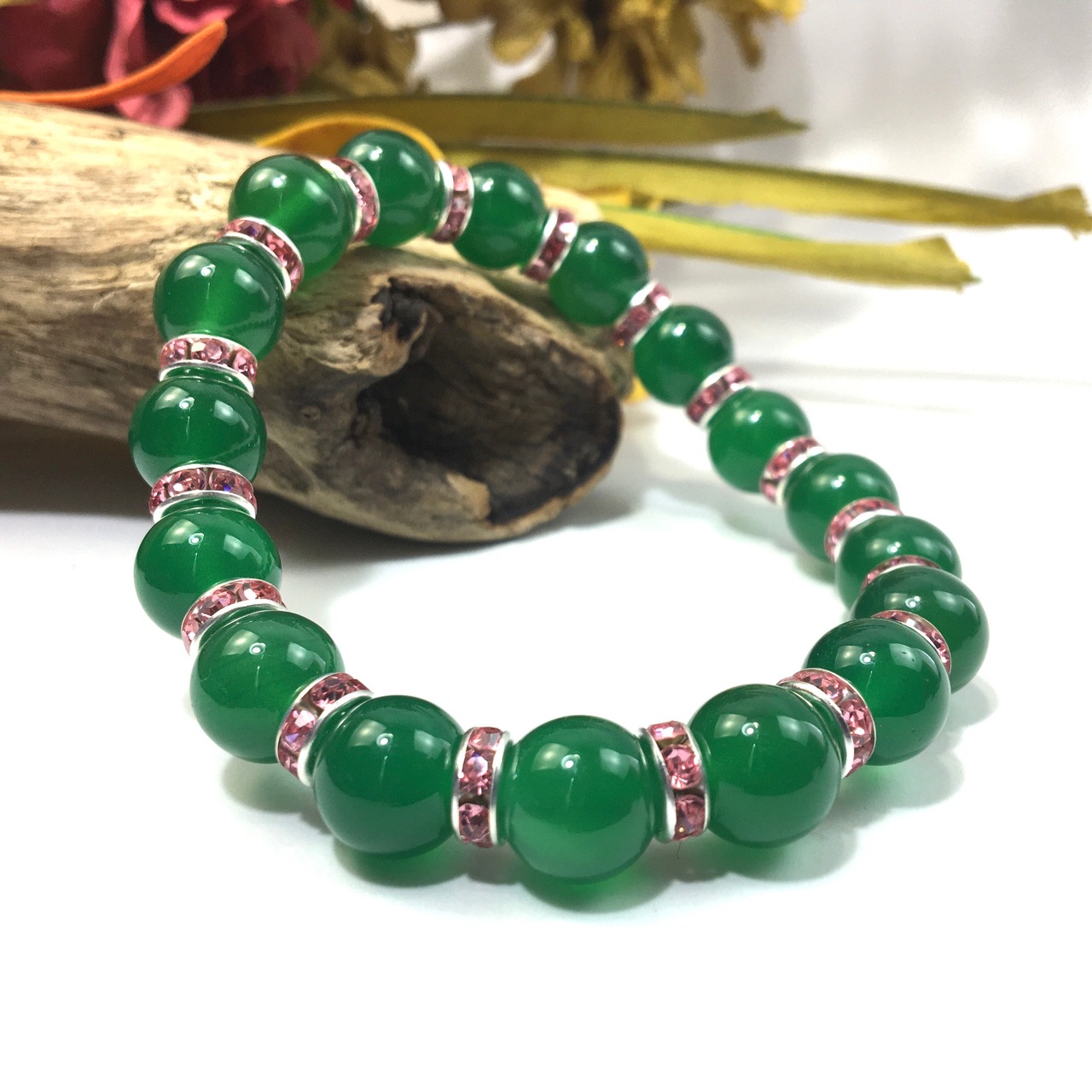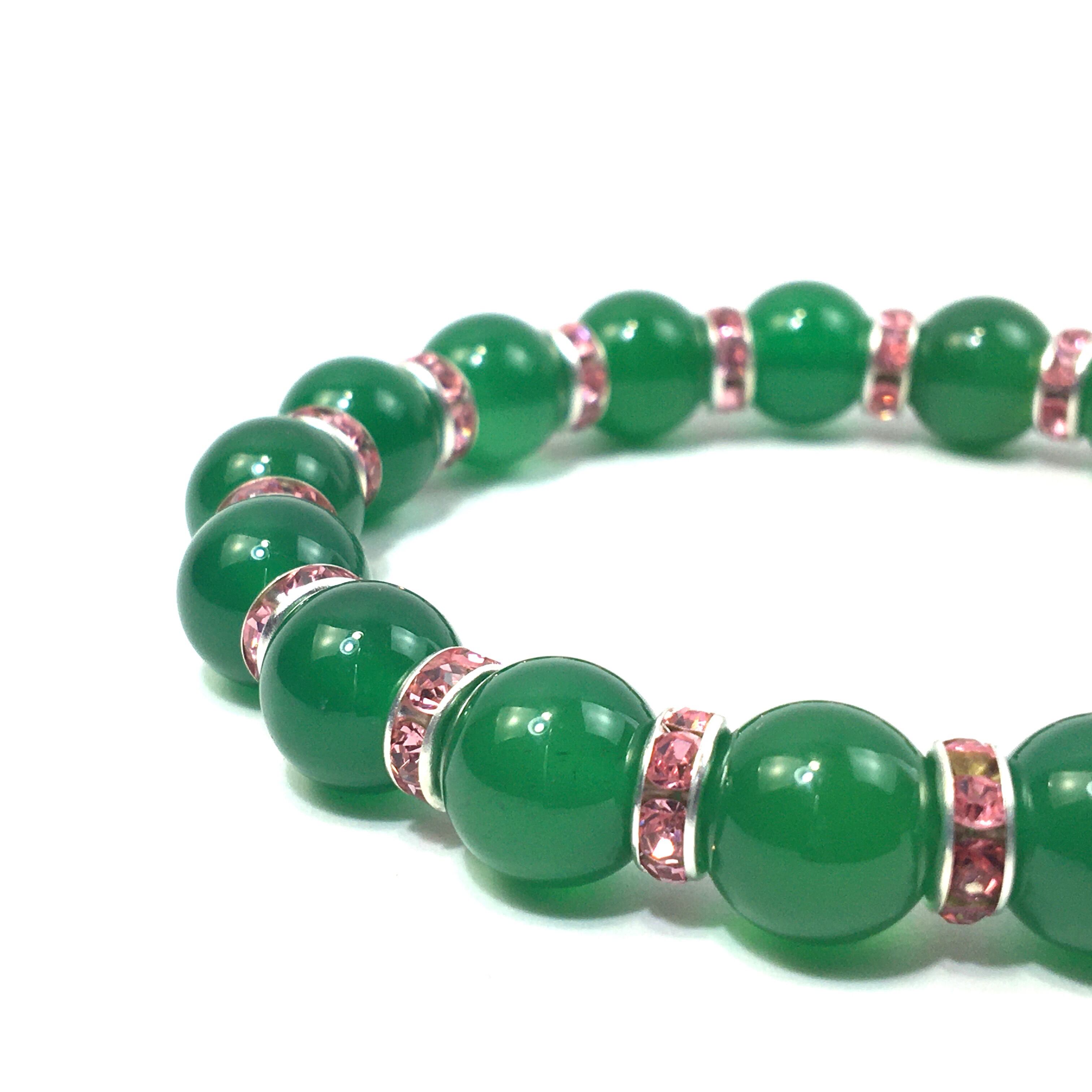 緑瑪瑙 パワーストーン ブレスレット 天然石 10mm (ピンク)メンズ・レディース 男性・女性 数珠ブレス  開運 ☆