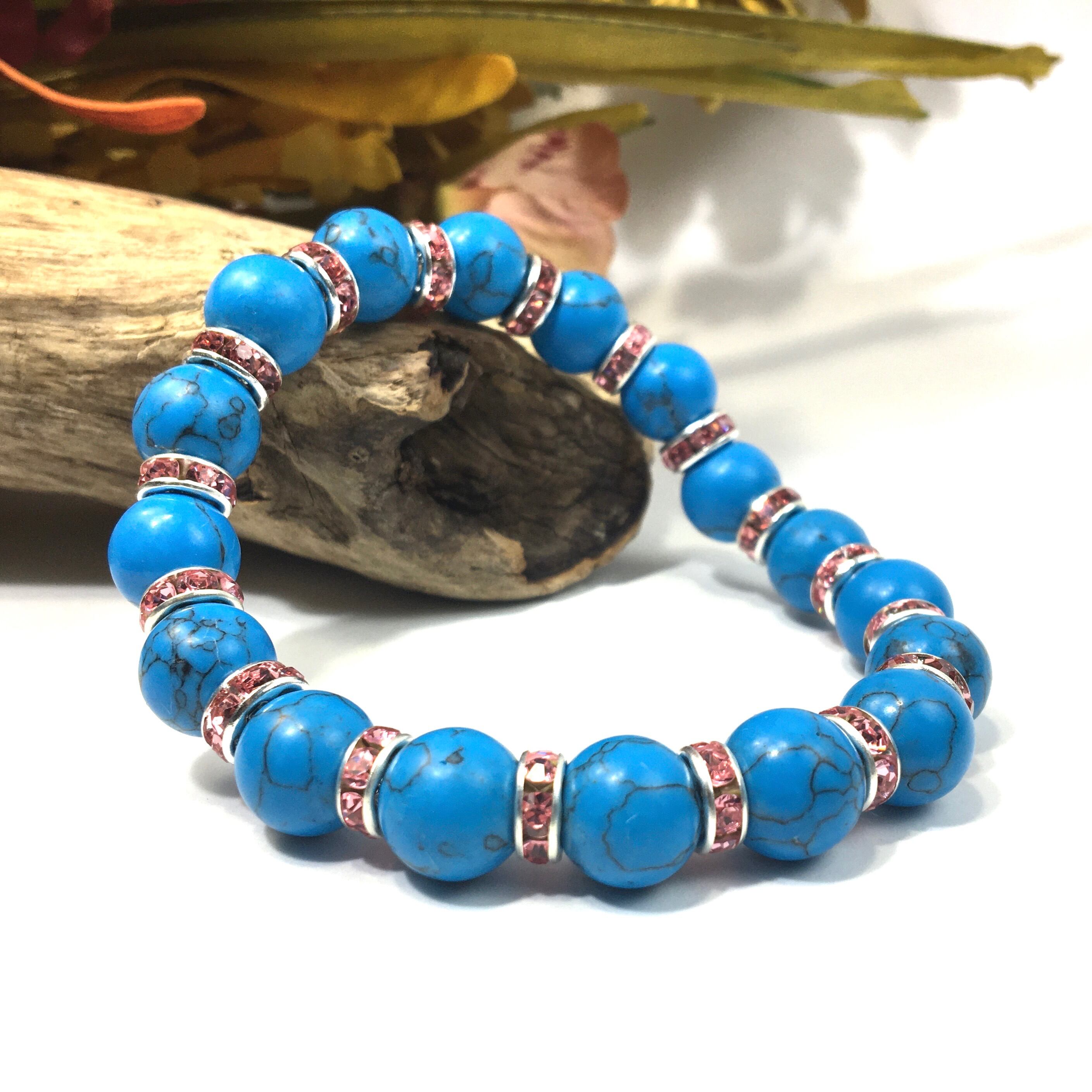 ターコイズ パワーストーン ブレスレット 10mm (ピンク)メンズ・レディース 男性・女性 数珠ブレス  開運 ☆
