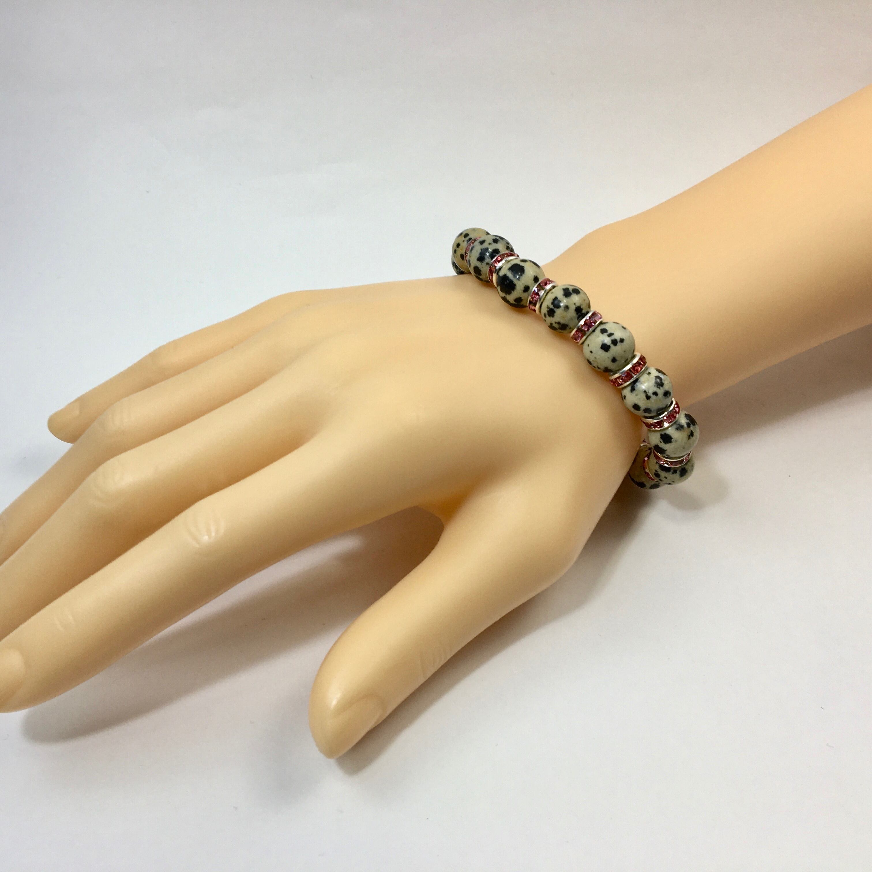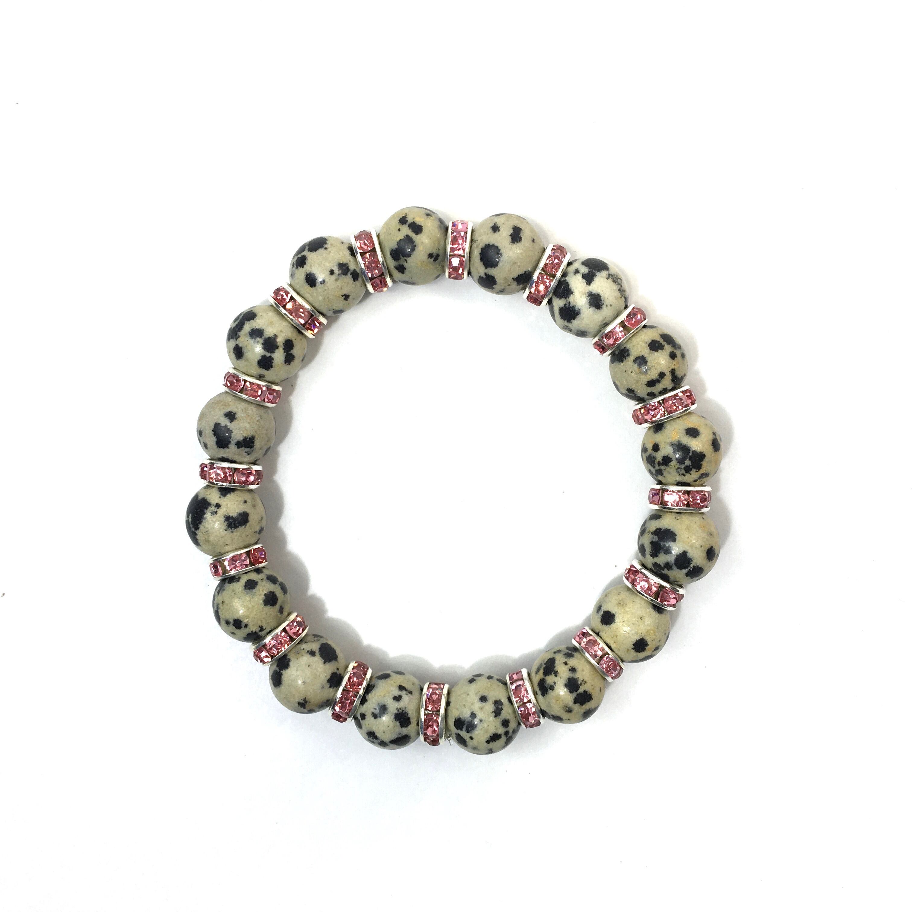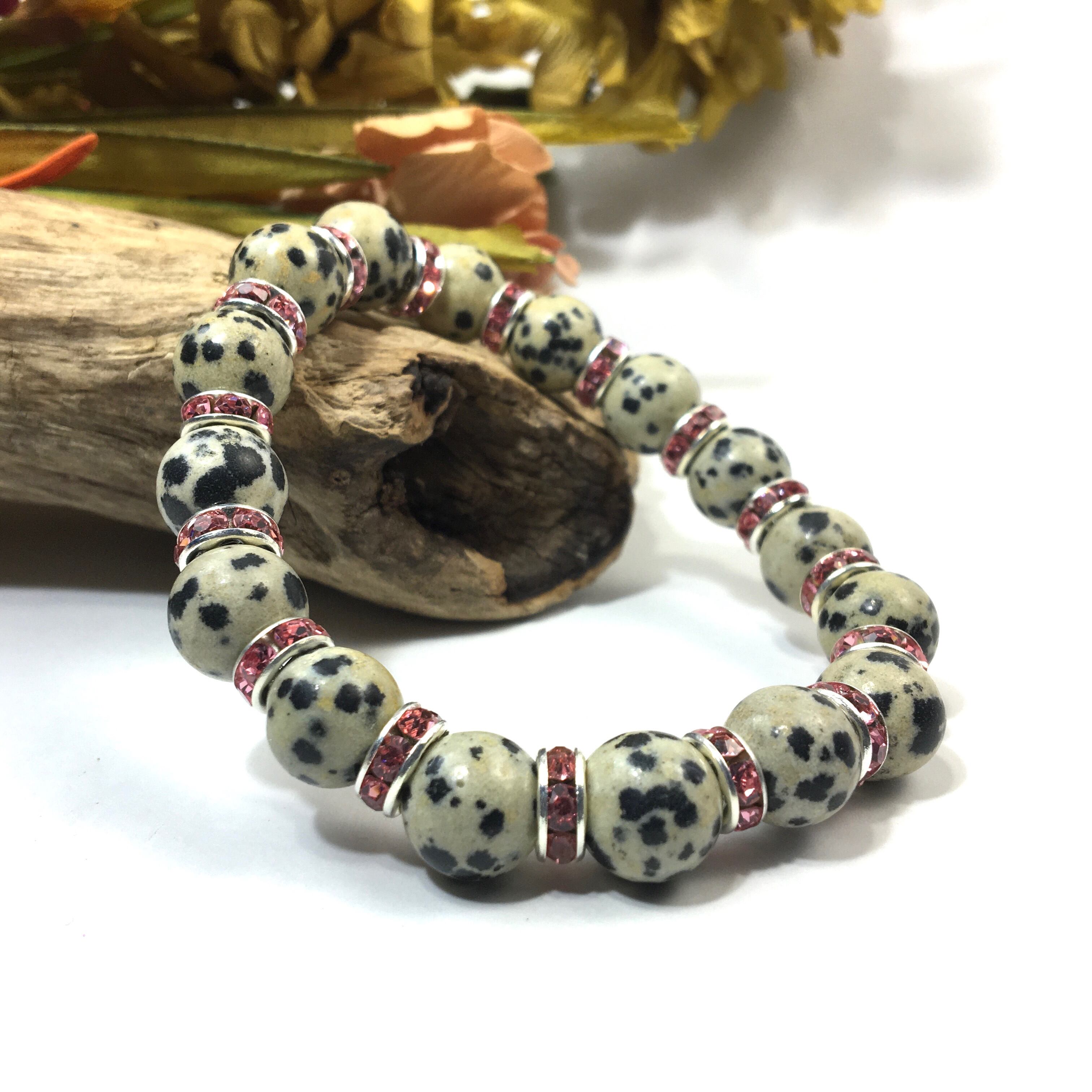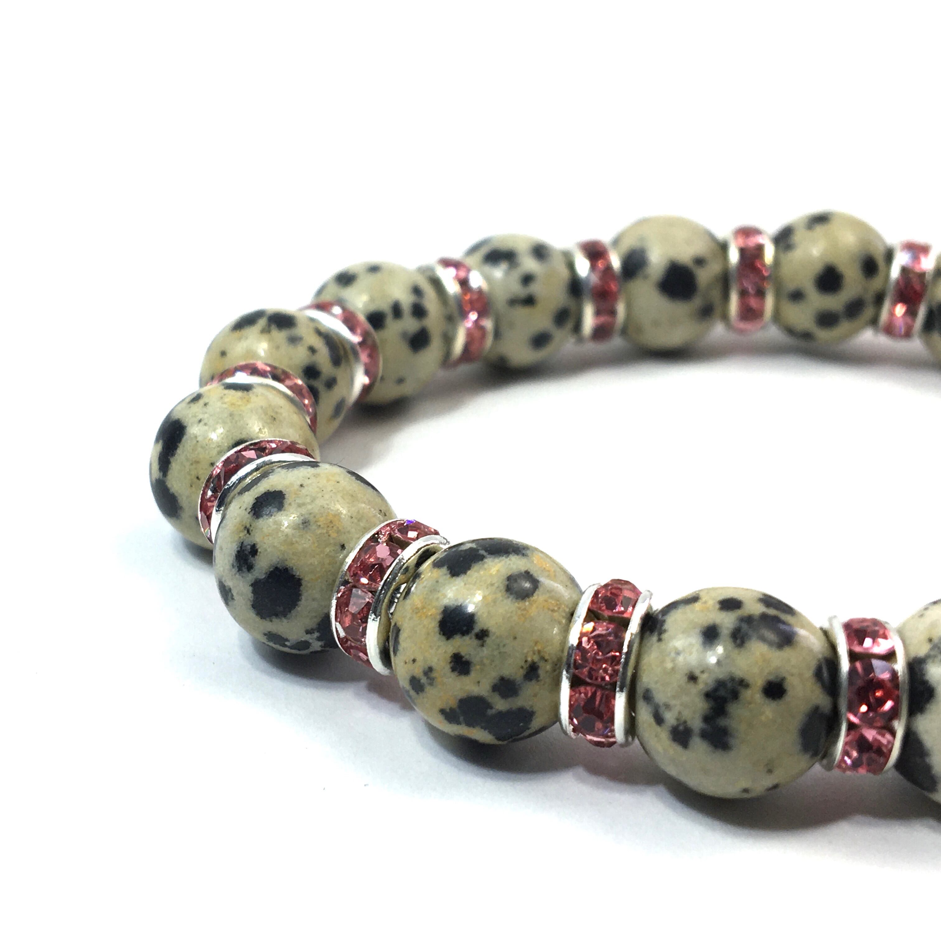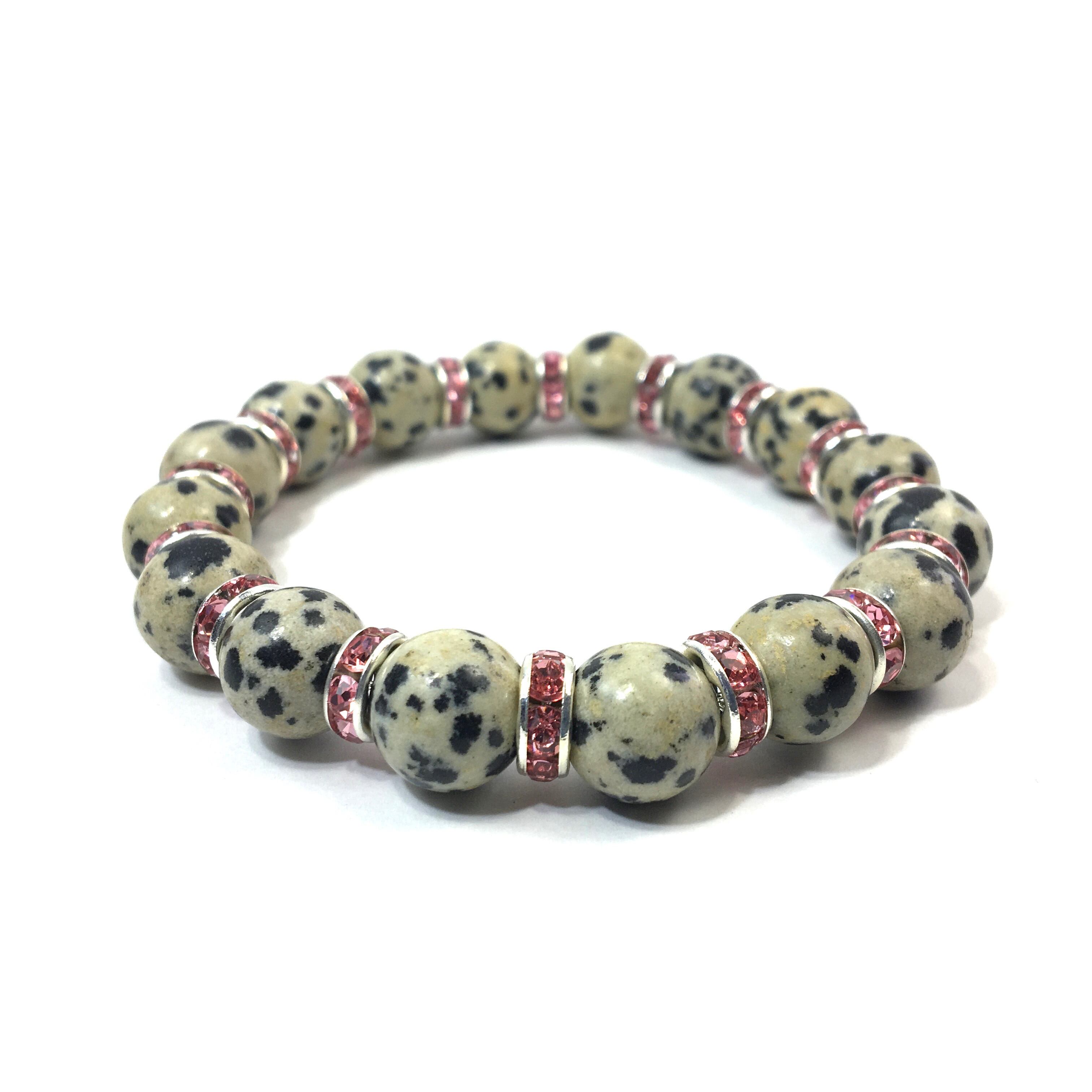 ダルメシアンジャスパー パワーストーン ブレスレット 天然石 10mm (ピンク)メンズ・レディース 男性・女性 数珠ブレス  開運 ☆