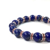 こちらは、ラピスラズリの10mm玉を使用したパワーストーンブレスレットです。石との間にはロンデルを挟み高級感を演出しております。シンプルなデザインは、シーン問わずどんなコーディネートとも合わせ易いブレスレットです。サイズは種類を選択からお選びください。(内周約14cm?内周約22cmでお選び頂けます)当社の中でも一番人気の実績があるデザインとなっております。気になる方はお早めにどうぞ。
