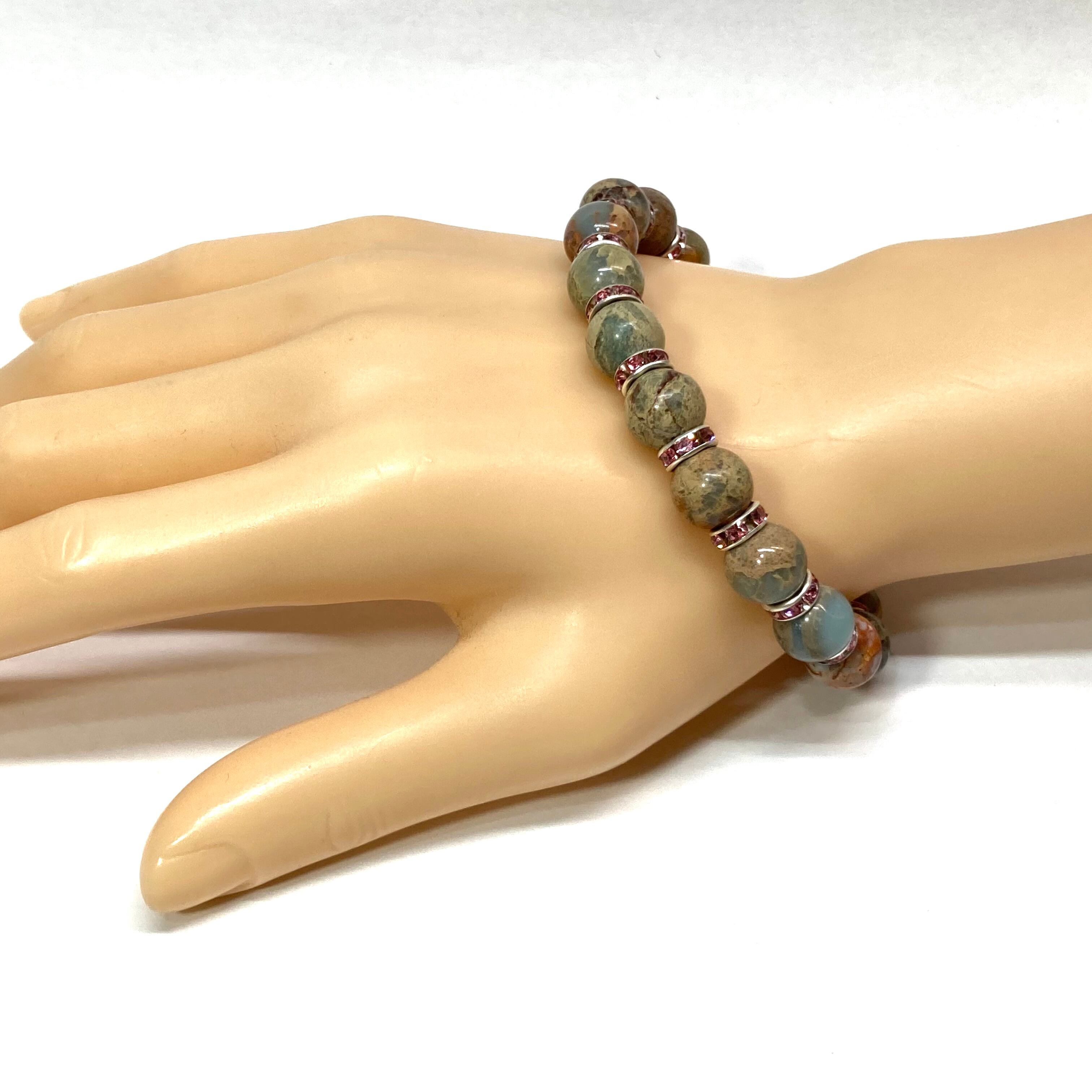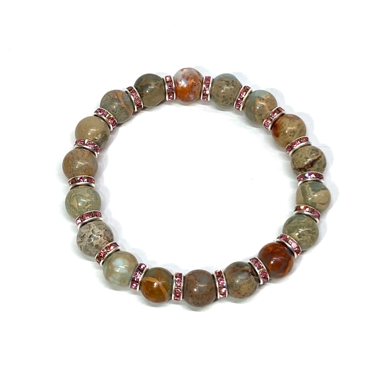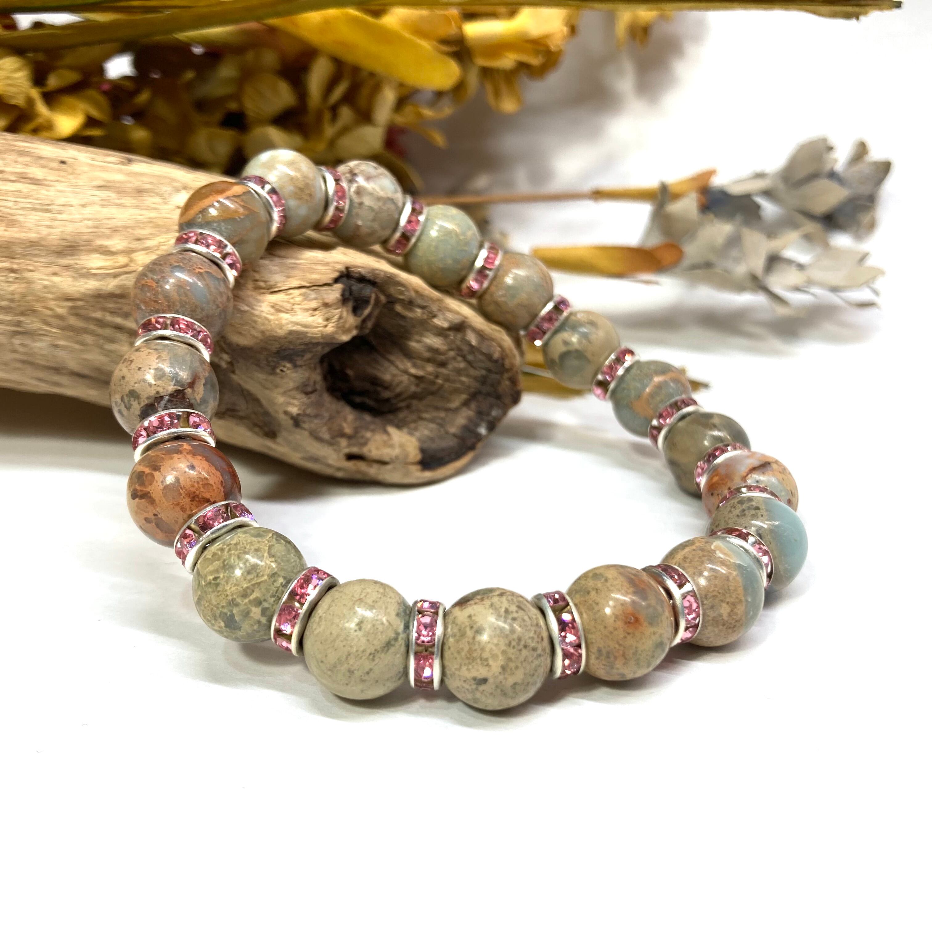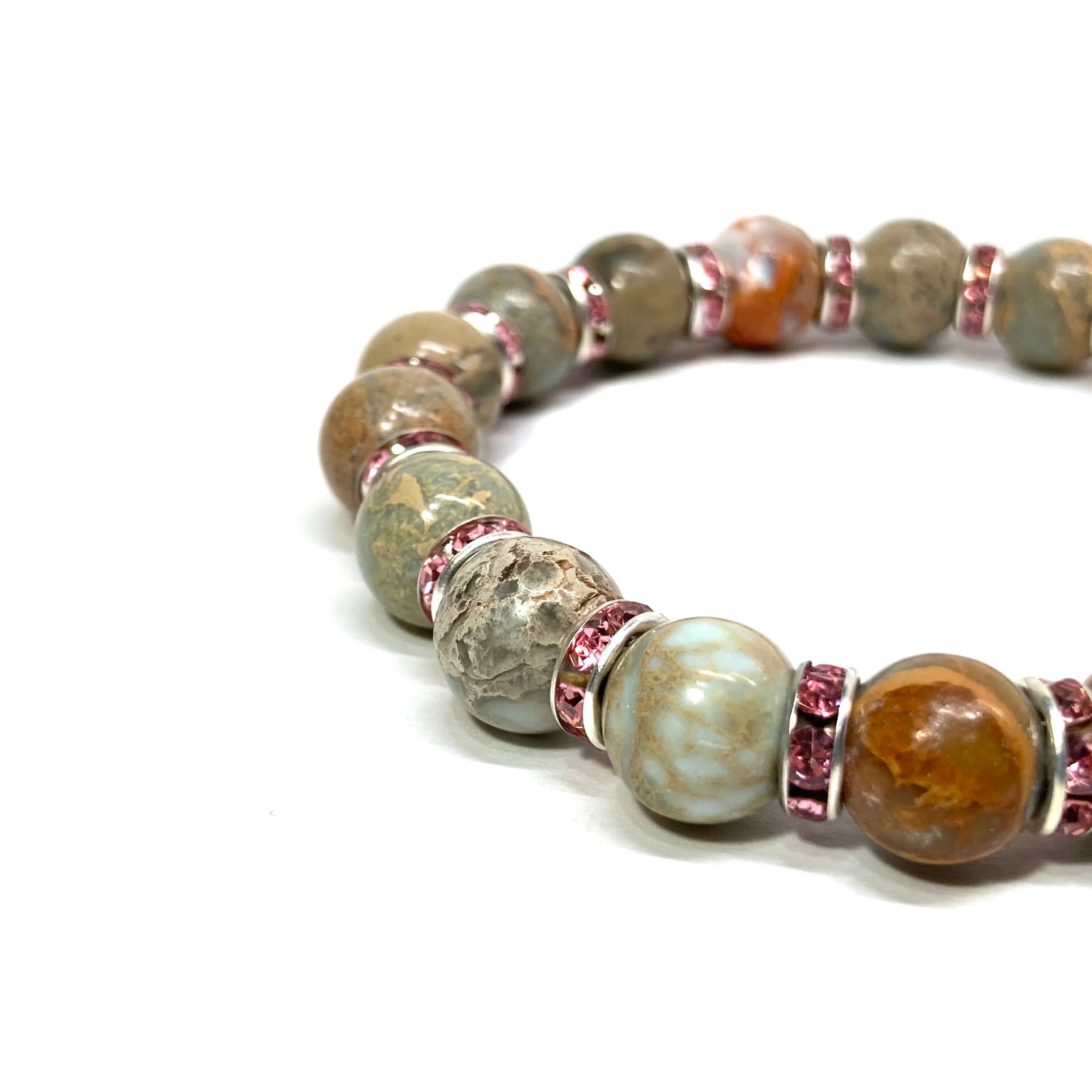 インプレッションストーン パワーストーン ブレスレット 10mm (ピンク)メンズ・レディース 男性・女性 数珠ブレス  開運 ☆