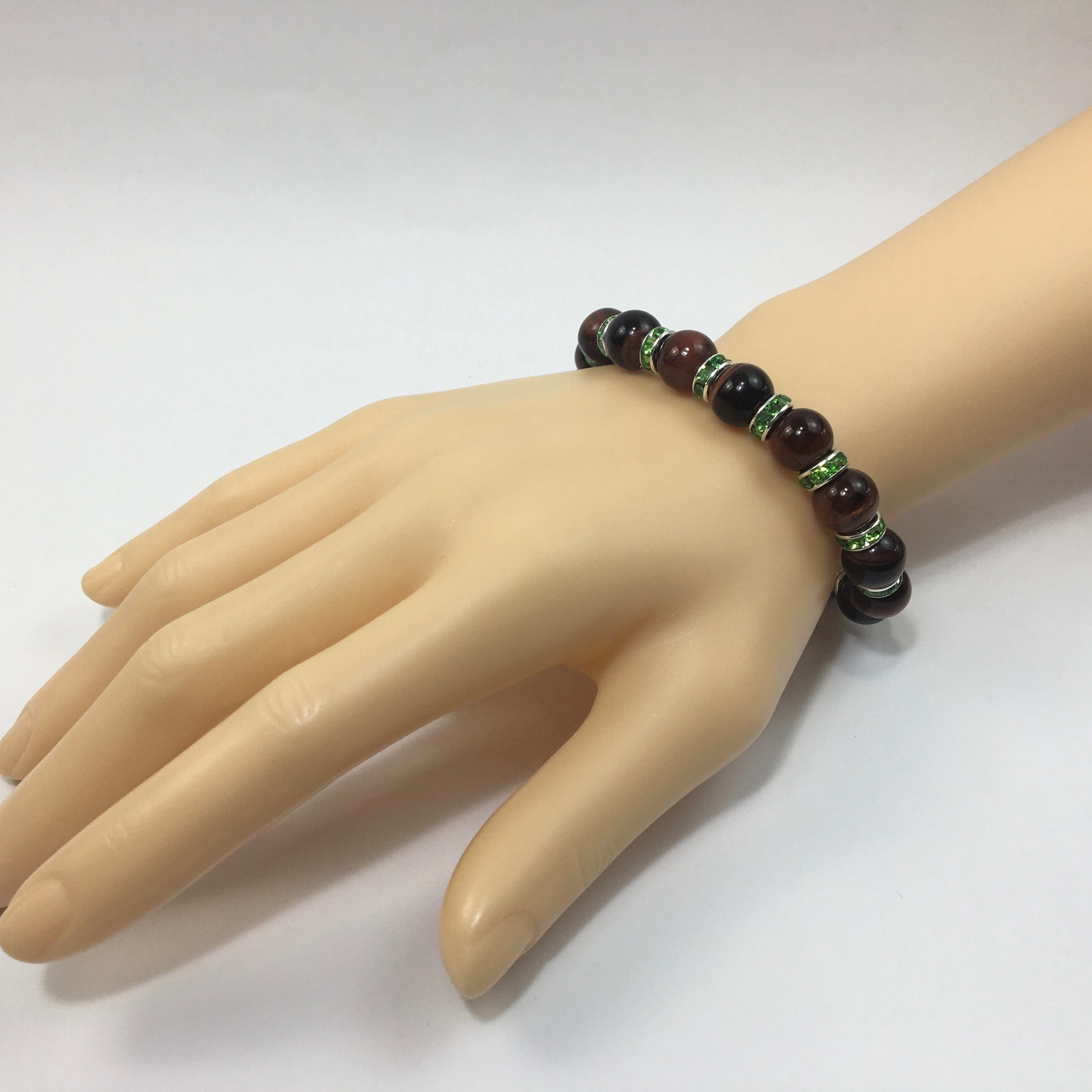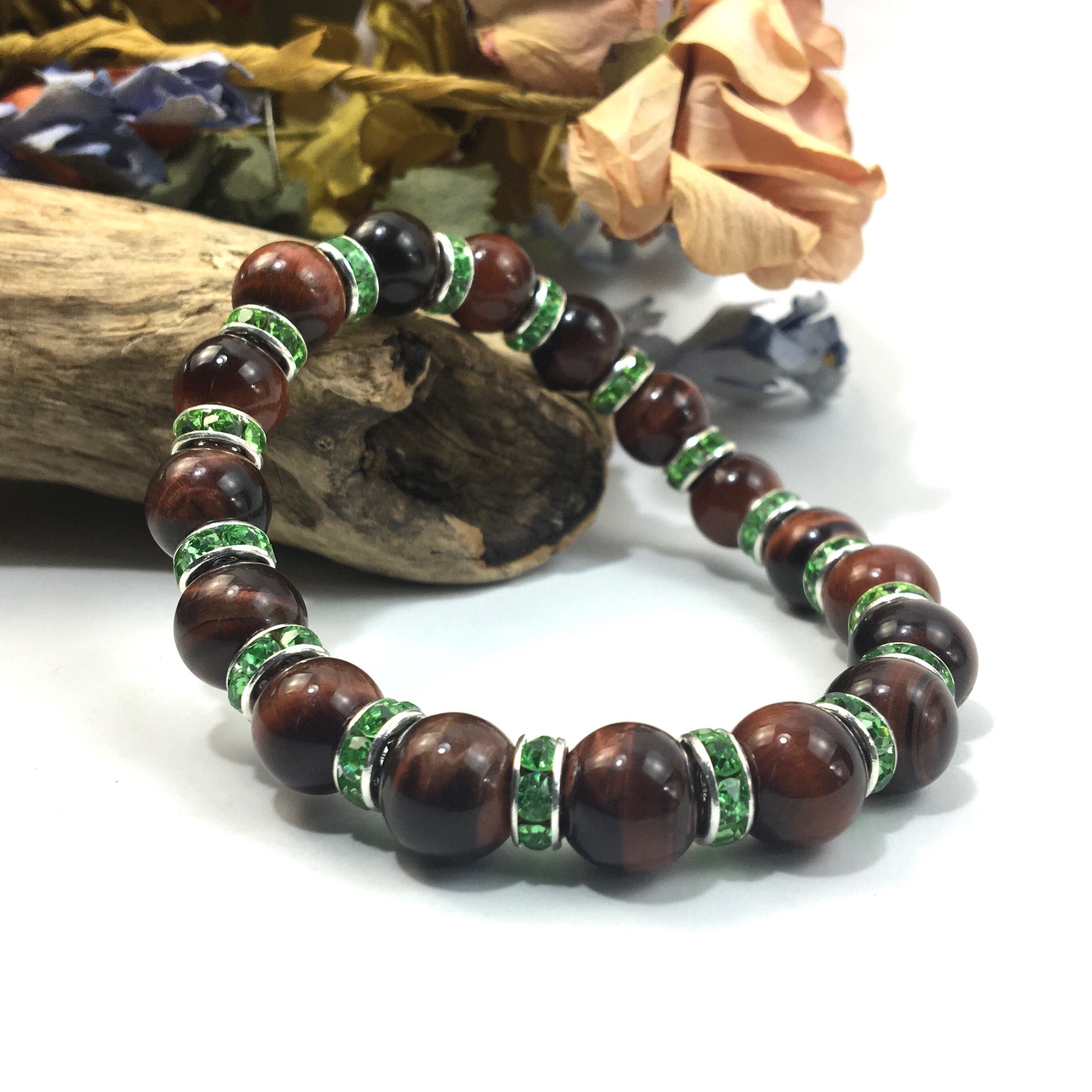 こちらは、レッドタイガーアイの10mm玉を使用したパワーストーンブレスレットです。石との間にはロンデルを挟み高級感を演出しております。シンプルなデザインは、シーン問わずどんなコーディネートとも合わせ易いブレスレットです。サイズは種類を選択からお選びください。(内周約14cm?内周約22cmでお選び頂けます)当社の中でも一番人気の実績があるデザインとなっております。気になる方はお早めにどうぞ。