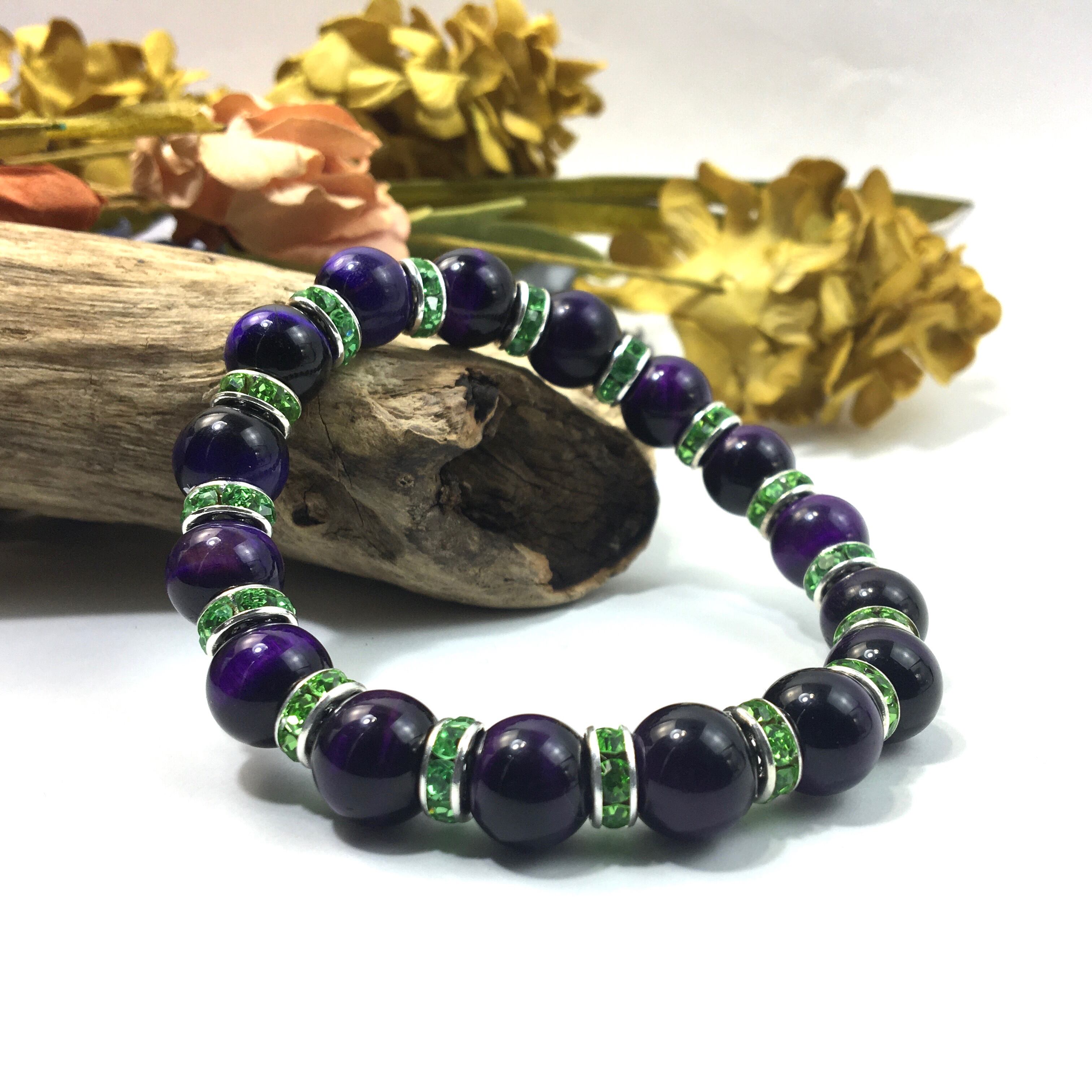 パープルタイガーアイ パワーストーン ブレスレット 10mm (グリーン)メンズ・レディース 男性・女性 数珠ブレス  開運 ☆