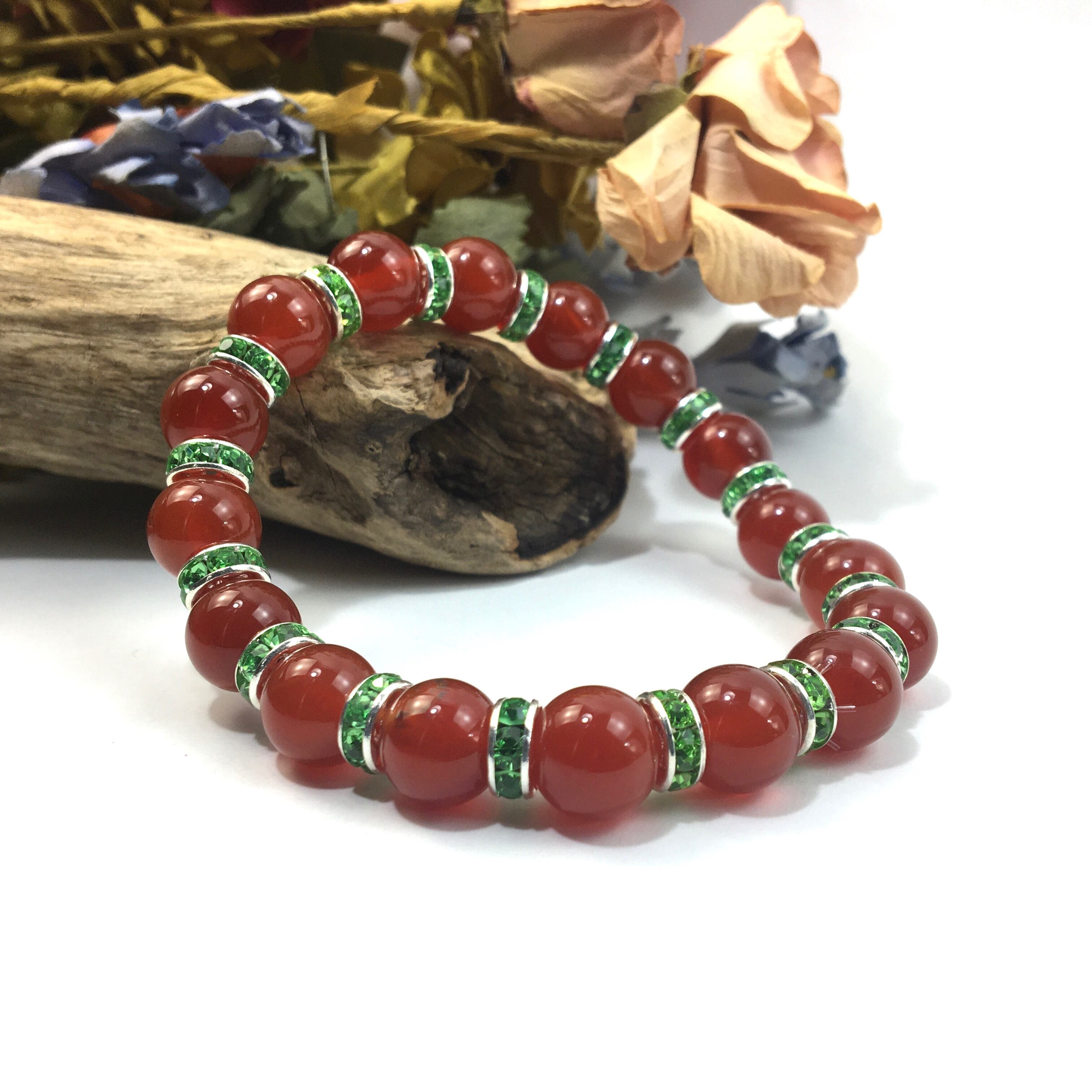 赤瑪瑙 パワーストーン ブレスレット 天然石 10mm (グリーン)メンズ・レディース 男性・女性 数珠ブレス  開運 ☆