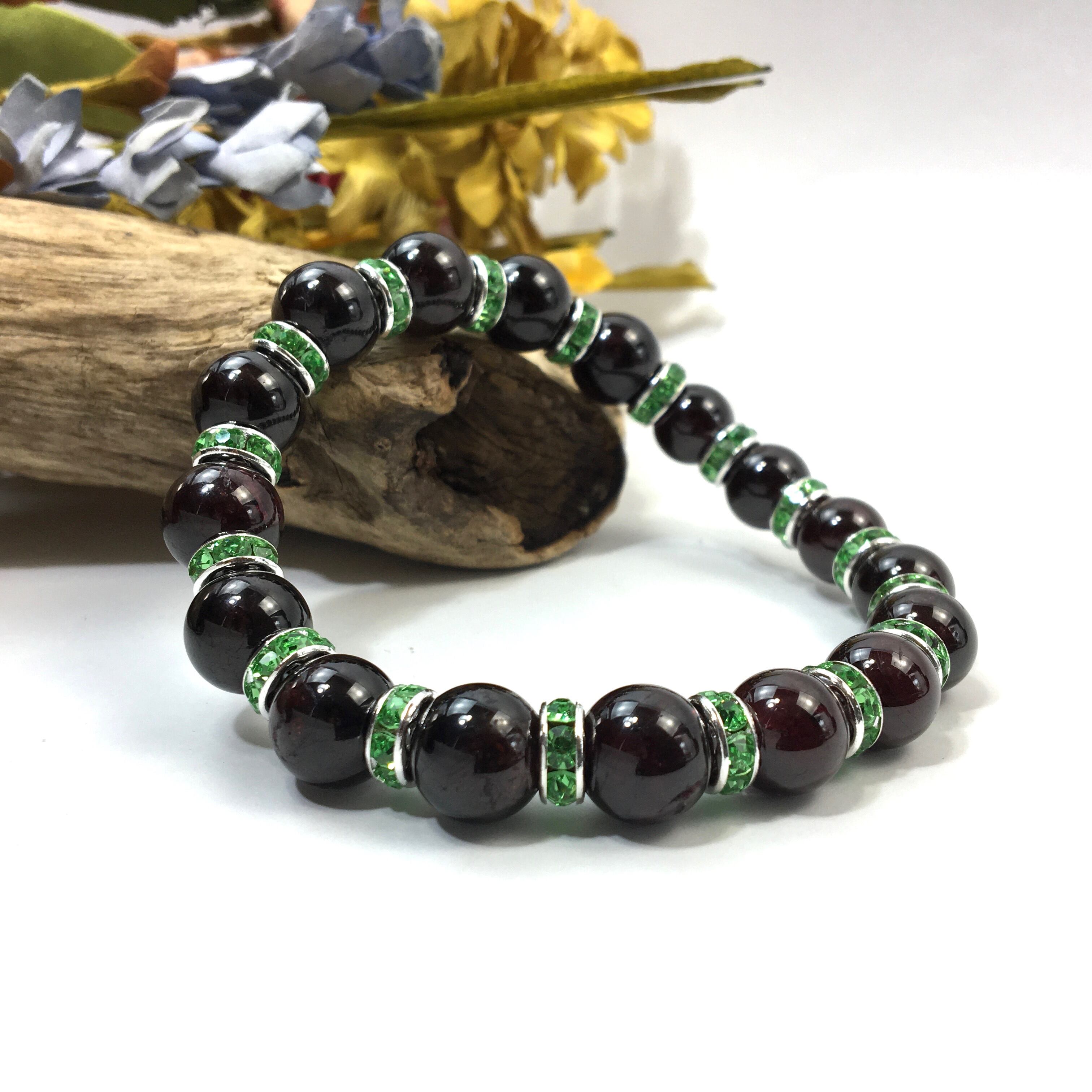 ガーネット パワーストーン ブレスレット 天然石 10mm (グリーン)メンズ・レディース 男性・女性 数珠ブレス  開運 ☆