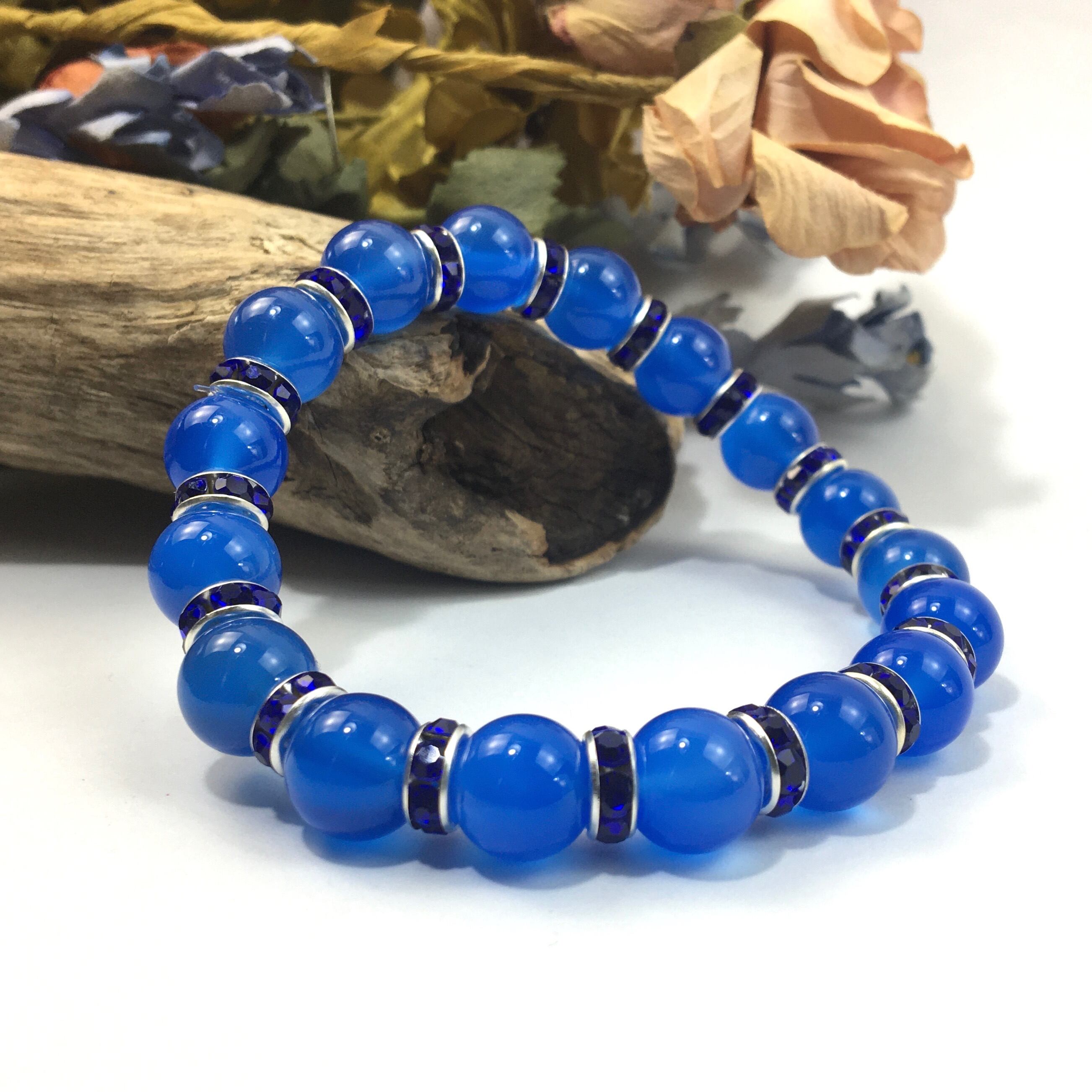 青瑪瑙 パワーストーン ブレスレット 天然石 10mm (ダークブルー)メンズ・レディース 男性・女性 数珠ブレス  開運 ☆