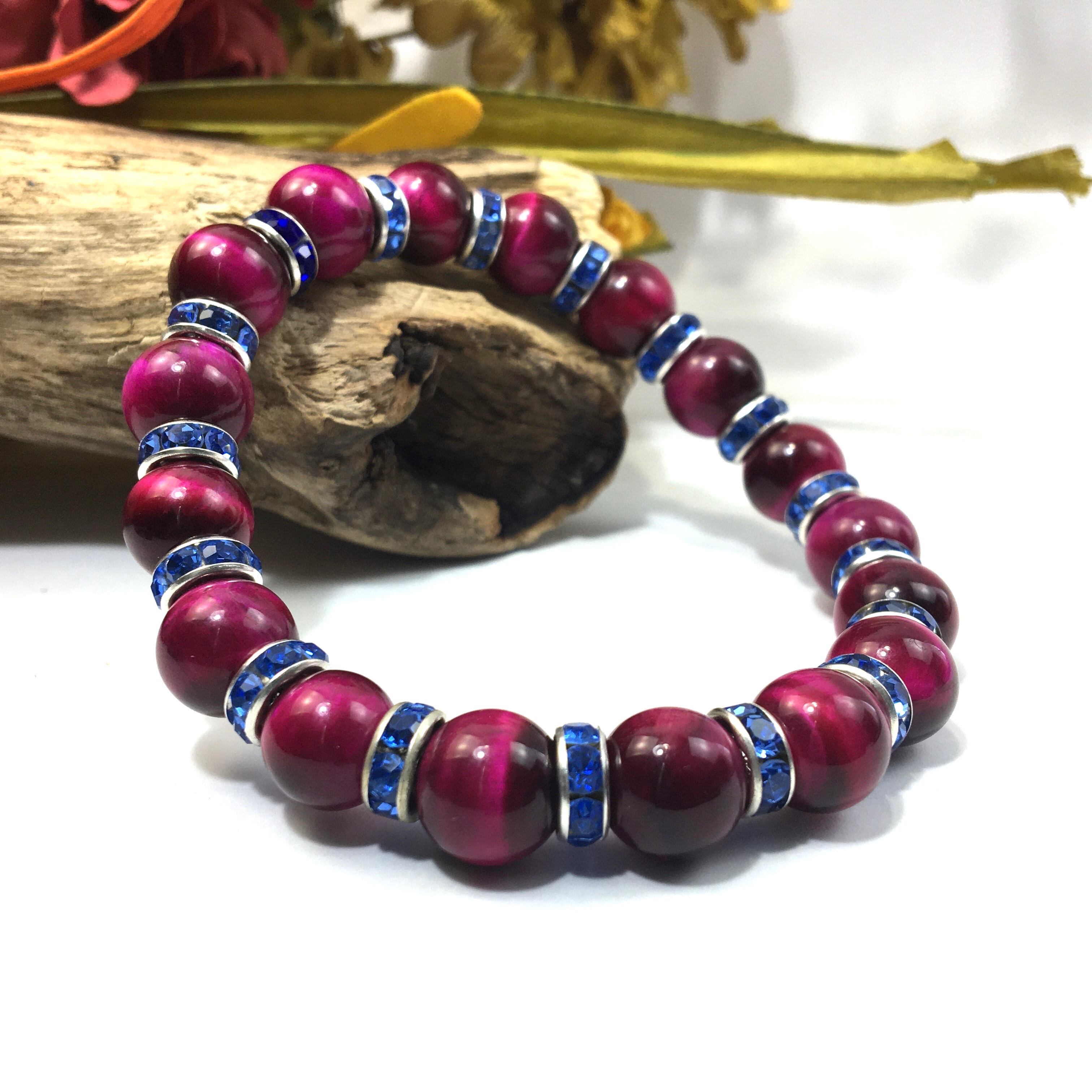 ピンクタイガーアイ パワーストーン ブレスレット 10mm (ブルー)メンズ・レディース 男性・女性 数珠ブレス  開運 ☆