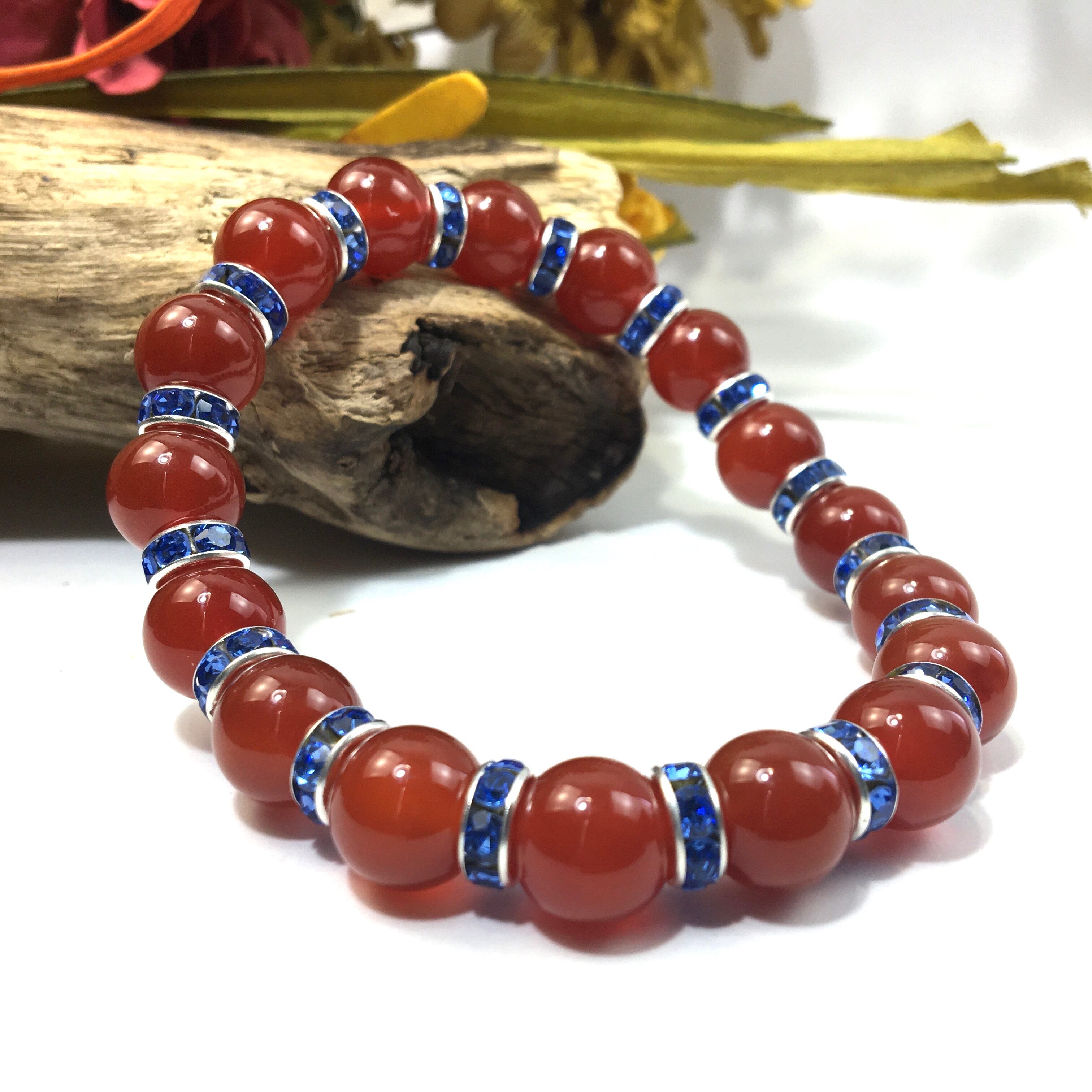 赤瑪瑙 パワーストーン ブレスレット 天然石 10mm (ブルー)メンズ・レディース 男性・女性 数珠ブレス  開運 ☆
