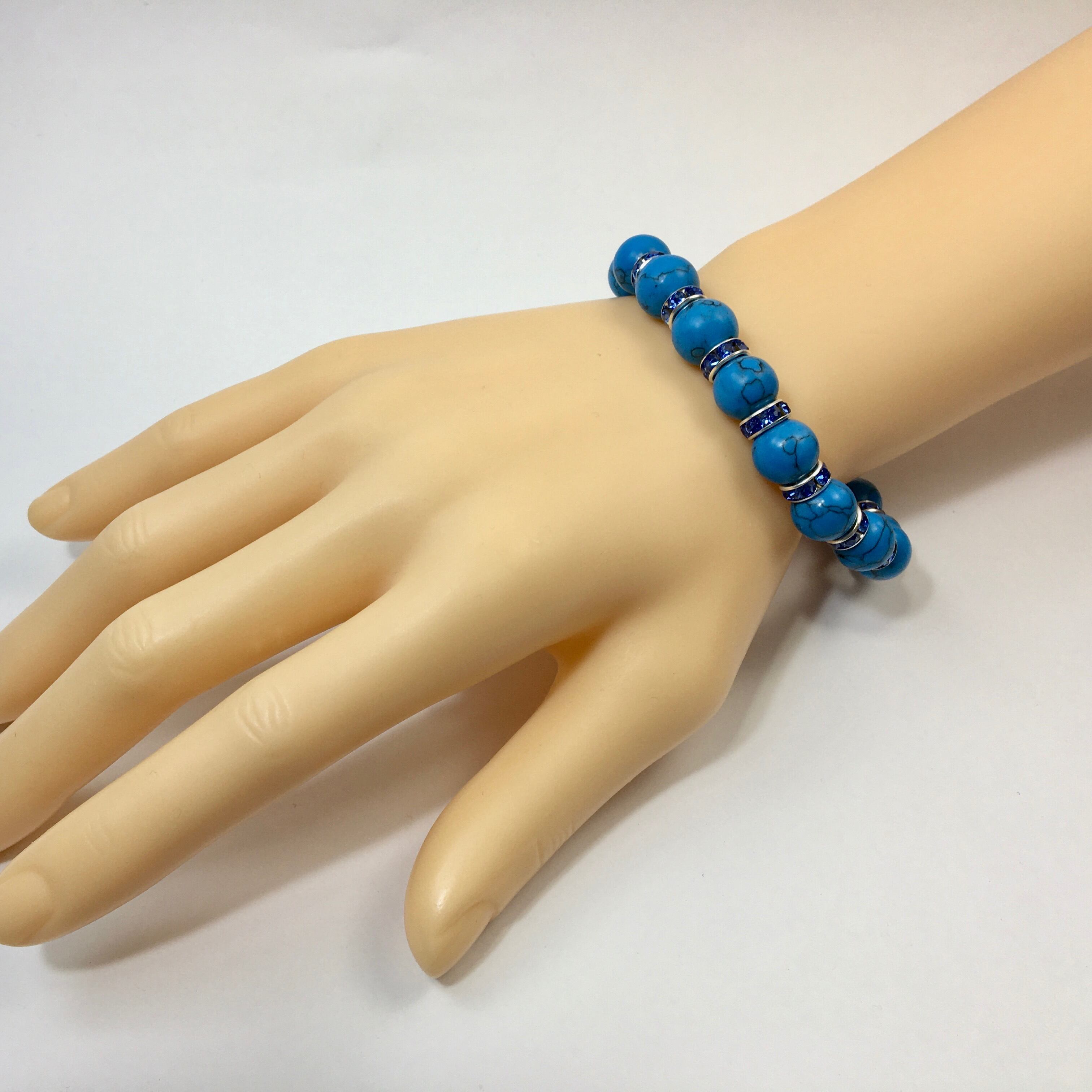 こちらは、ターコイズの10mm玉を使用したパワーストーンブレスレットです。石との間にはロンデルを挟み高級感を演出しております。シンプルなデザインは、シーン問わずどんなコーディネートとも合わせ易いブレスレットです。サイズは種類を選択からお選びください。(内周約14cm?内周約22cmでお選び頂けます)当社の中でも一番人気の実績があるデザインとなっております。気になる方はお早めにどうぞ。