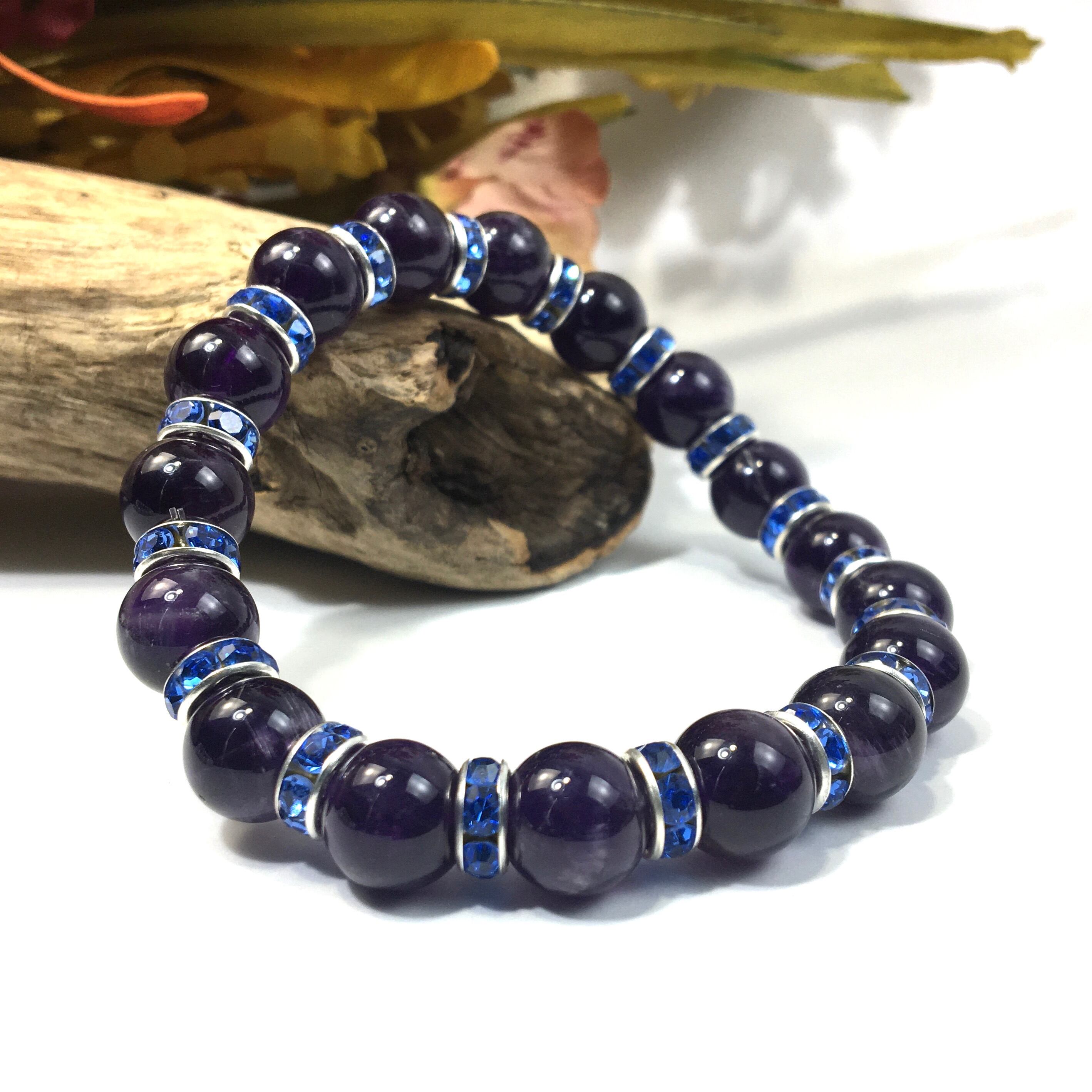 アメジスト パワーストーン ブレスレット 天然石 10mm (ブルー)メンズ・レディース 男性・女性 数珠ブレス  開運 ☆