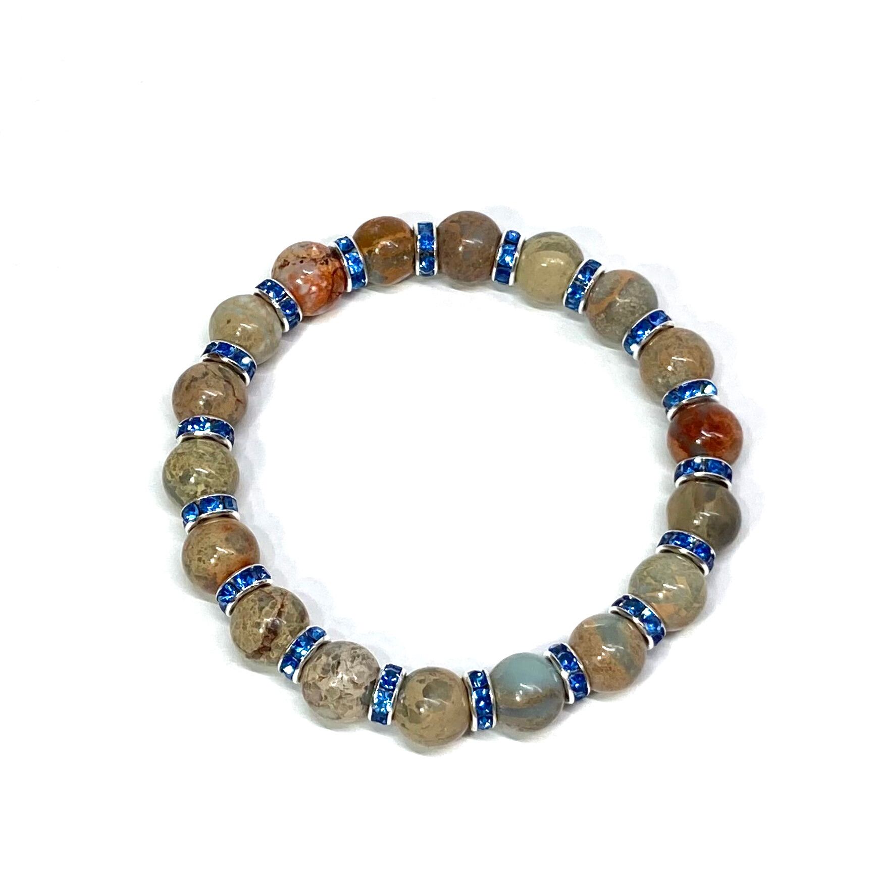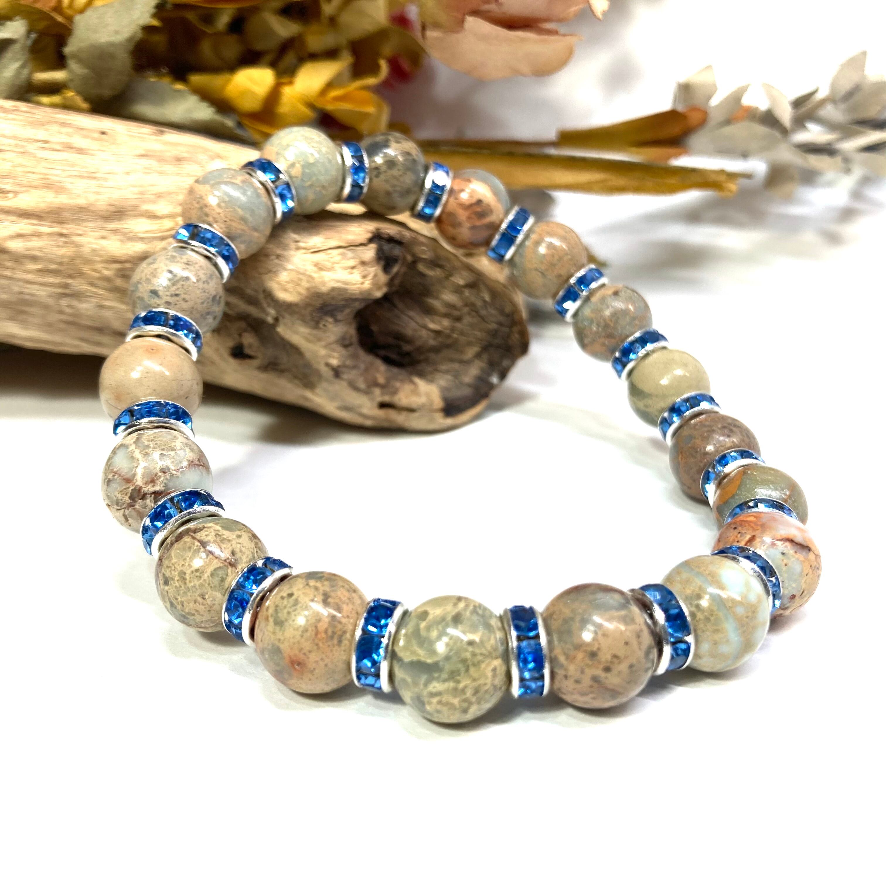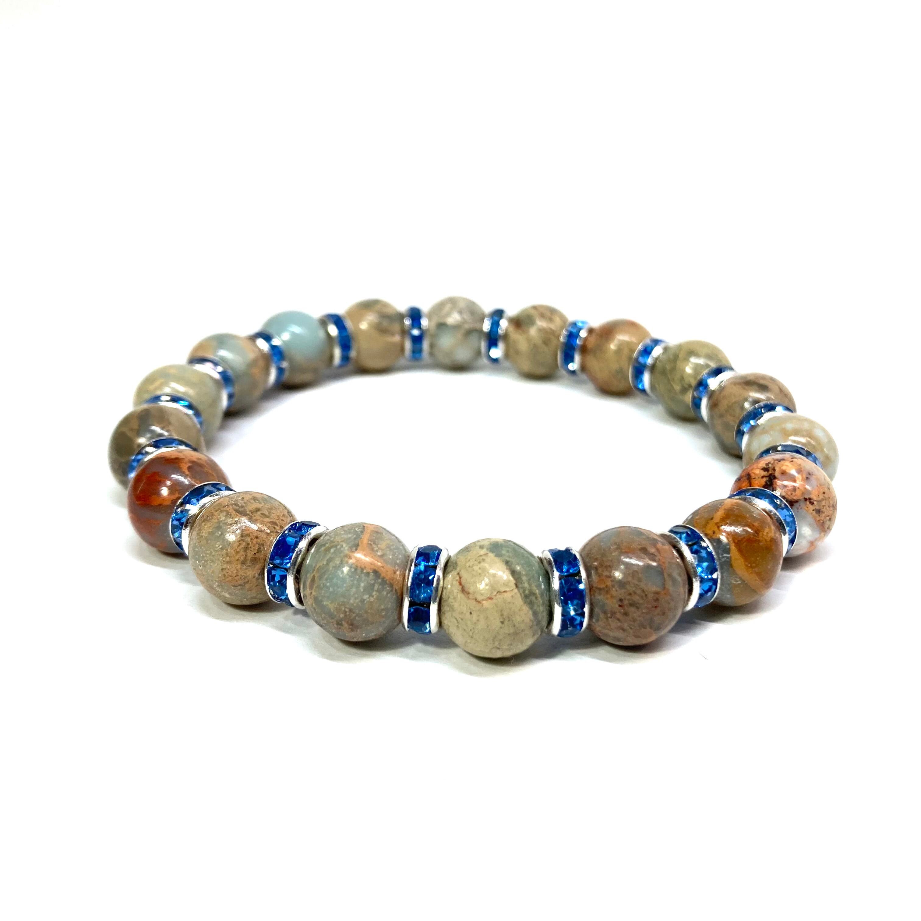 インプレッションストーン パワーストーン ブレスレット 10mm (ブルー)メンズ・レディース 男性・女性 数珠ブレス  開運 ☆