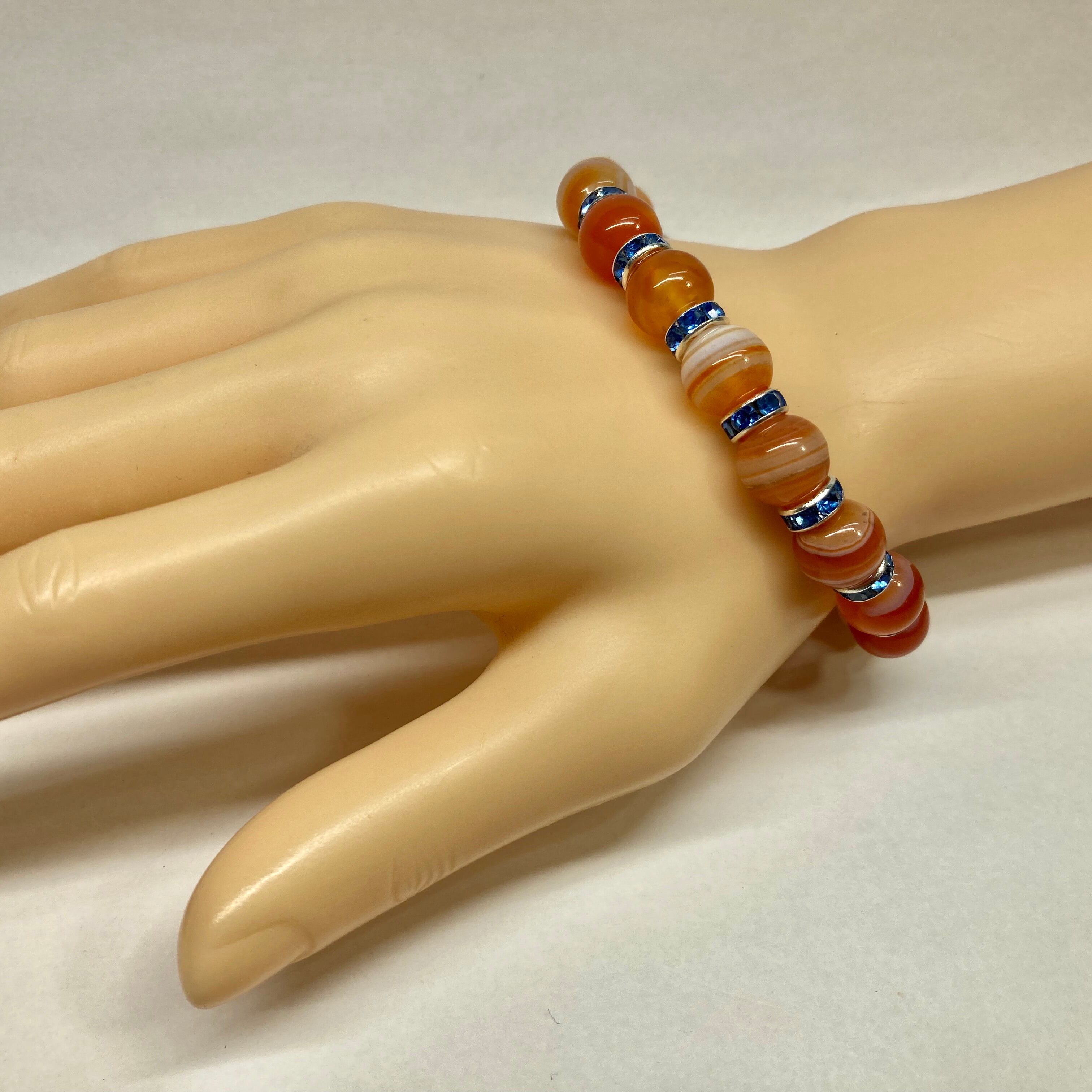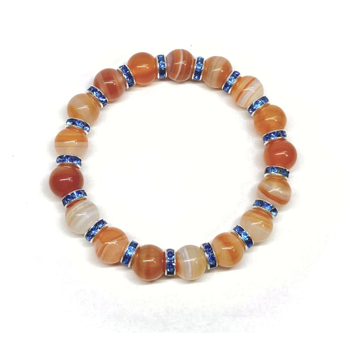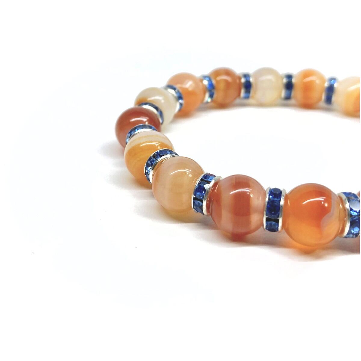 カーネリアン・サードニクス パワーストーン ブレスレット 10mm (ブルー)メンズ・レディース 男性・女性 数珠ブレス  開運 ☆