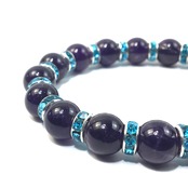 高貴な色を表す紫色をしたアメジストは霊性の高いパワーストーンと言われ、マイナスのエネルギーをプラスに変える効果があるといわれています。冷静な判断力、インスピレーション、直観力を高め、創造性を豊かにして、第六感を高めると言われ仕事、金運アップにも効果があると言われています。ストレスや過労、自律神経の乱れ、不眠のときにも有効です。「愛の守護石」として大切な人との心の絆を深め、真実の愛を守り抜く強さをはぐくむ、愛の成熟に力を与えてくれるパワーストーンです。
