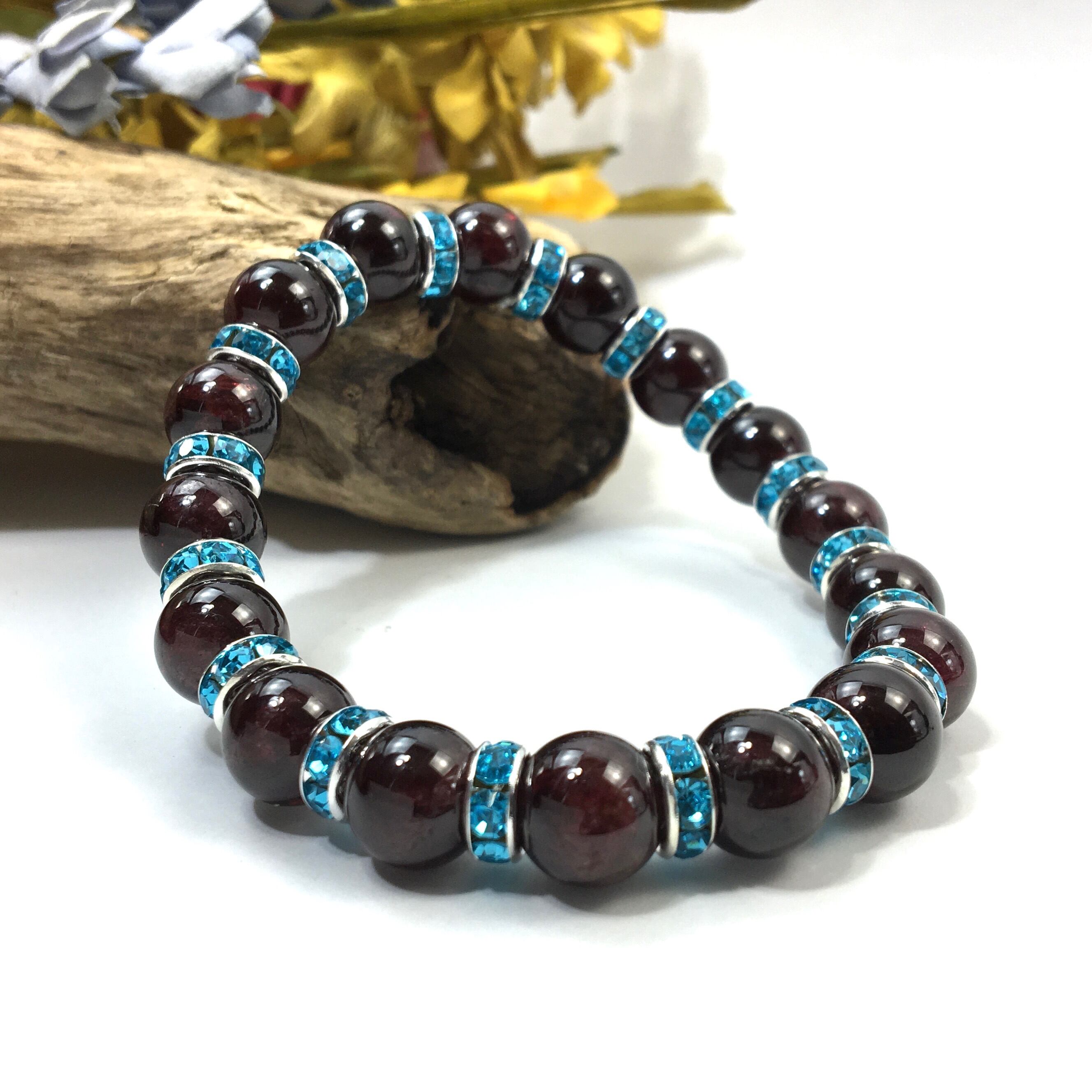 ガーネット パワーストーン ブレスレット 天然石 10mm (ライトブルー)メンズ・レディース 男性・女性 数珠ブレス  開運 ☆