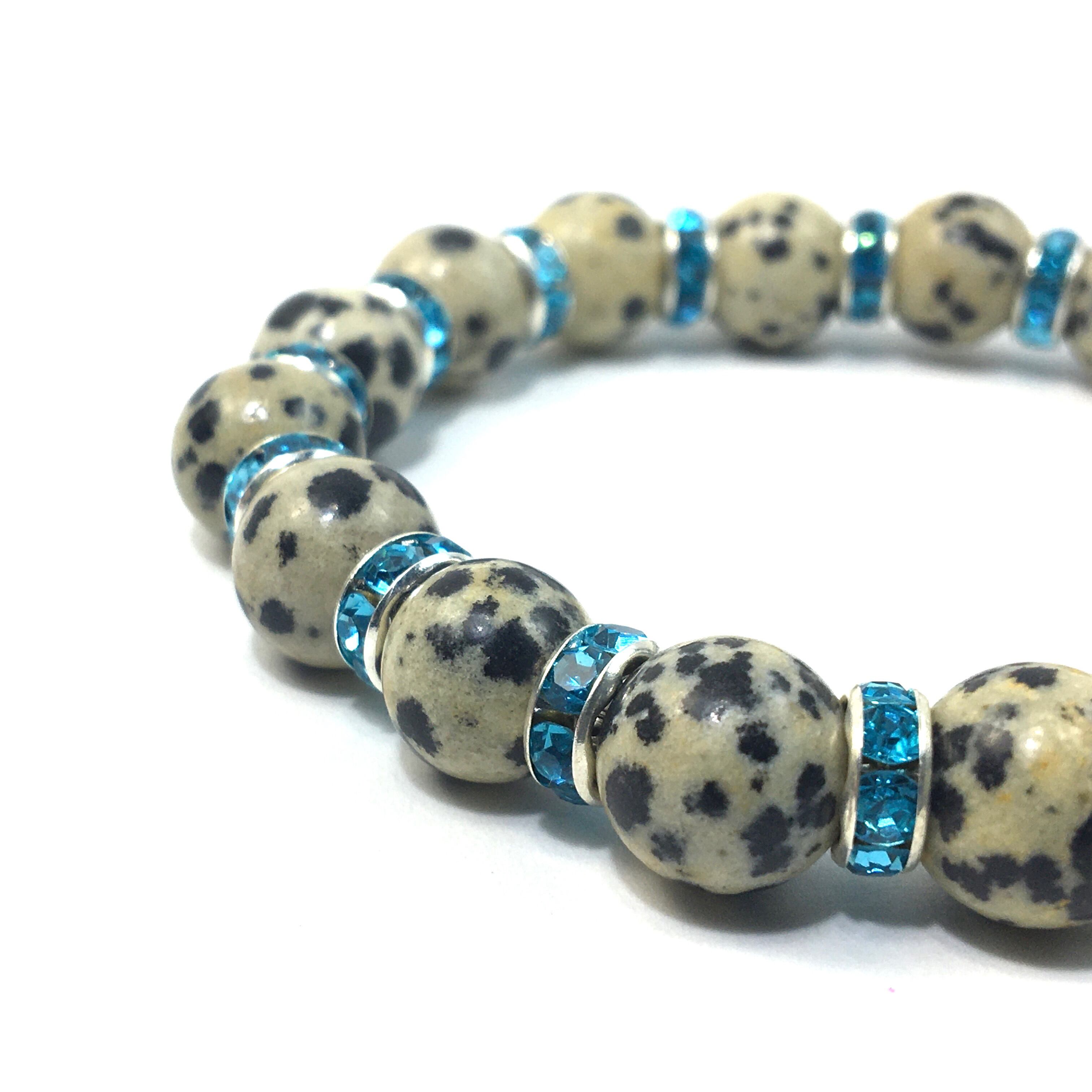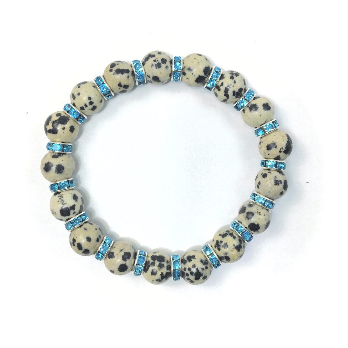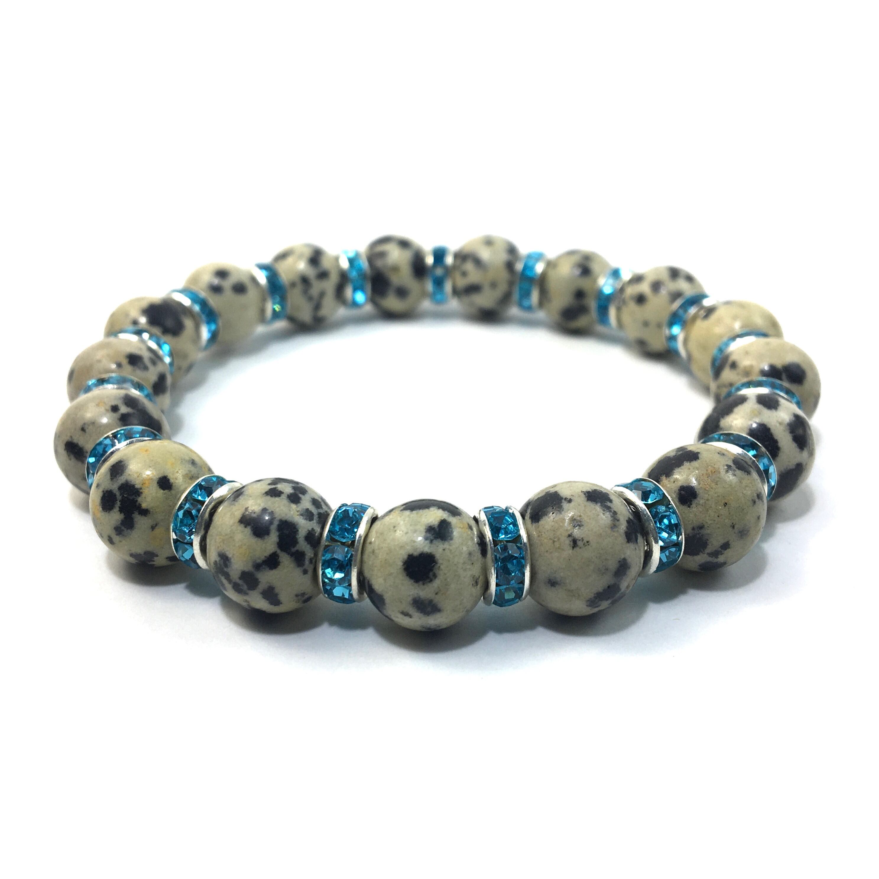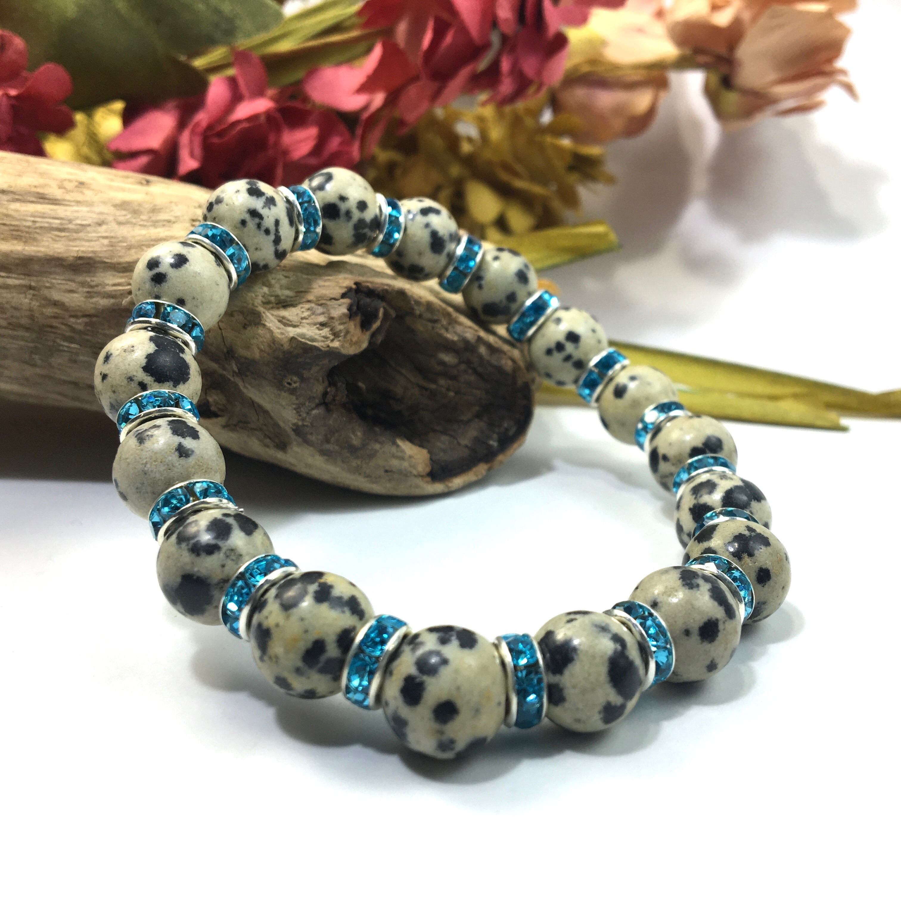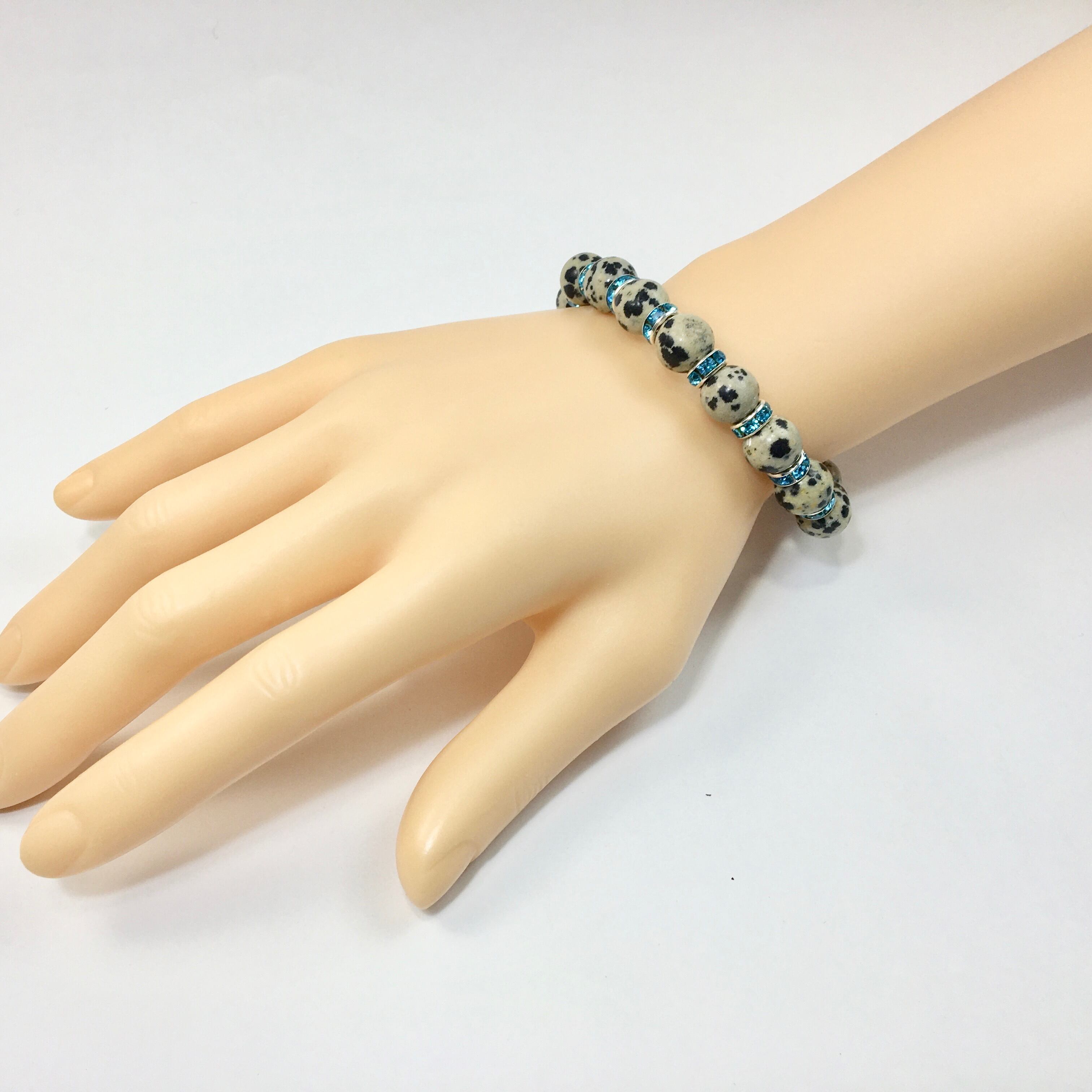 ダルメシアンジャスパー パワーストーン ブレスレット 天然石 10mm (ライトブルー)メンズ・レディース 男性・女性 数珠ブレス  開運 ☆