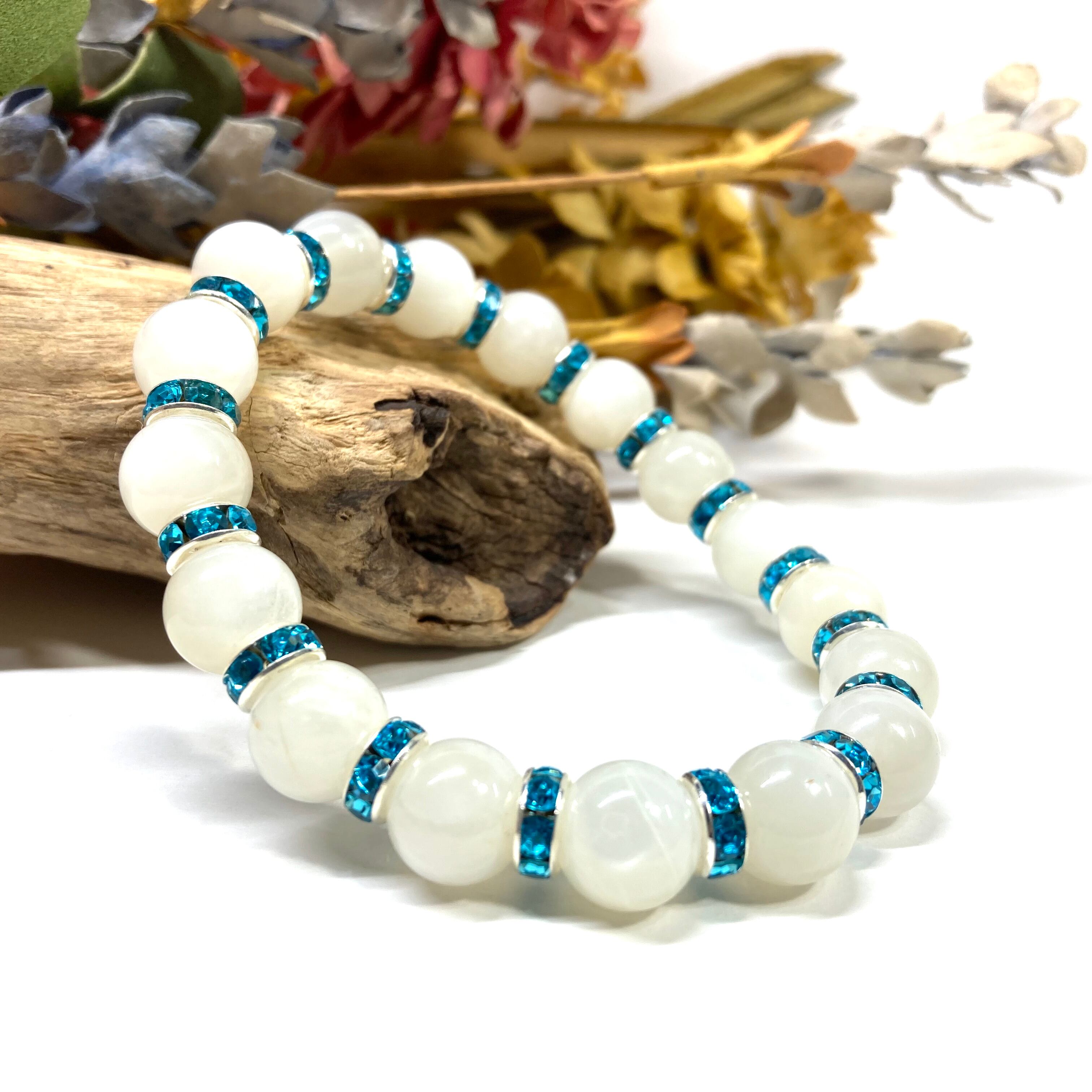 ムーンストーン パワーストーン ブレスレット 10mm 天然石 10mm (ライトブルー)メンズ・レディース 男性・女性 数珠ブレス  開運 ☆