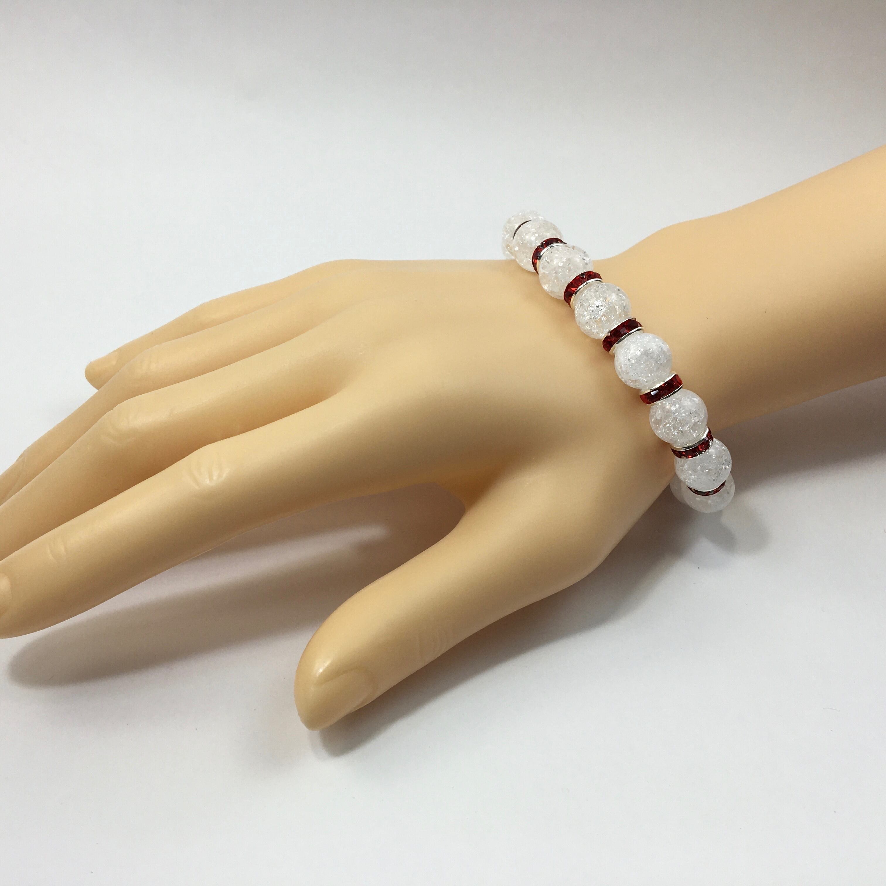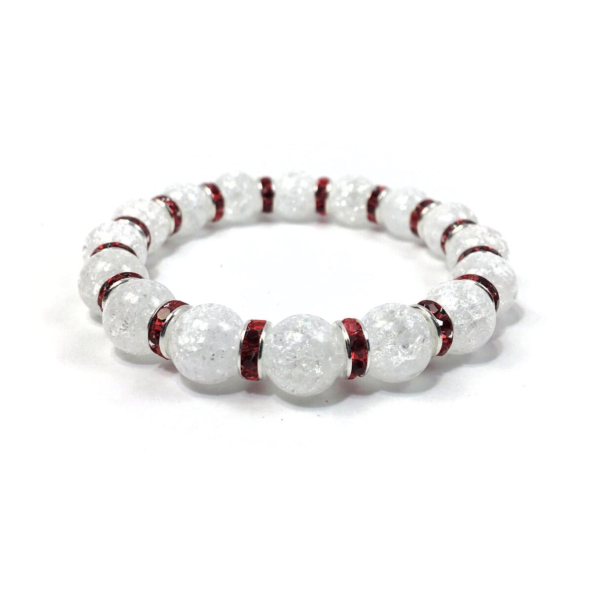クラック水晶 パワーストーン ブレスレット 天然石 10mm (レッド)メンズ・レディース 男性・女性 数珠ブレス  開運 ☆