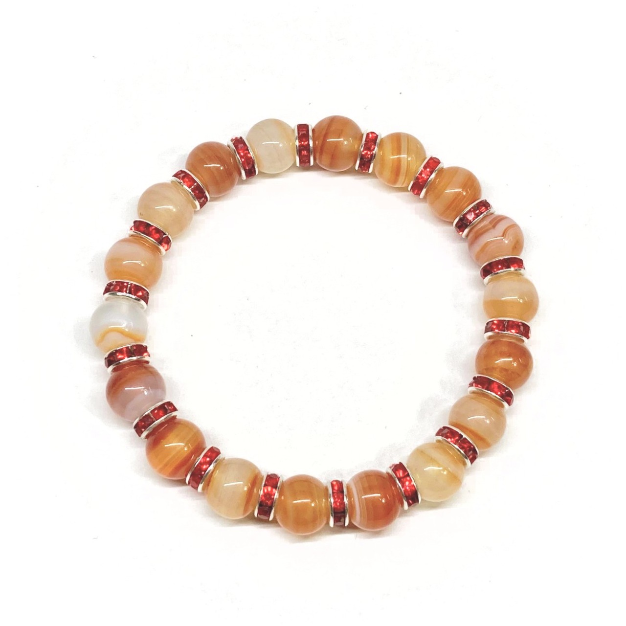 こちらは、10mm玉のカーネリアン・サードニクスを使用したパワーストーンブレスレットです。シンプルなデザインは、男女問わずどんなコーディネートとも合わせ易いブレスレットです。サイズは種類を選択からお選びください。(内周約14cm?内周約22cmでお選び頂けます) 数に限りがございますので気になる方はお早めにどうぞ。