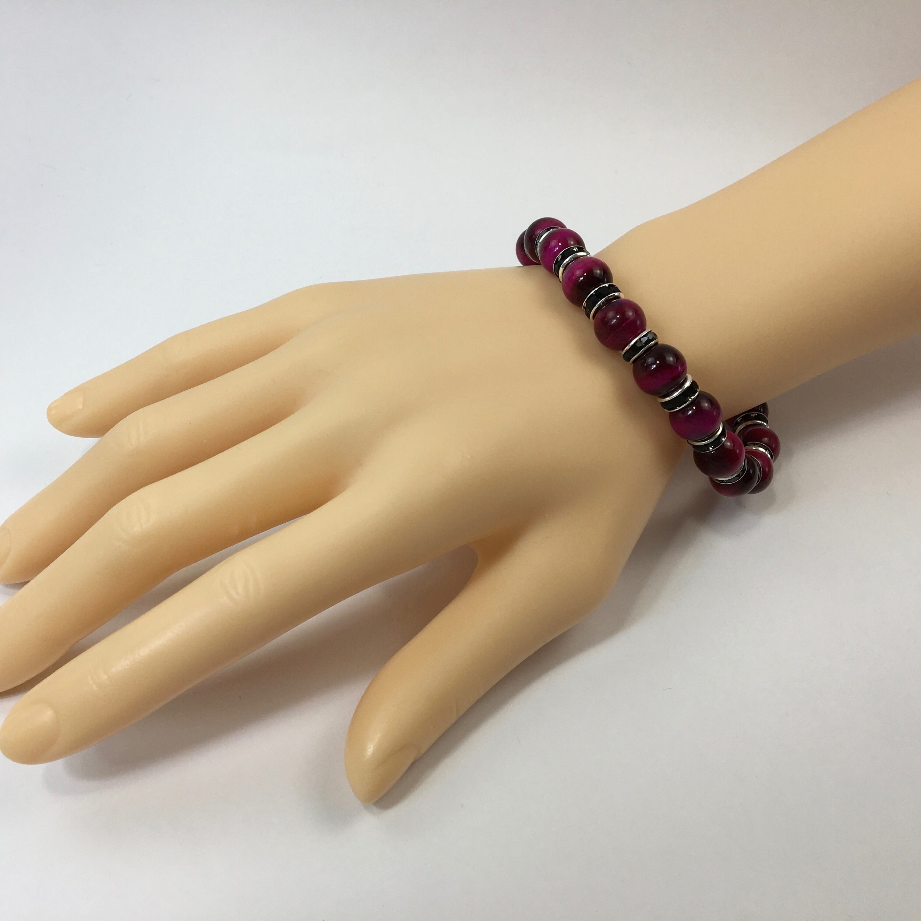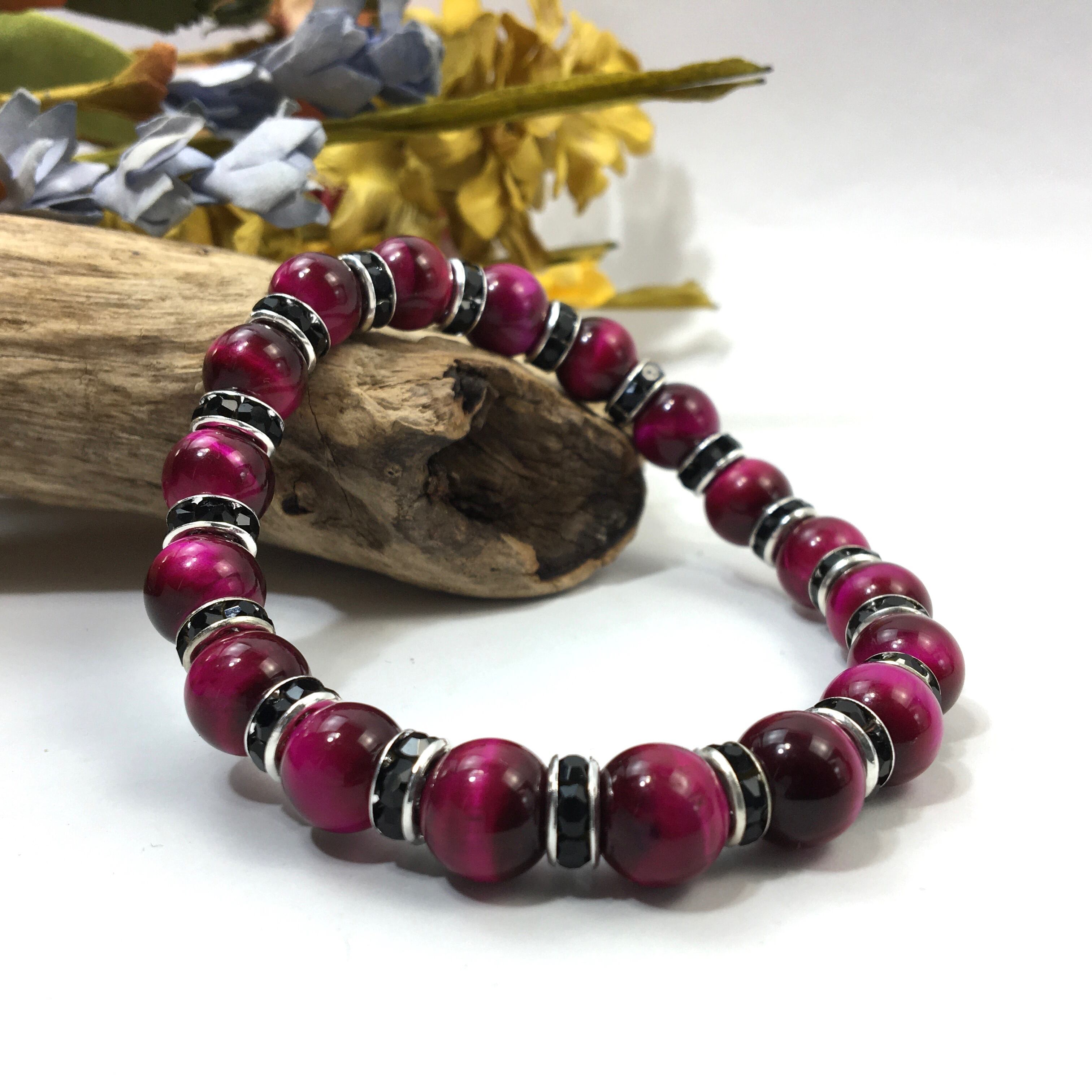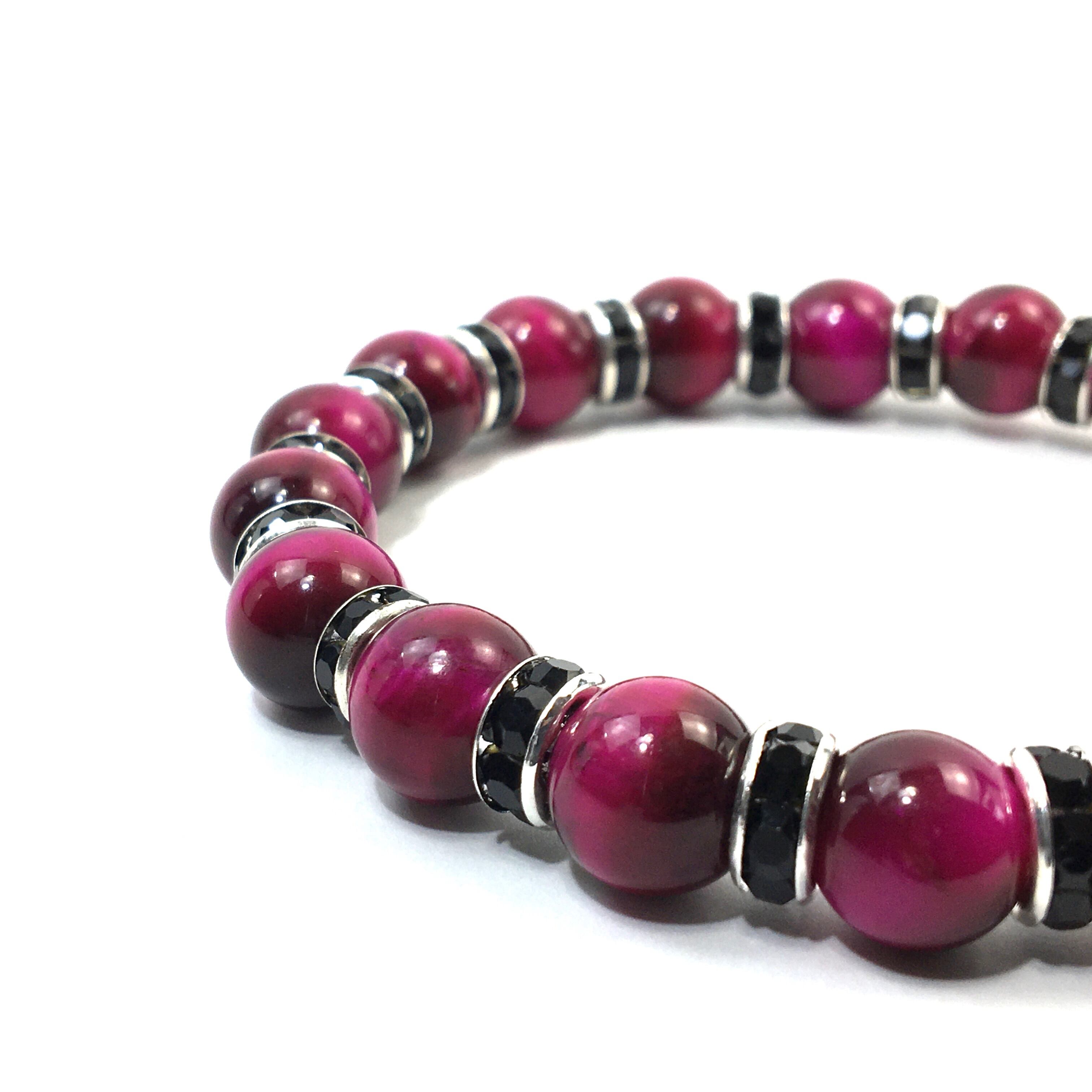 ピンクタイガーアイ パワーストーン ブレスレット 10mm (ブラック)メンズ・レディース 男性・女性 数珠ブレス  開運 ☆