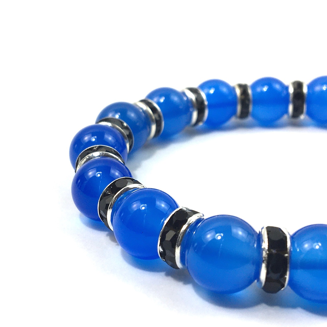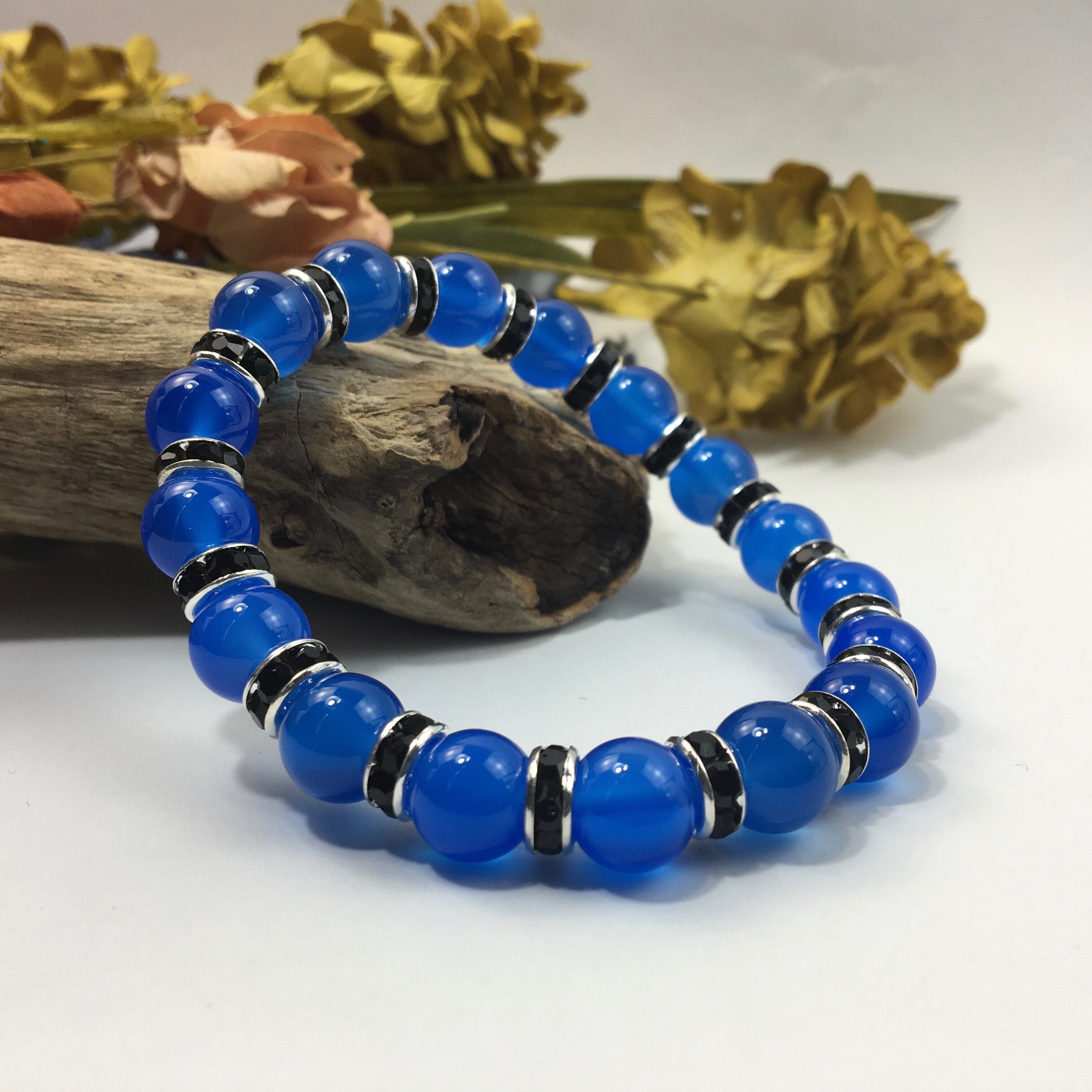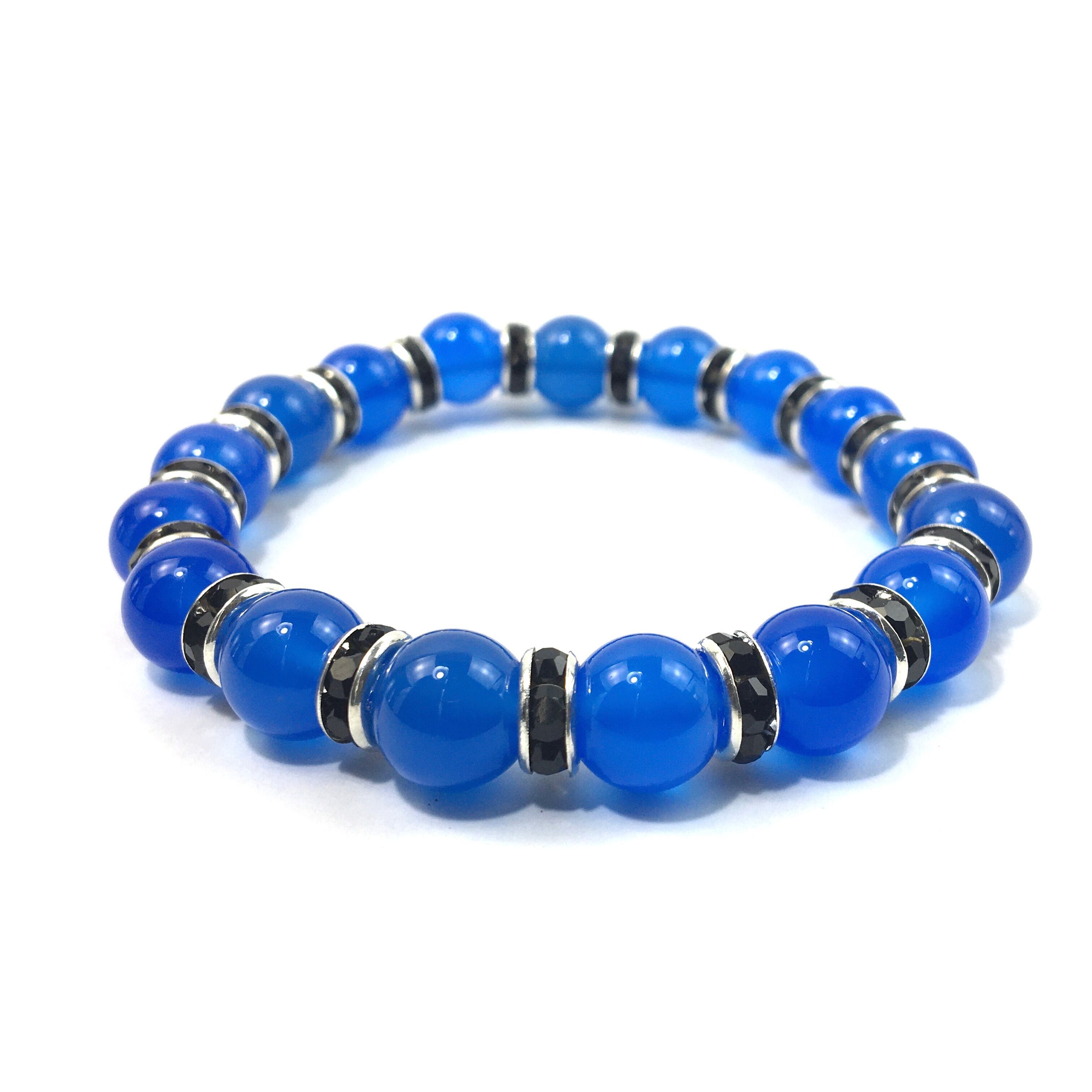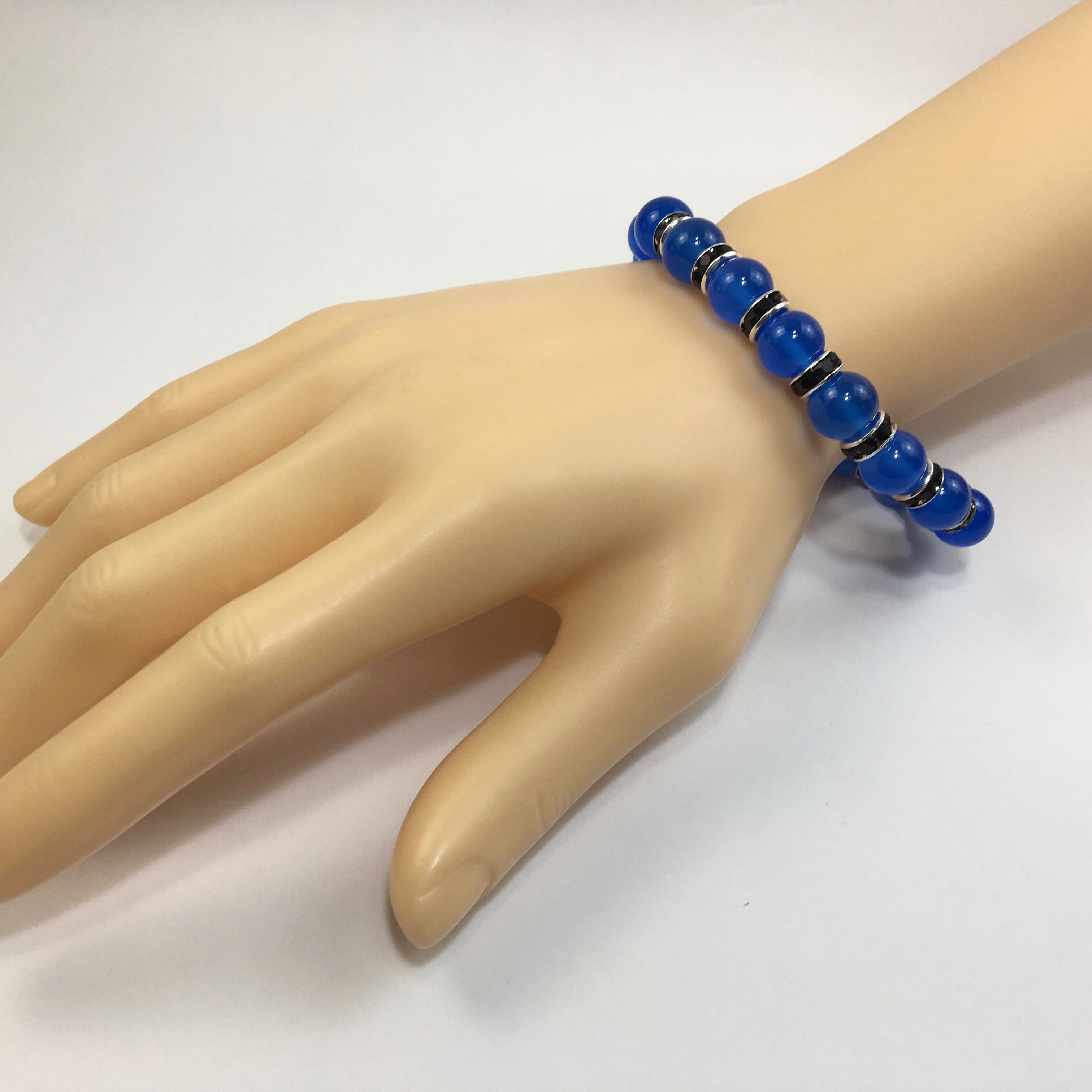 こちらは、青瑪瑙の10mm玉を使用したパワーストーンブレスレットです。石との間にはロンデルを挟み高級感を演出しております。シンプルなデザインは、シーン問わずどんなコーディネートとも合わせ易いブレスレットです。サイズは種類を選択からお選びください。(内周約14cm?内周約22cmでお選び頂けます)当社の中でも一番人気の実績があるデザインとなっております。気になる方はお早めにどうぞ。