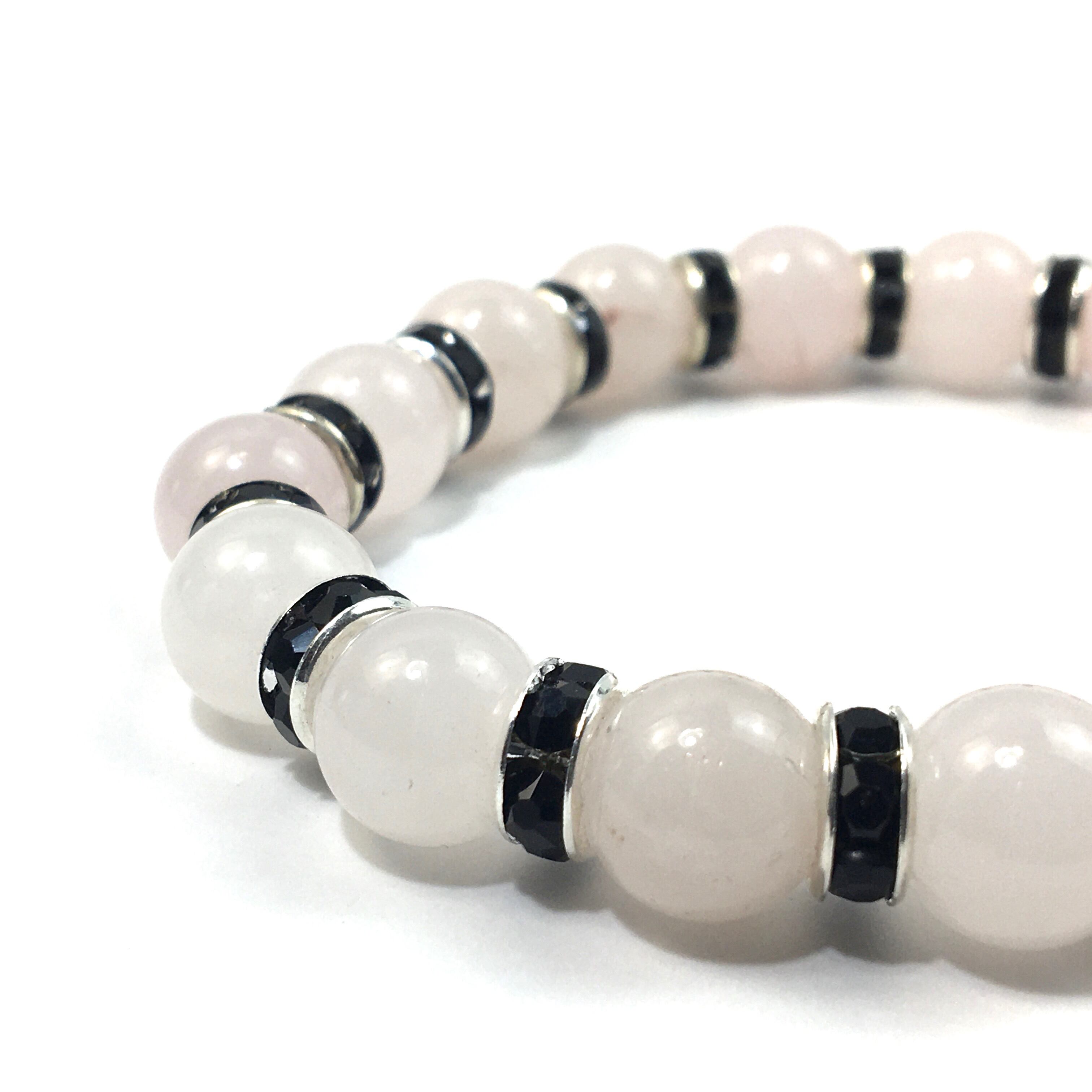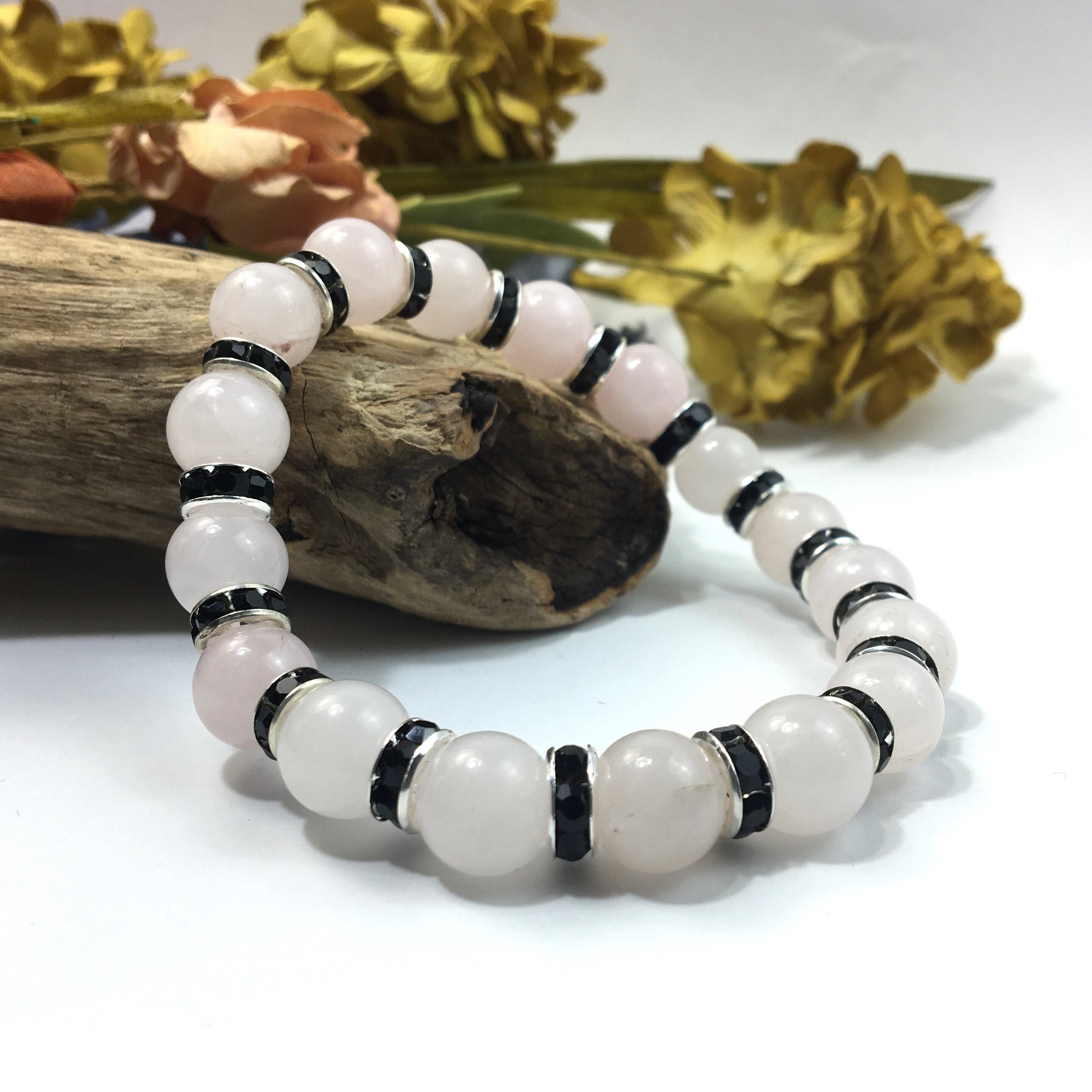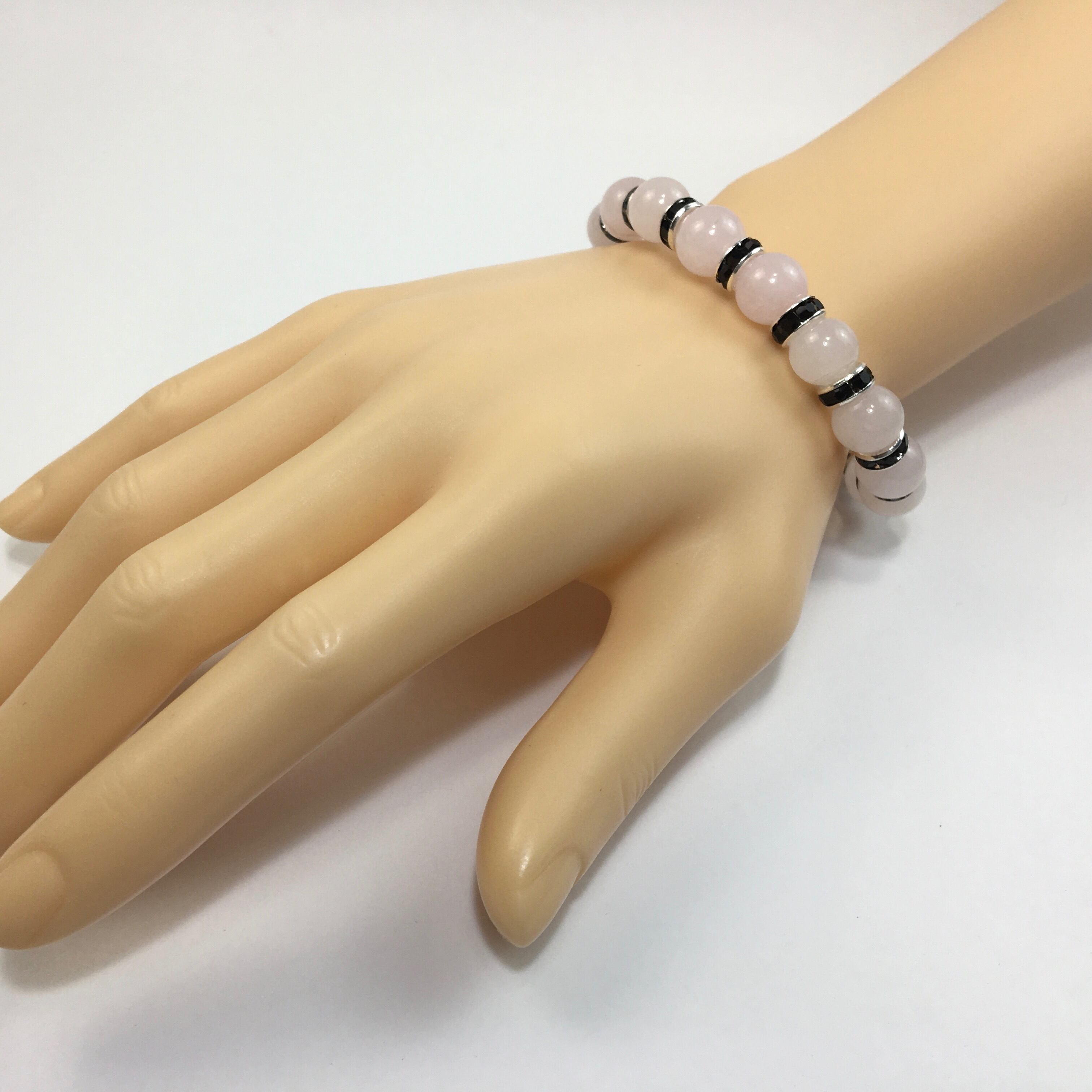 ローズクォーツ パワーストーン ブレスレット 天然石 10mm (ブラック)メンズ・レディース 男性・女性 数珠ブレス  開運 ☆