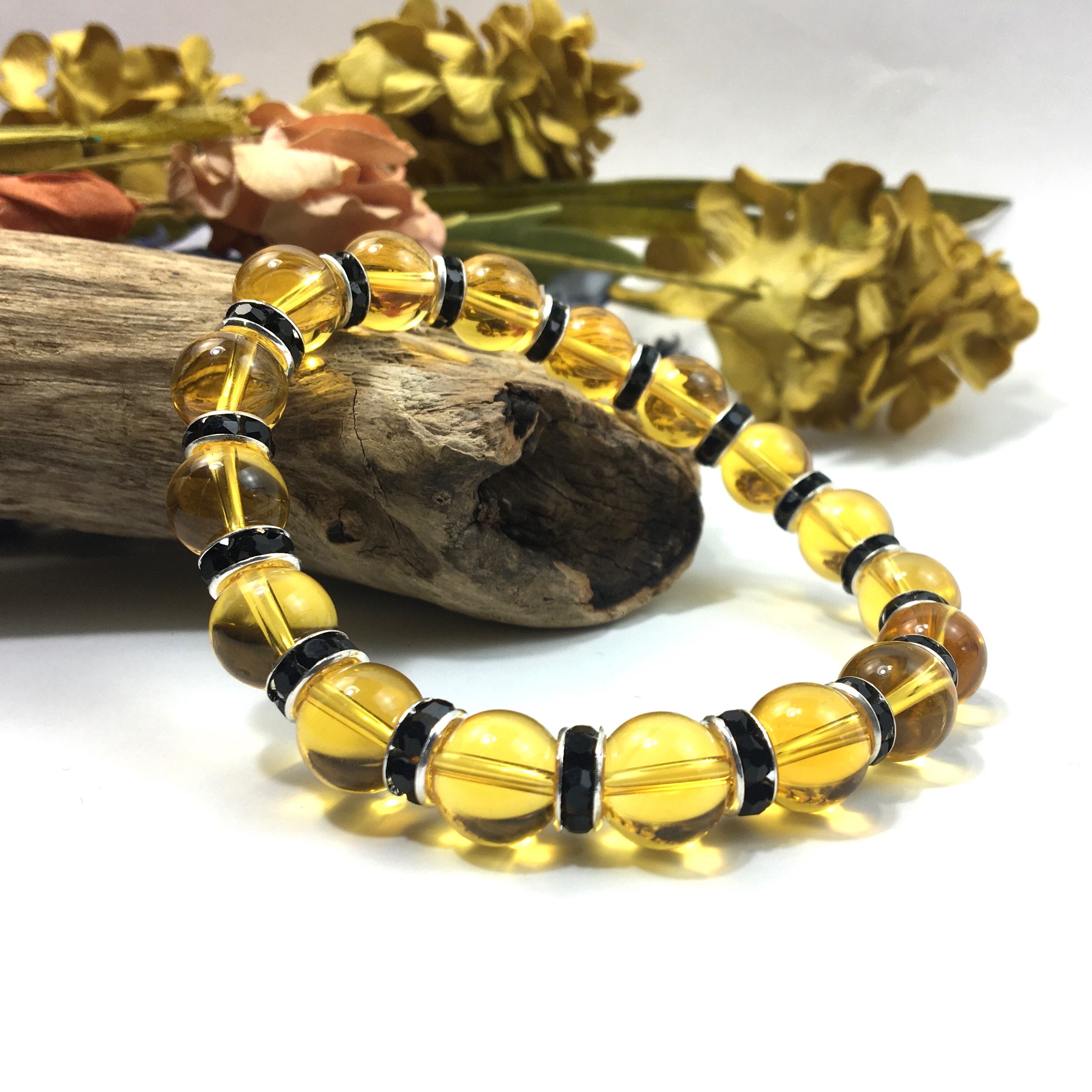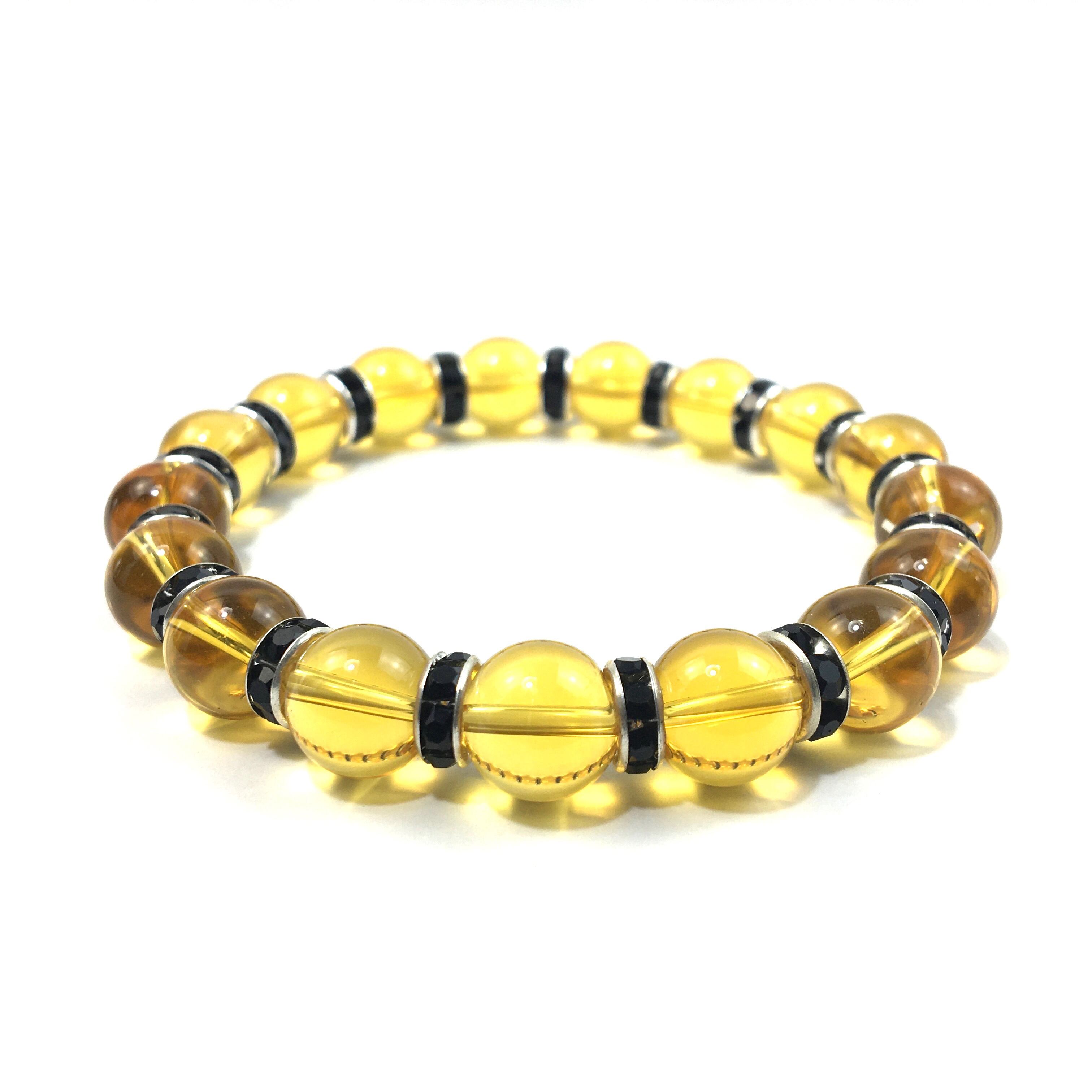 シトリン パワーストーン ブレスレット 10mm (ブラック)メンズ・レディース 男性・女性 数珠ブレス  開運 ☆