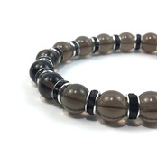 こちらは、スモーキークォーツの10mm玉を使用したパワーストーンブレスレットです。石との間にはロンデルを挟み高級感を演出しております。シンプルなデザインは、シーン問わずどんなコーディネートとも合わせ易いブレスレットです。サイズは種類を選択からお選びください。(内周約14cm?内周約22cmでお選び頂けます)当社の中でも一番人気の実績があるデザインとなっております。気になる方はお早めにどうぞ。