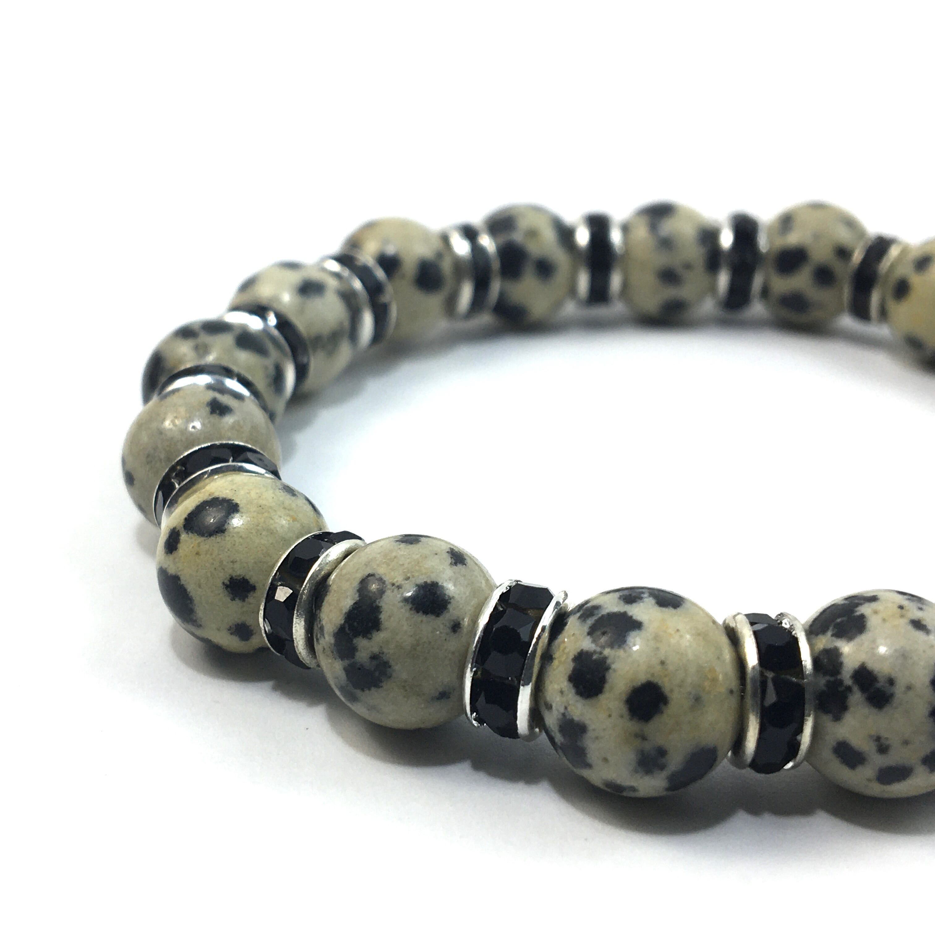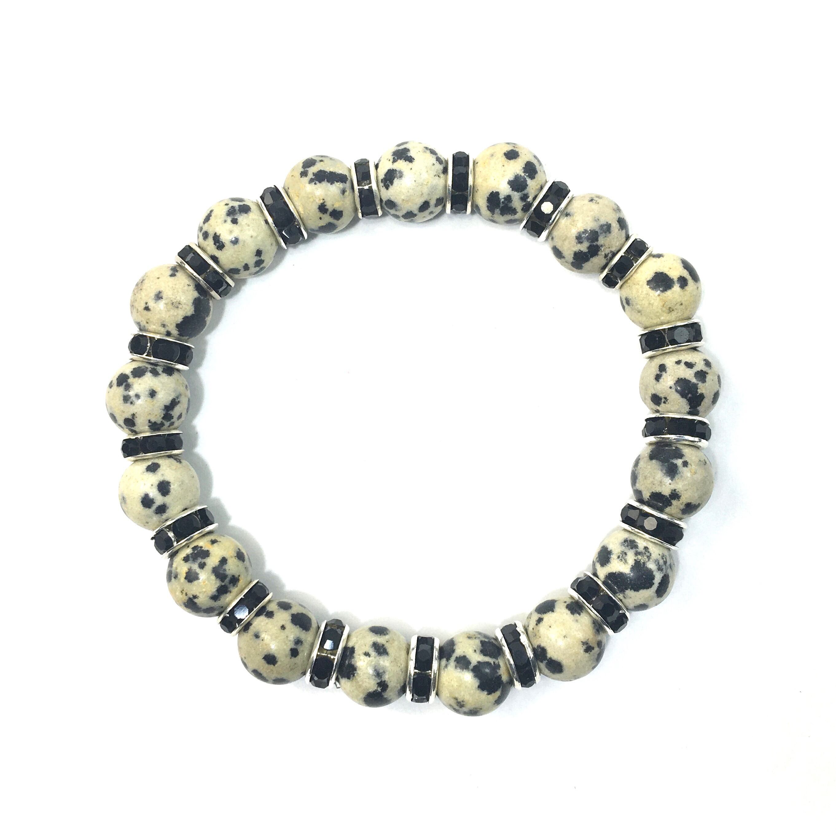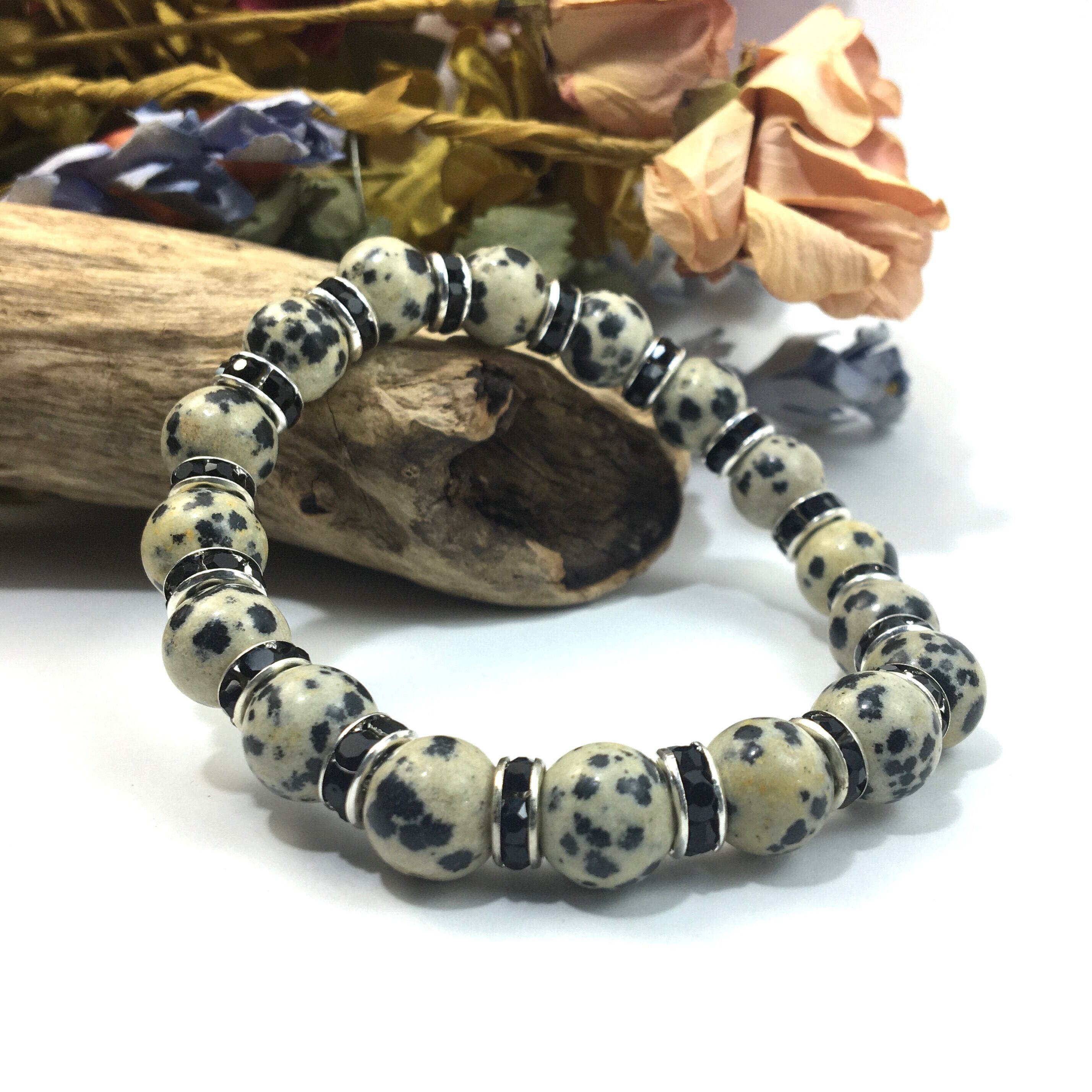 ダルメシアンジャスパー パワーストーン ブレスレット 天然石 10mm (ブラック)メンズ・レディース 男性・女性 数珠ブレス  開運 ☆