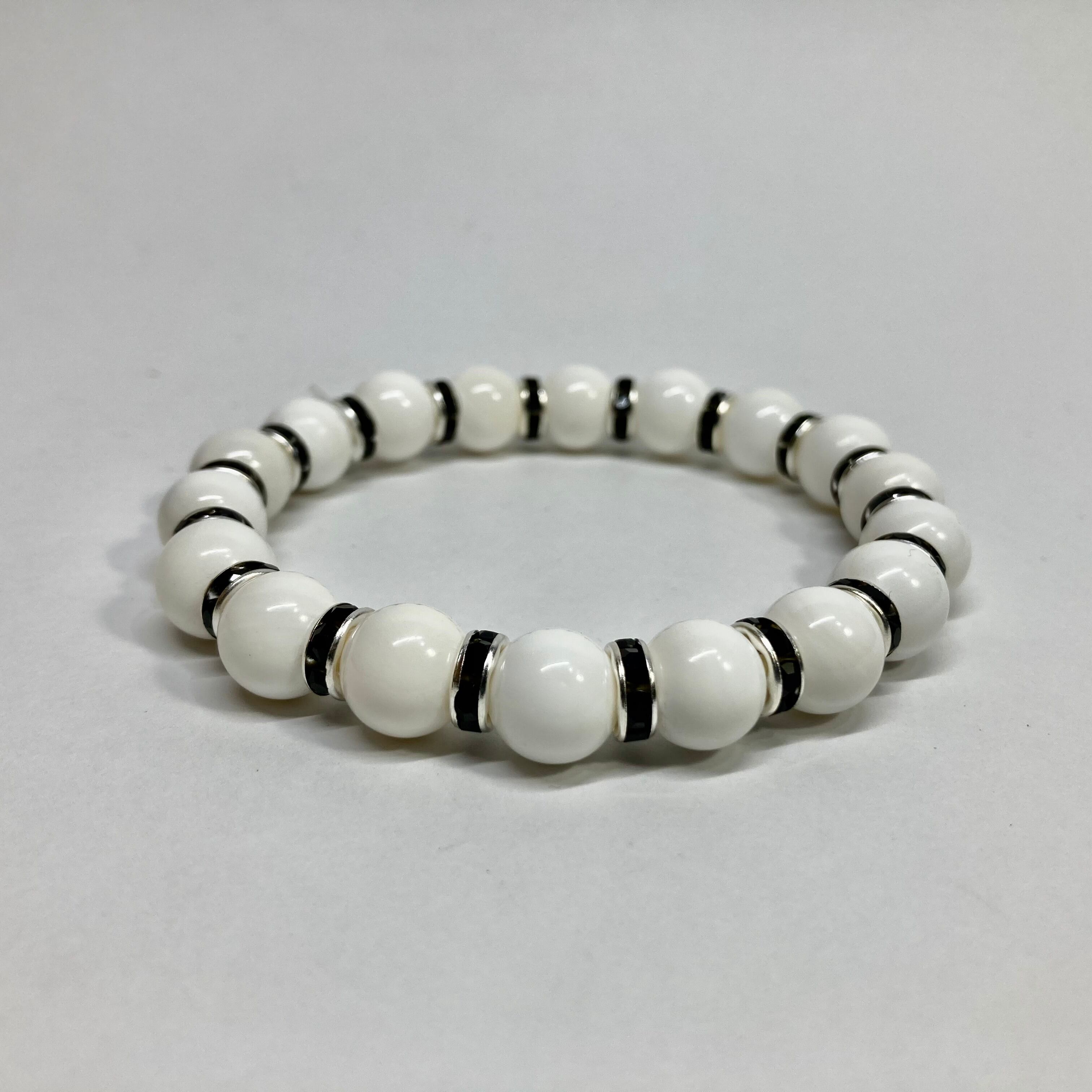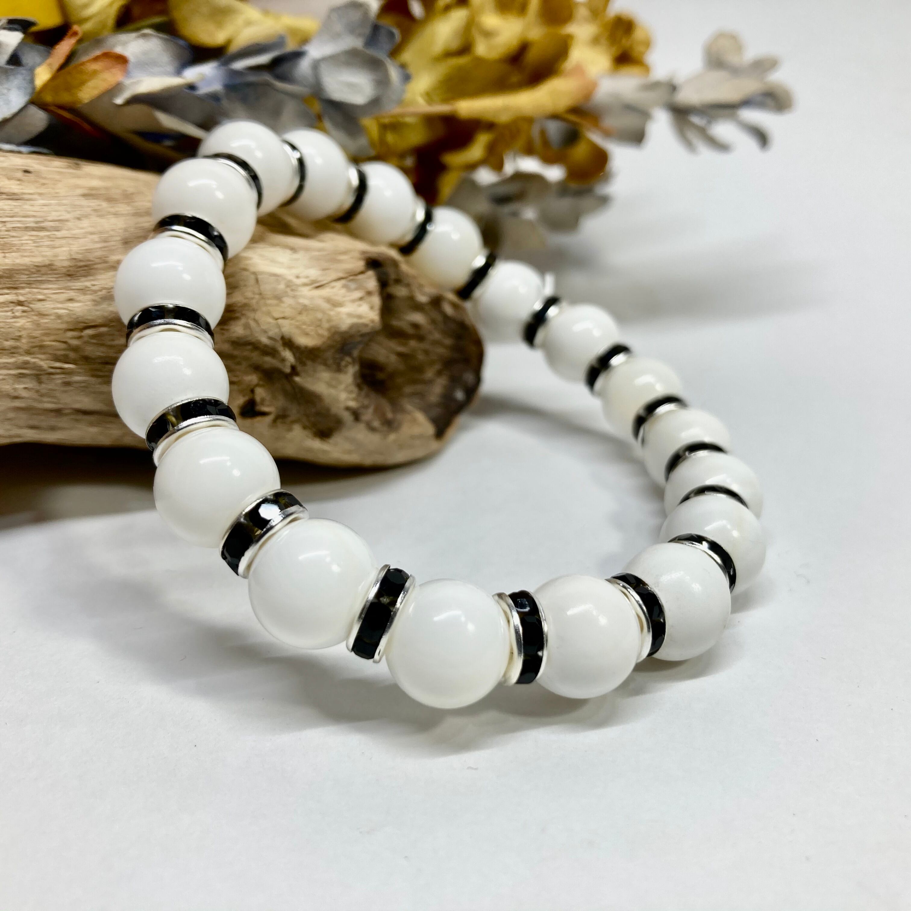 ホワイトオニキス パワーストーン ブレスレット 天然石 10mm (ブラック)メンズ・レディース 男性・女性 数珠ブレス  開運 ☆