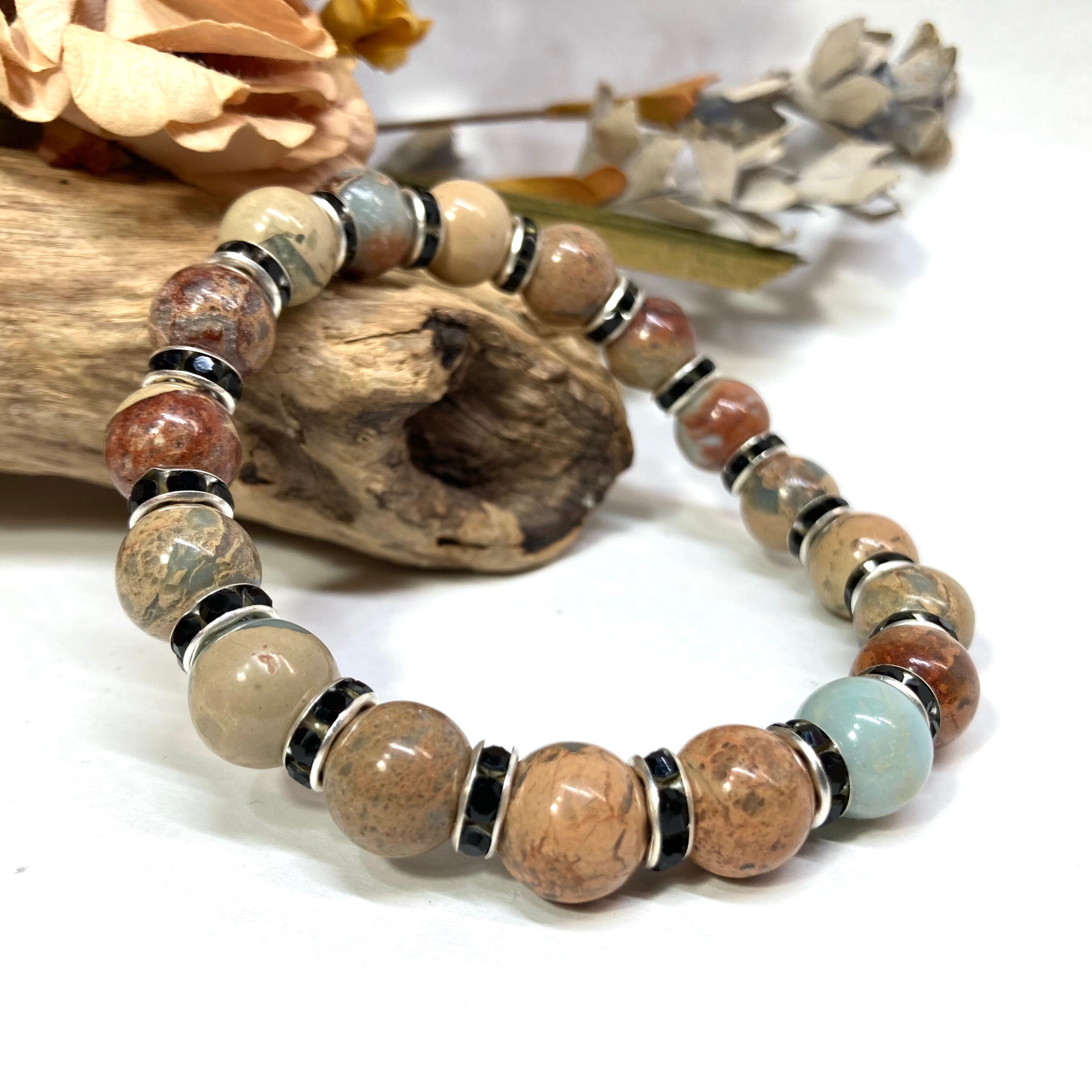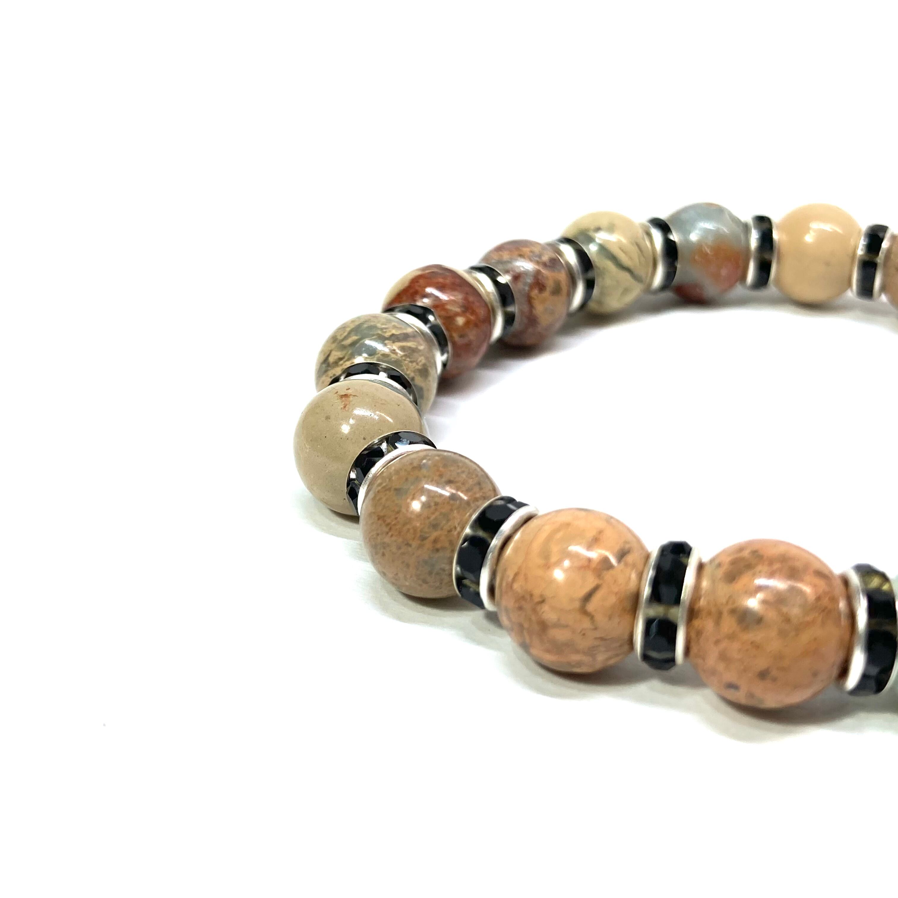 インプレッションストーン パワーストーン ブレスレット 10mm (ブラック)メンズ・レディース 男性・女性 数珠ブレス  開運 ☆
