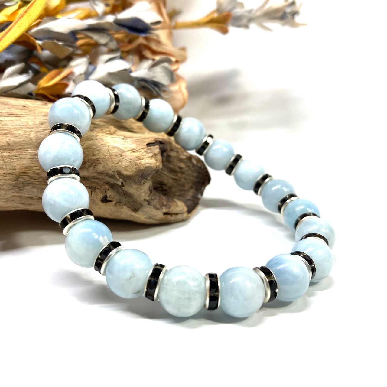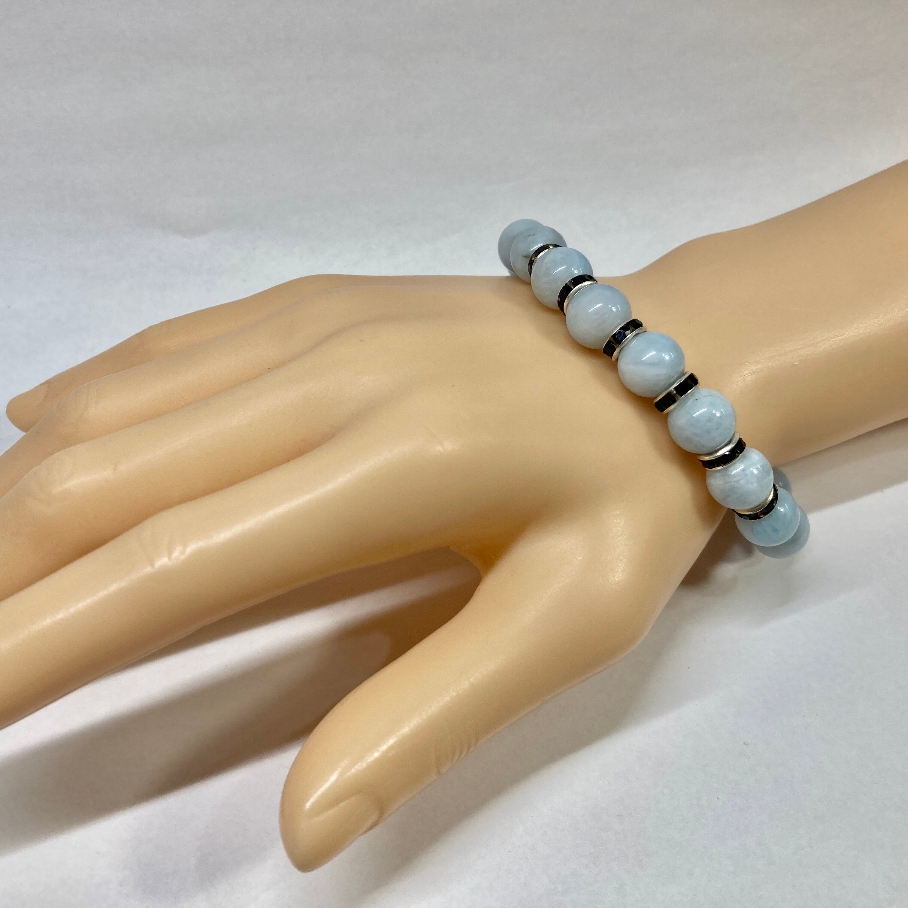 アクアマリン パワーストーン ブレスレット 10mm 天然石 10mm (ブラック)メンズ・レディース 男性・女性 数珠ブレス  開運 ☆