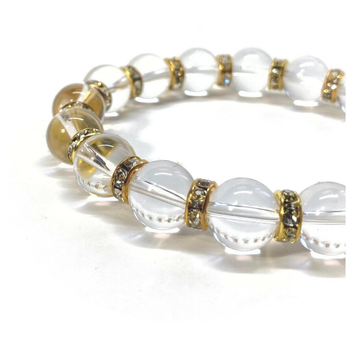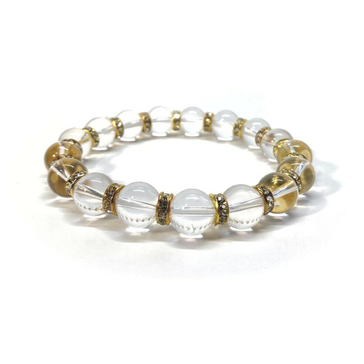 水晶 パワーストーン ブレスレット 天然石 10mm (ゴールド)メンズ・レディース 男性・女性 数珠ブレス  開運 ☆