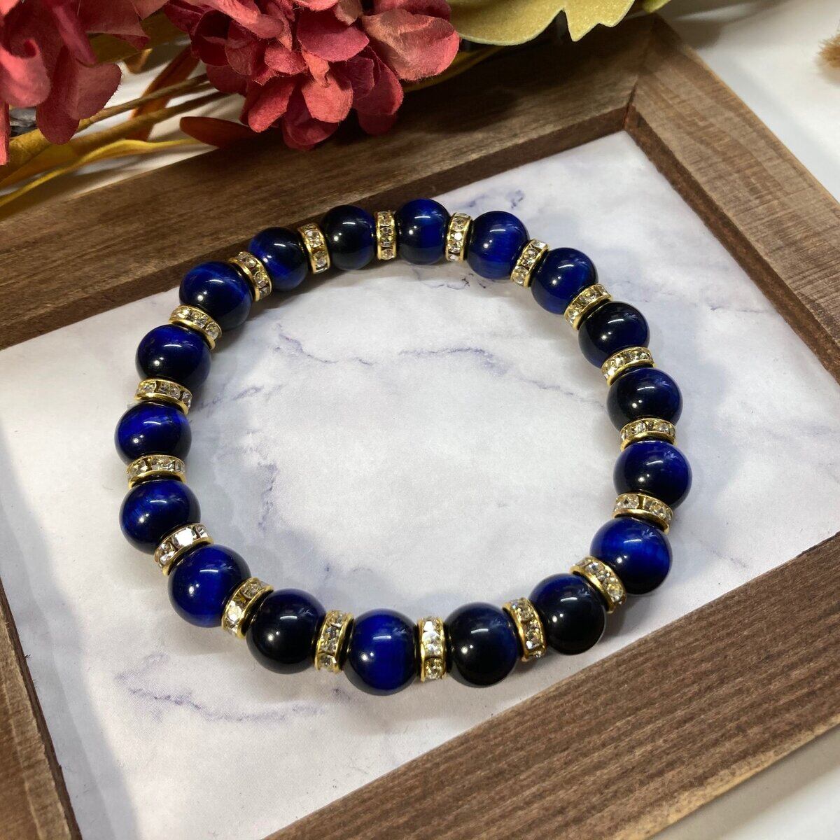 ブルータイガーアイ パワーストーン ブレスレット 10mm (ゴールド)メンズ・レディース 男性・女性 数珠ブレス  開運 ☆