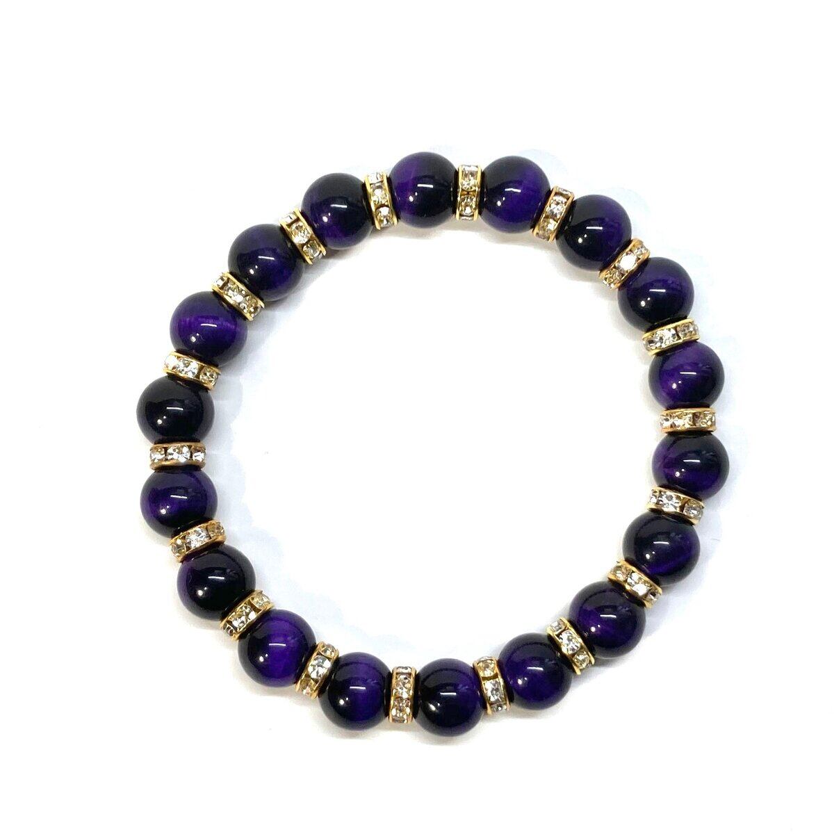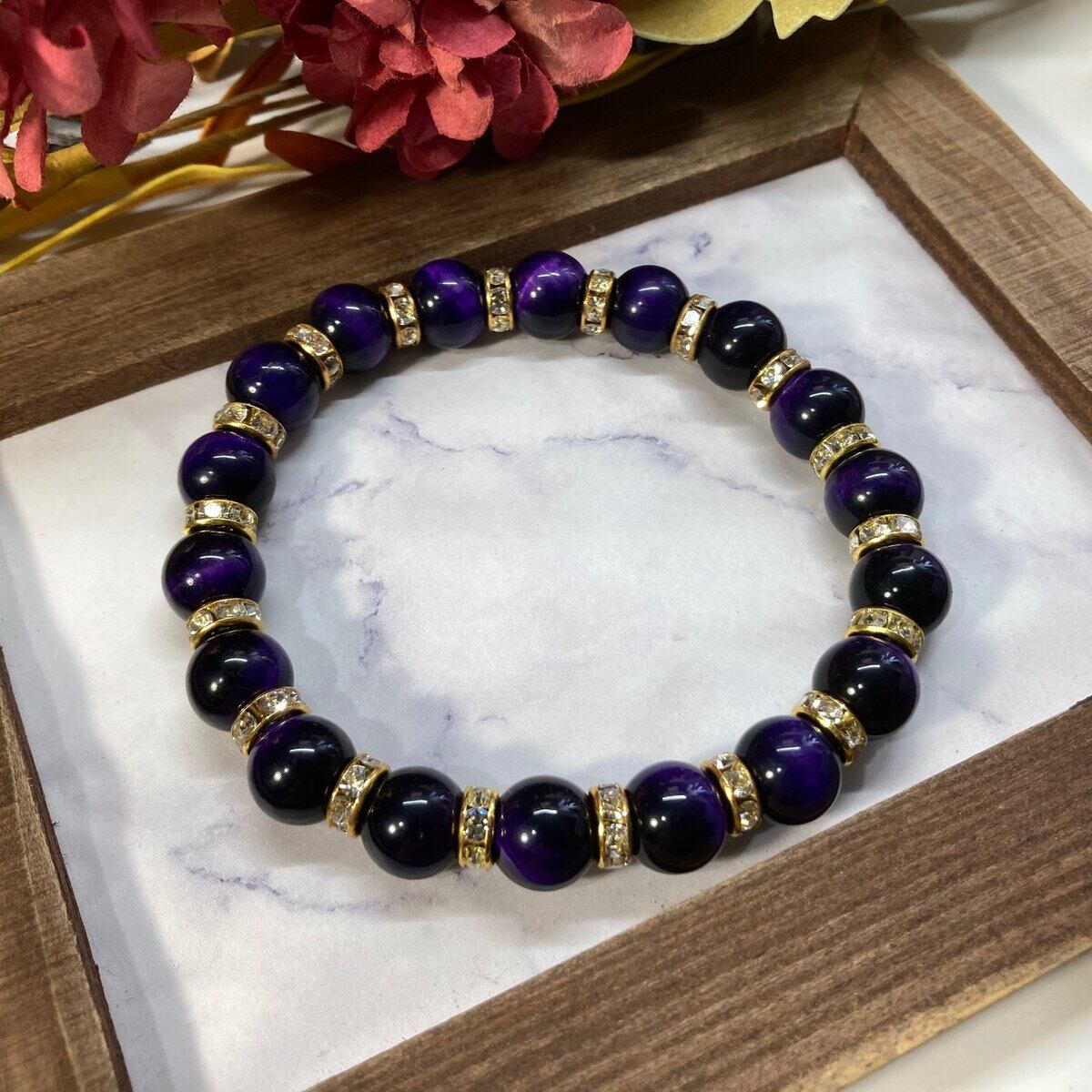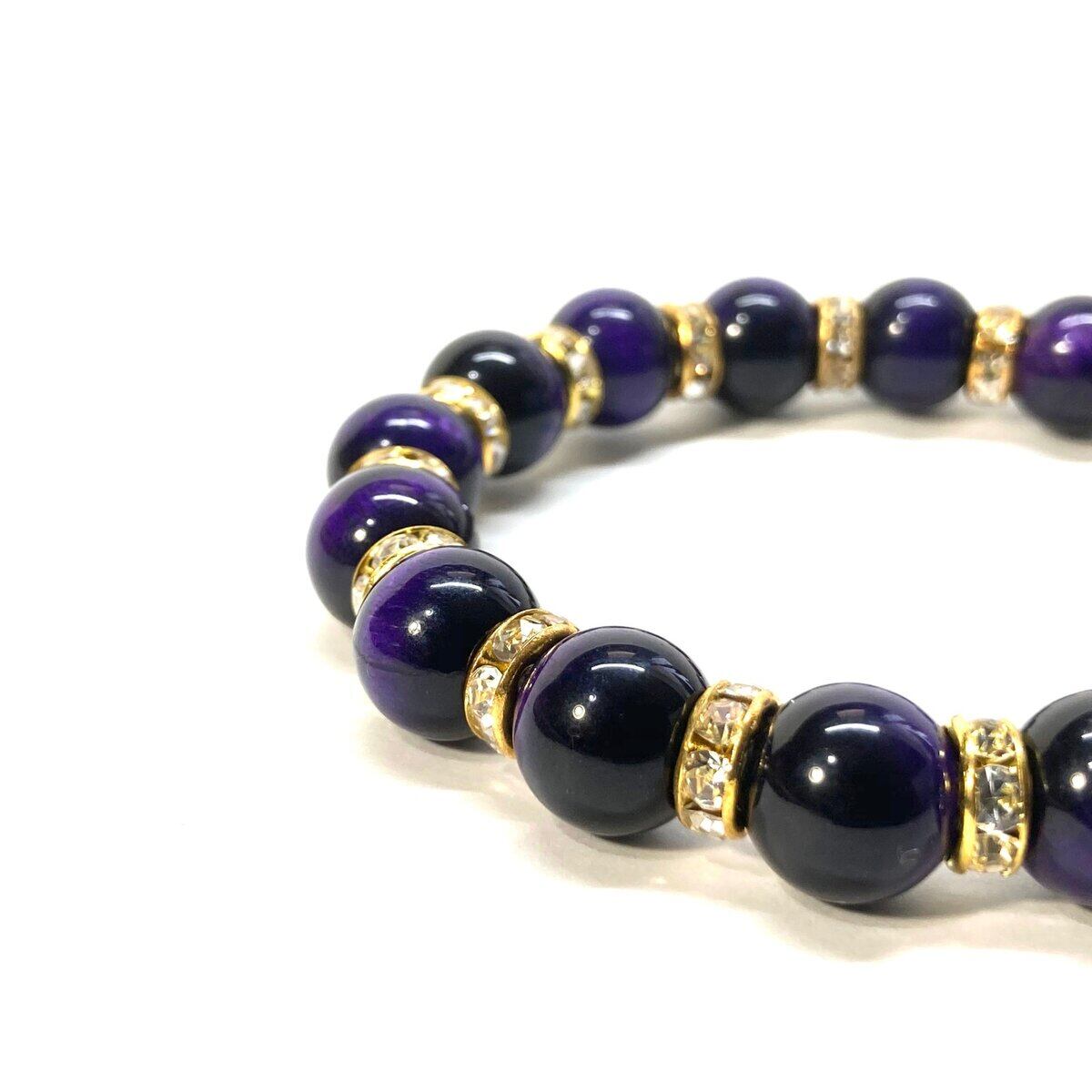 パープルタイガーアイ パワーストーン ブレスレット 10mm (ゴールド)メンズ・レディース 男性・女性 数珠ブレス  開運 ☆
