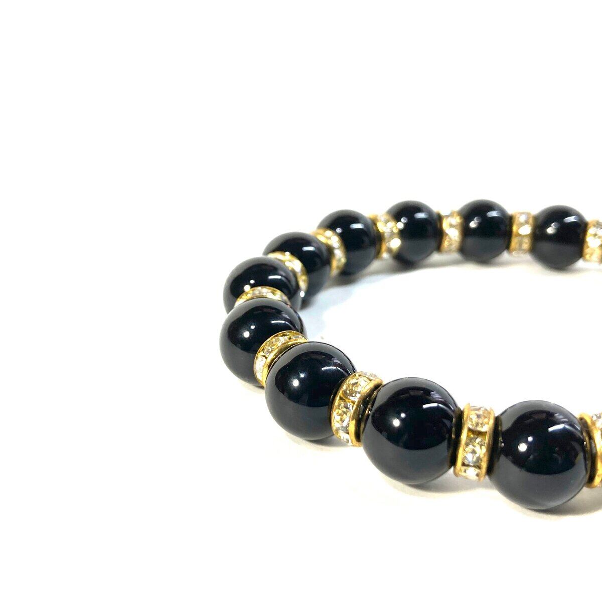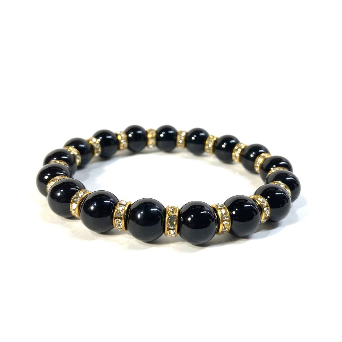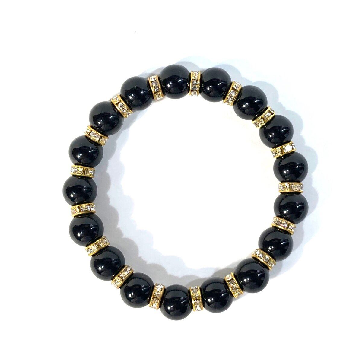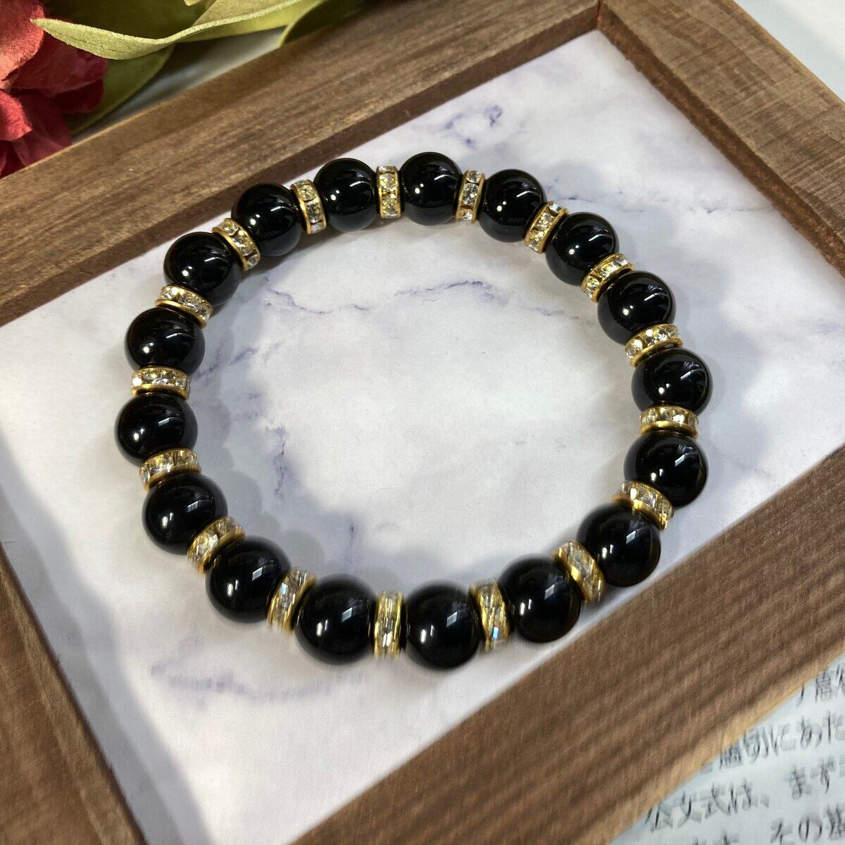 オニキス パワーストーン ブレスレット 天然石 10mm (ゴールド)メンズ・レディース 男性・女性 数珠ブレス  開運 ☆