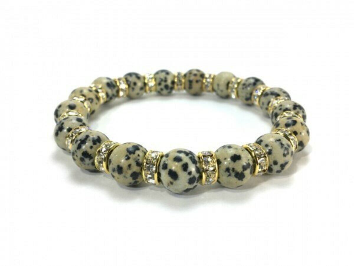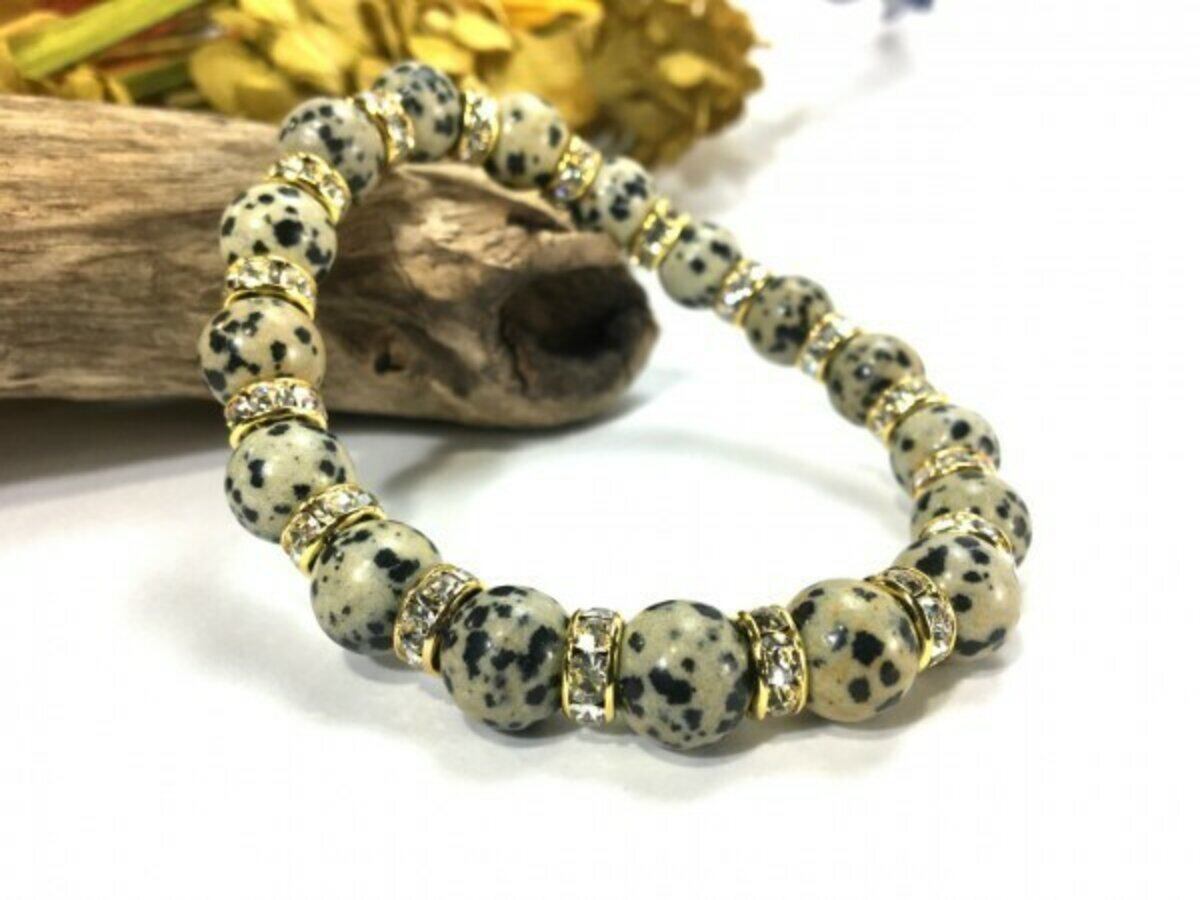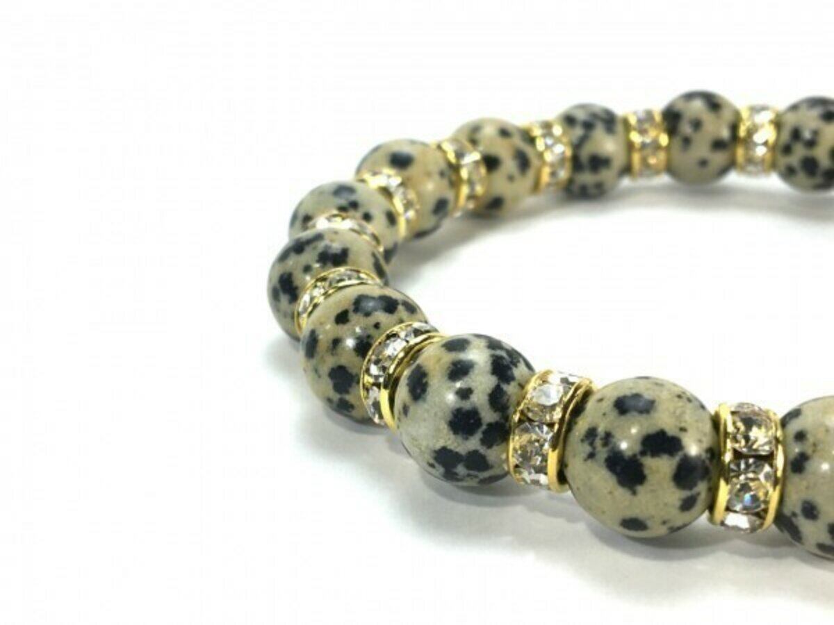 ダルメシアンジャスパー パワーストーン ブレスレット 10mm (ゴールド)メンズ・レディース 男性・女性 数珠ブレス  開運 ☆
