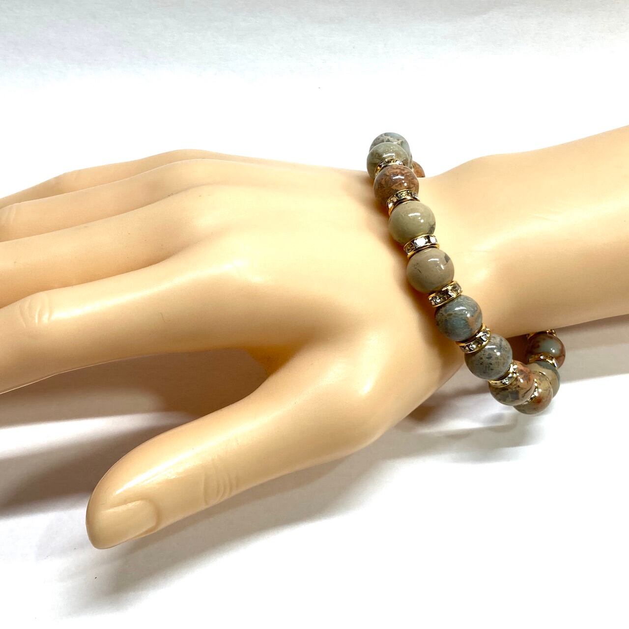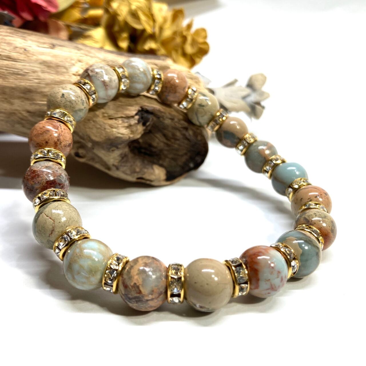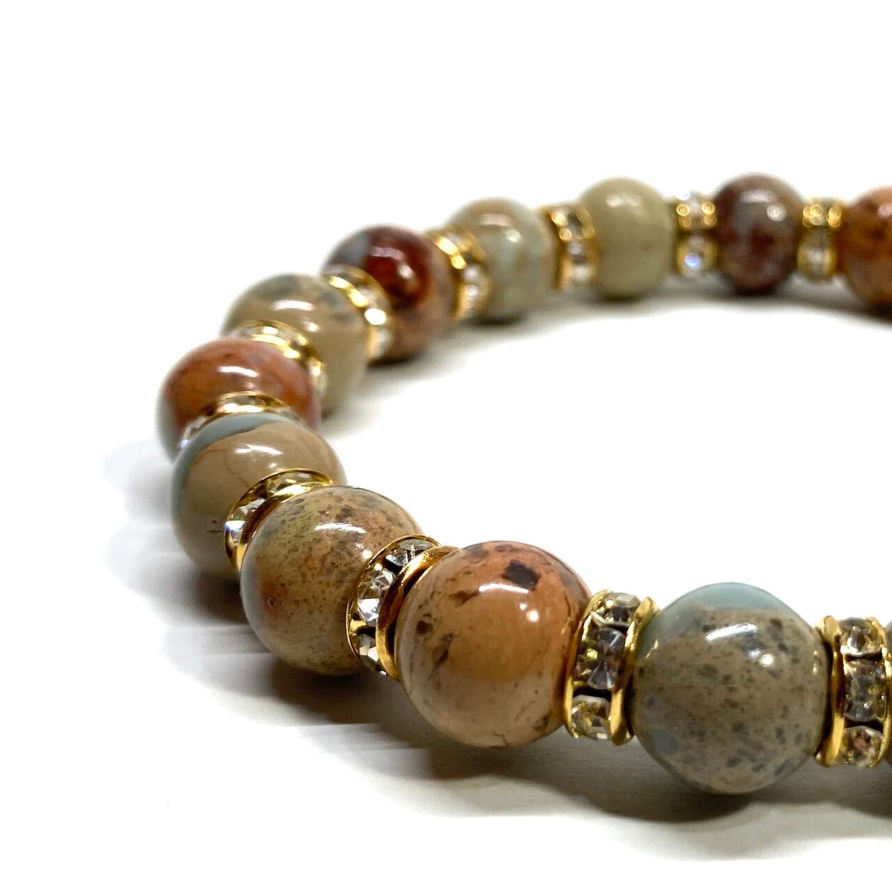 インプレッションストーン パワーストーン ブレスレット 10mm (ゴールド)メンズ・レディース 男性・女性 数珠ブレス  開運 ☆