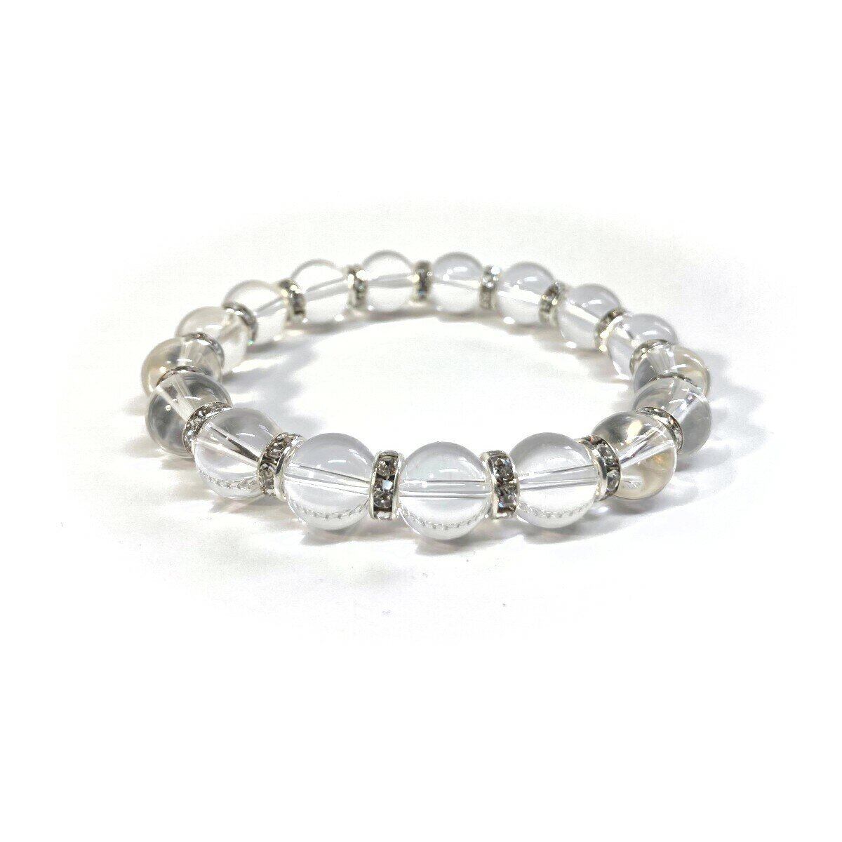 水晶 パワーストーン ブレスレット 天然石 10mm (シルバー)メンズ・レディース 男性・女性 数珠ブレス  開運 ☆
