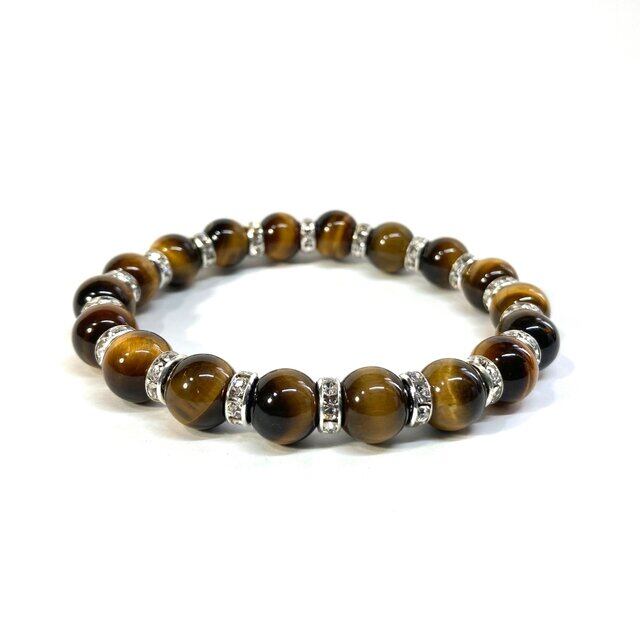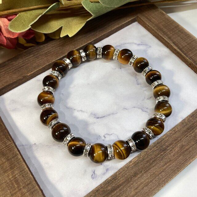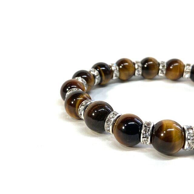 こちらは、タイガーアイの10mm玉を使用したパワーストーンブレスレットです。石との間にはロンデルを挟み高級感を演出しております。シンプルなデザインは、シーン問わずどんなコーディネートとも合わせ易いブレスレットです。サイズは種類を選択からお選びください。(内周約14cm?内周約22cmでお選び頂けます)当社の中でも一番人気の実績があるデザインとなっております。気になる方はお早めにどうぞ。