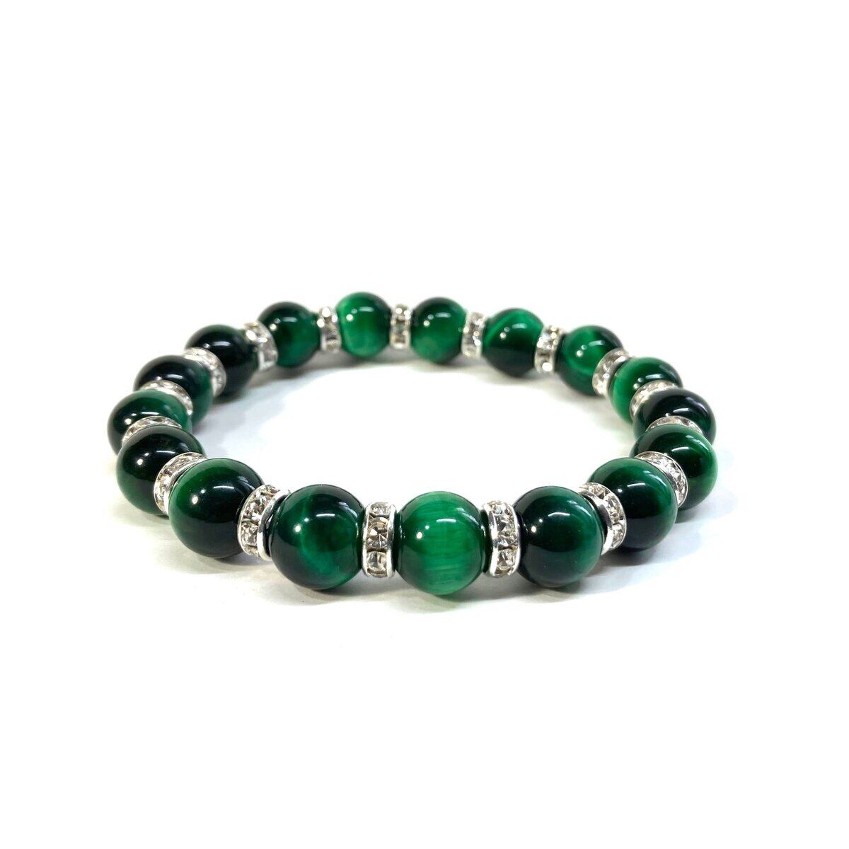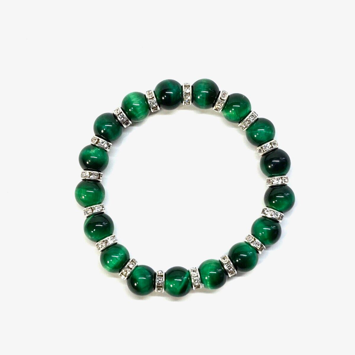 グリーンタイガーアイ パワーストーン ブレスレット 10mm (シルバー)メンズ・レディース 男性・女性 数珠ブレス  開運 ☆