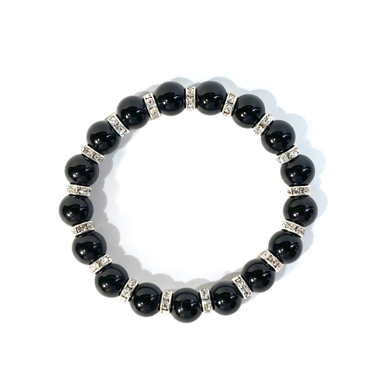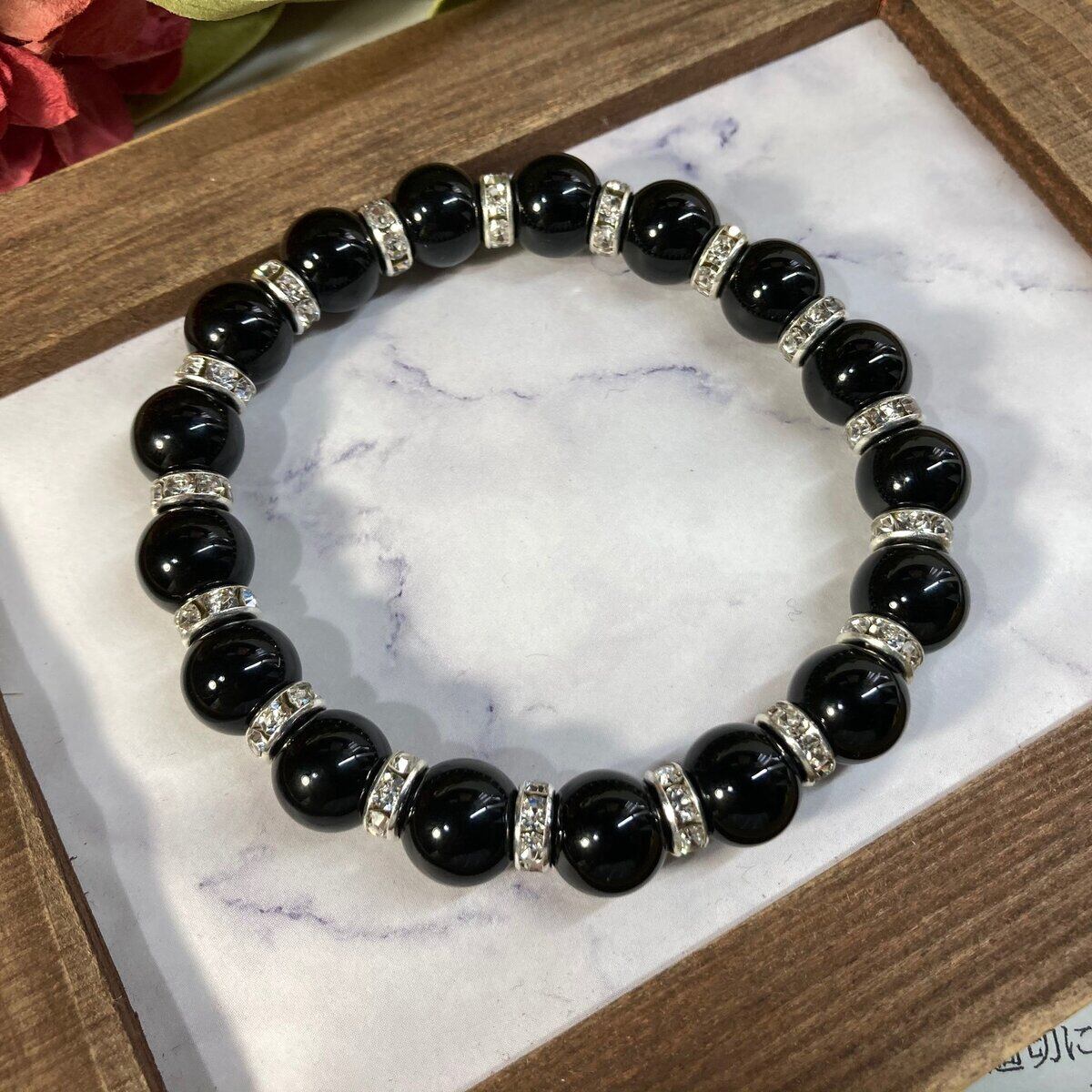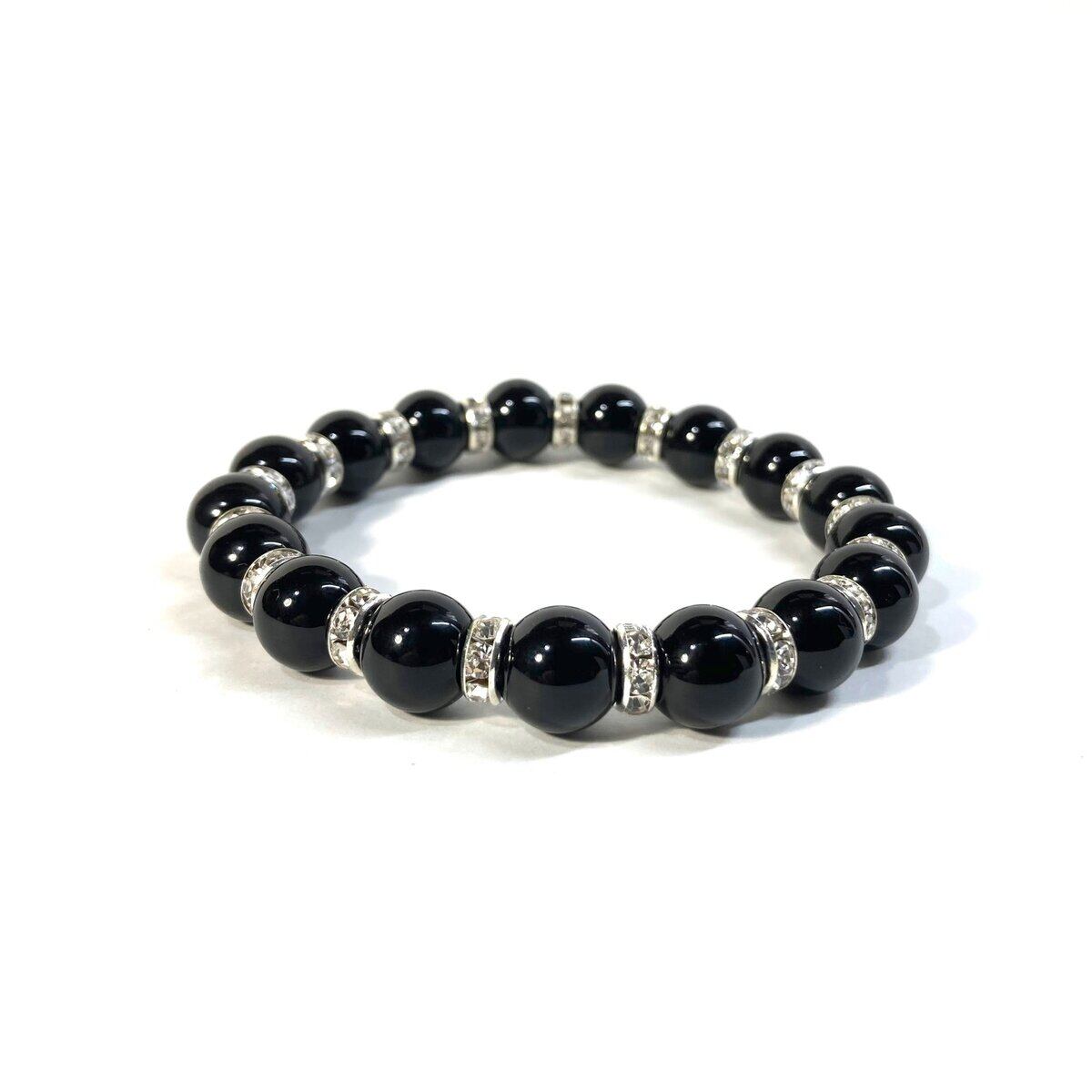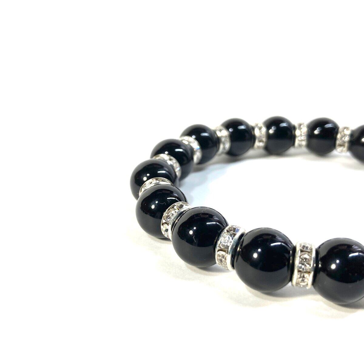 こちらは、オニキスの10mm玉を使用したパワーストーンブレスレットです。石との間にはロンデルを挟み高級感を演出しております。シンプルなデザインは、シーン問わずどんなコーディネートとも合わせ易いブレスレットです。サイズは種類を選択からお選びください。(内周約14cm?内周約22cmでお選び頂けます)当社の中でも一番人気の実績があるデザインとなっております。気になる方はお早めにどうぞ。