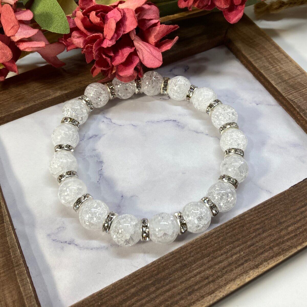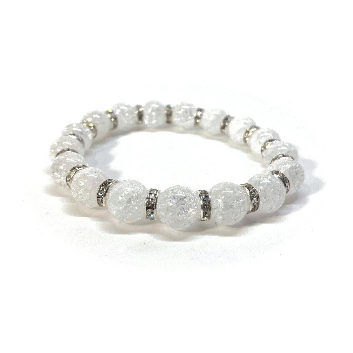 クラック水晶 パワーストーン ブレスレット 10mm (シルバー)メンズ・レディース 男性・女性 数珠ブレス  開運 ☆