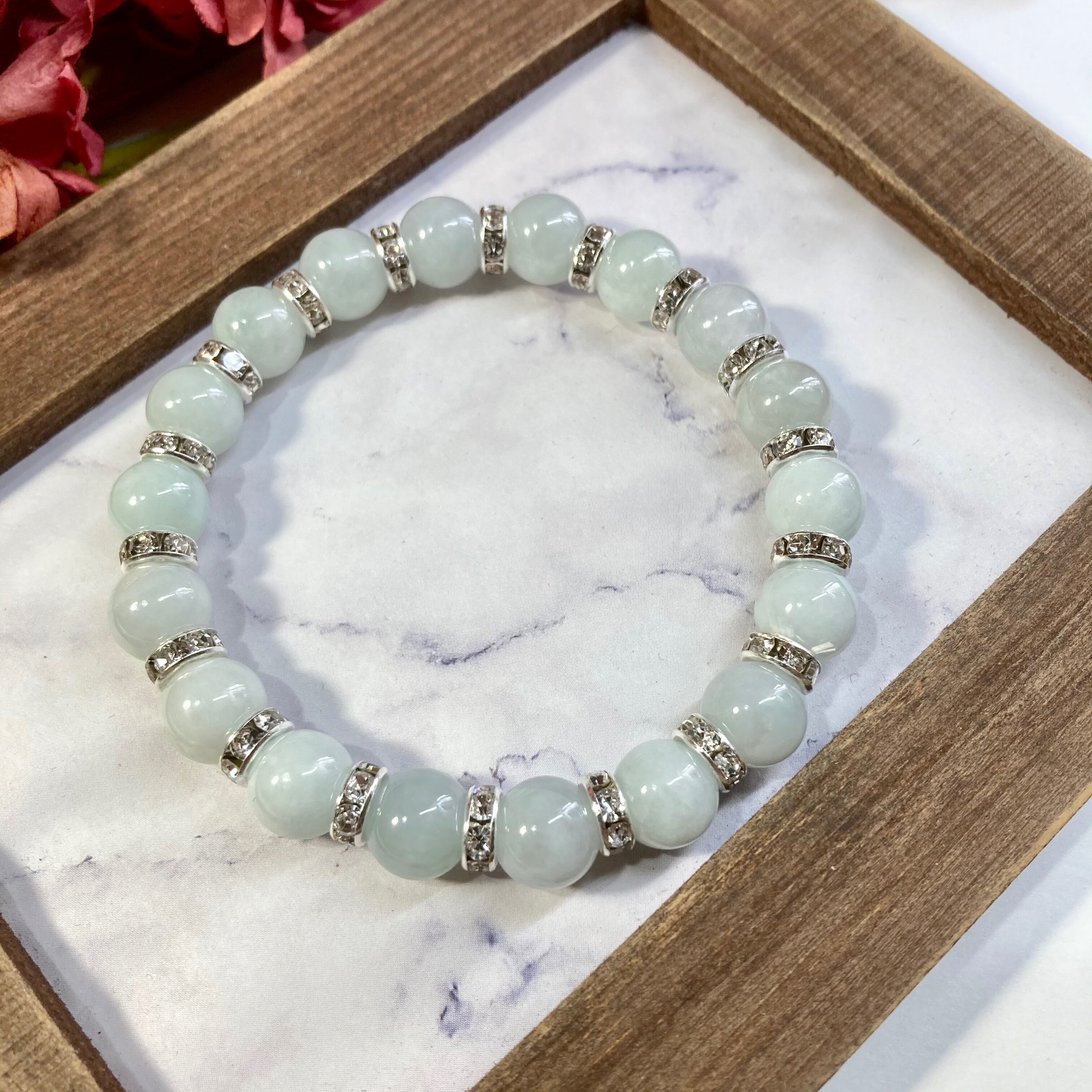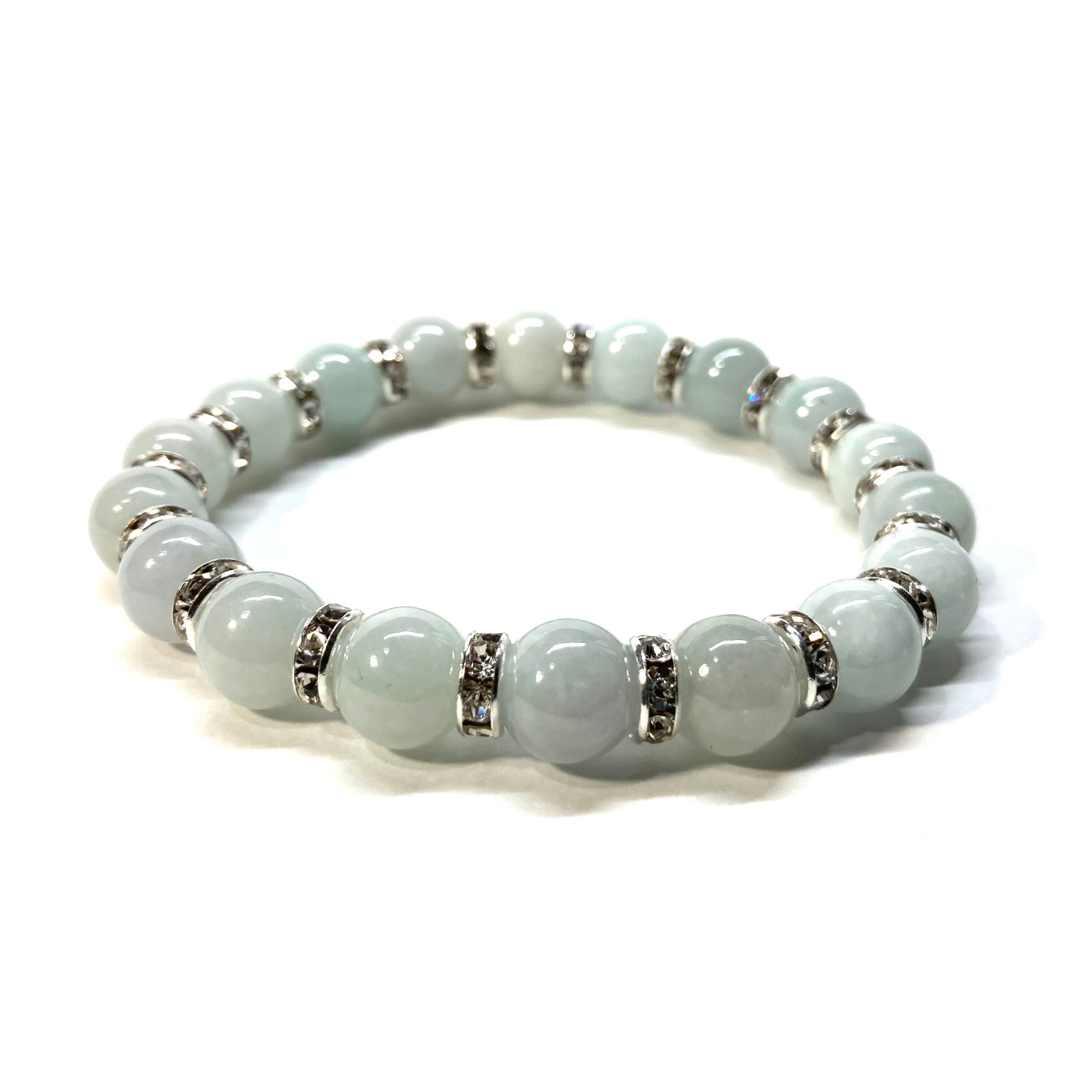ビルマ翡翠 パワーストーン ブレスレット 天然石 10mm (シルバー)メンズ・レディース 男性・女性 数珠ブレス  開運 ☆