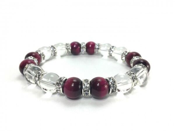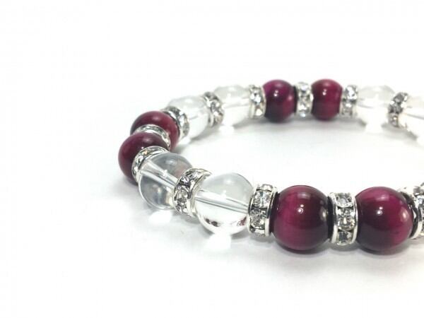 ピンクタイガーアイ&水晶 パワーストーン ブレスレット 天然石 10mm (シルバー)メンズ・レディース 男性・女性 数珠ブレス 開運 ☆