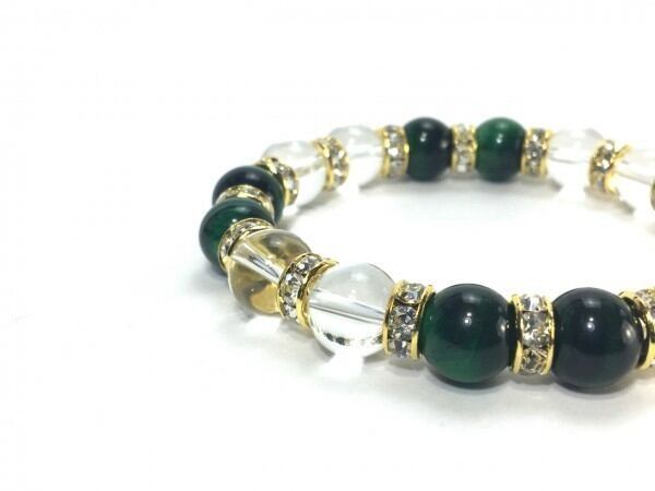 グリーンタイガーアイ&水晶 パワーストーン ブレスレット 10mm (ゴールド)メンズ・レディース 男性・女性 数珠ブレス 開運 ☆
